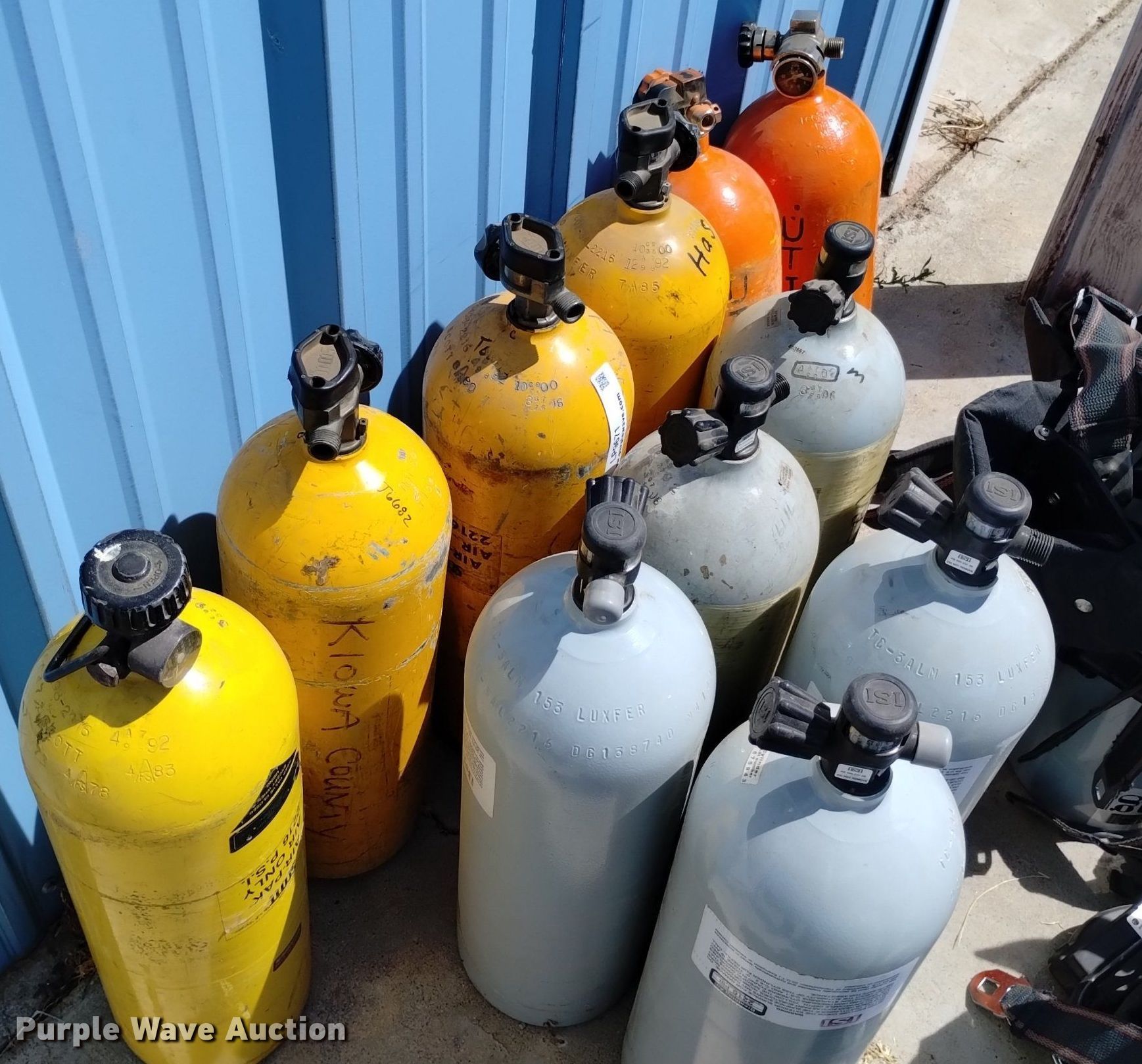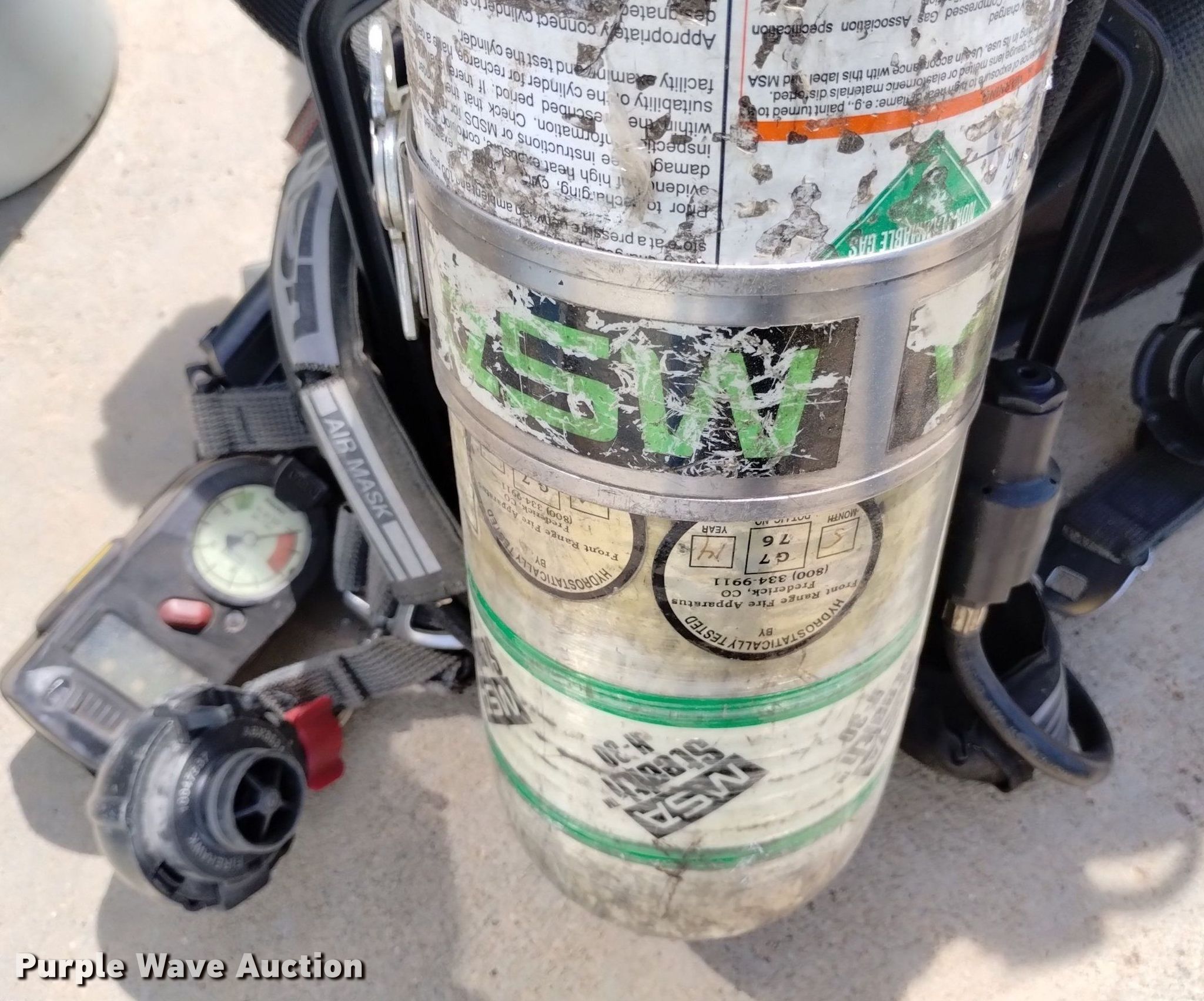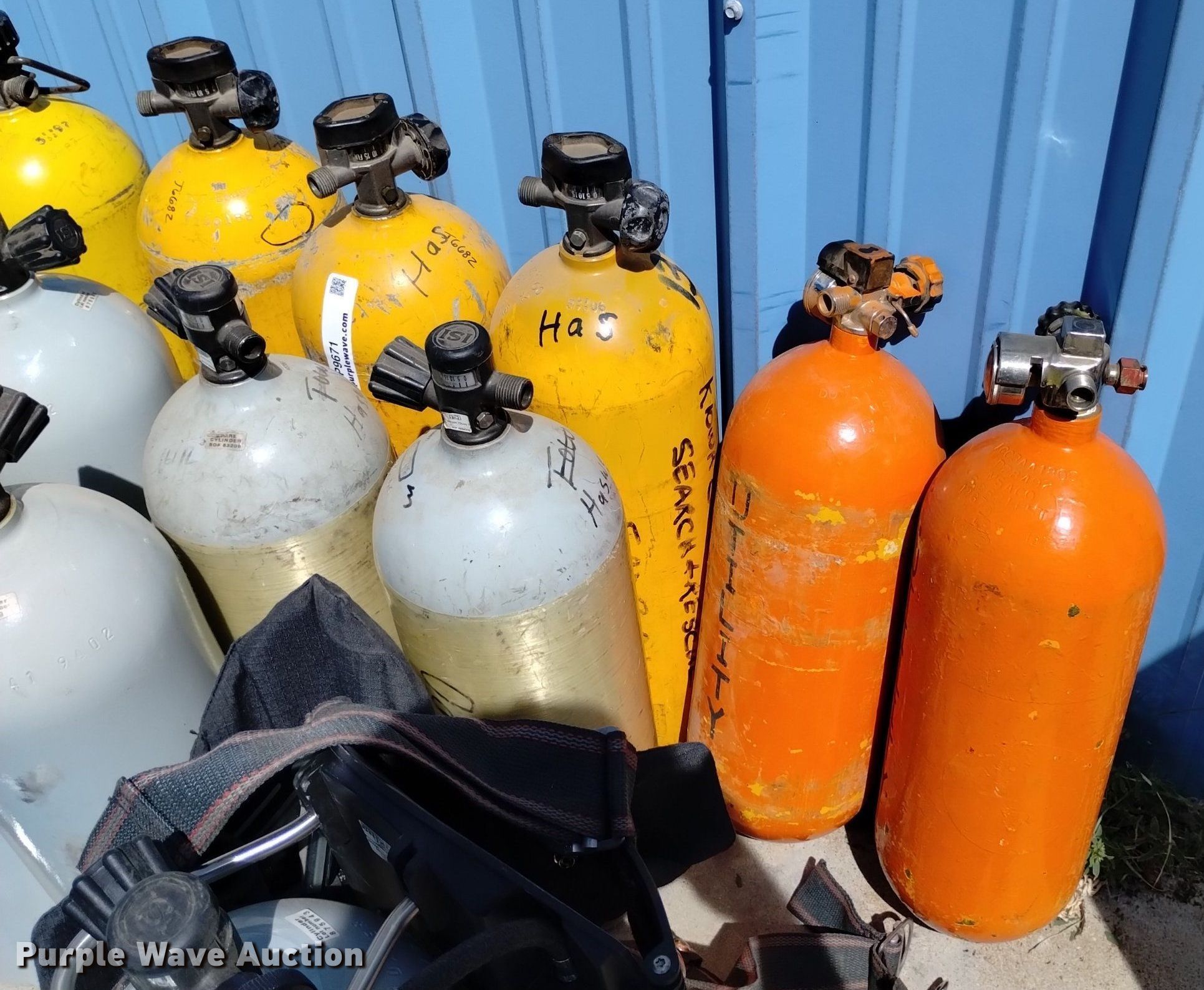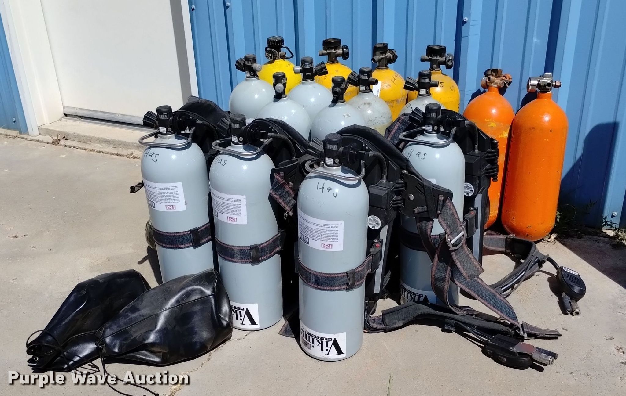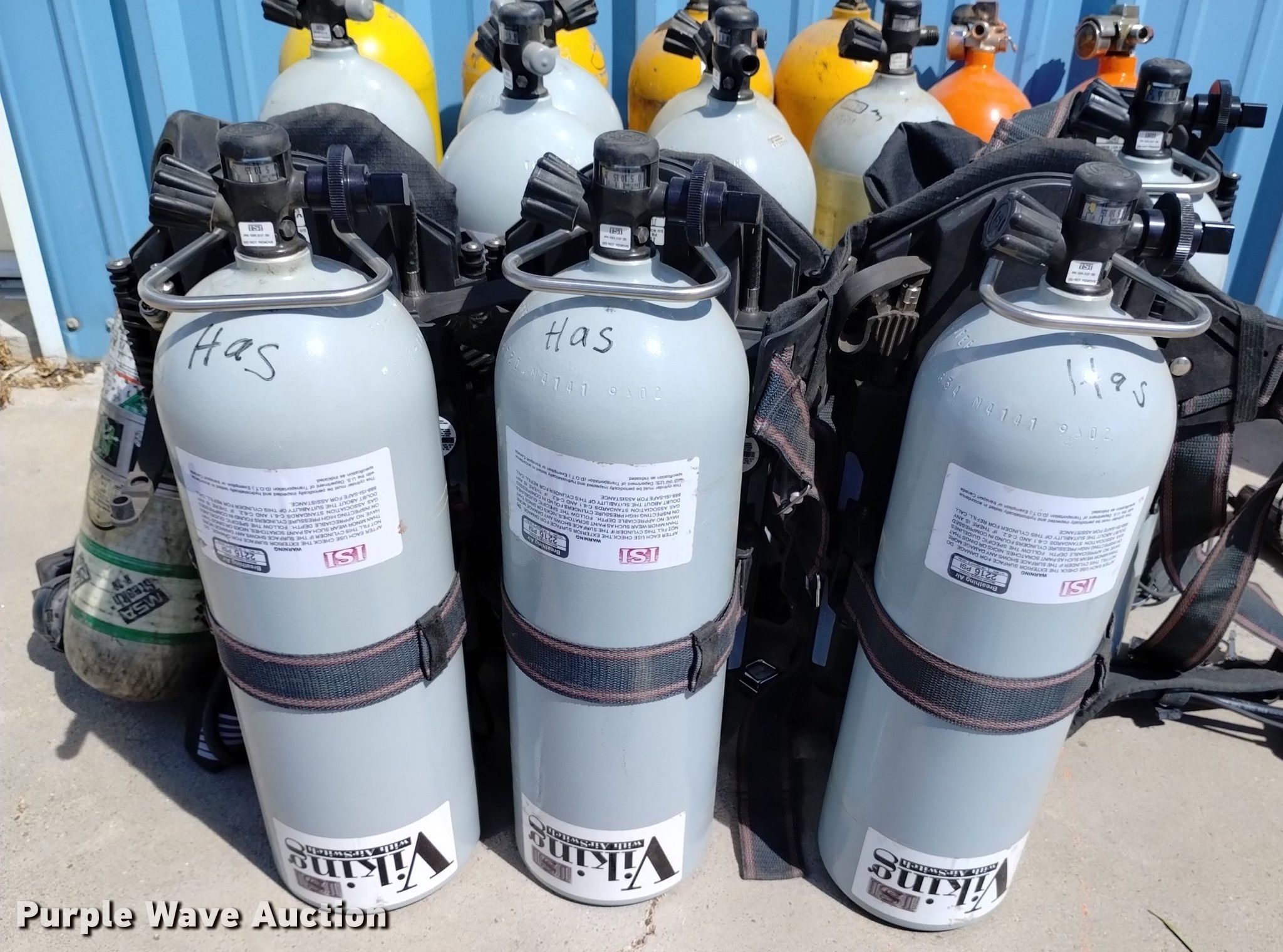 Purple Wave is selling a used Tools in Colorado. This item is a (17) SCBA tanks with the following: (2) Masco, (4) Scott, (10) Viking, (4) backpacks, MSA, (2) ISI facemasks