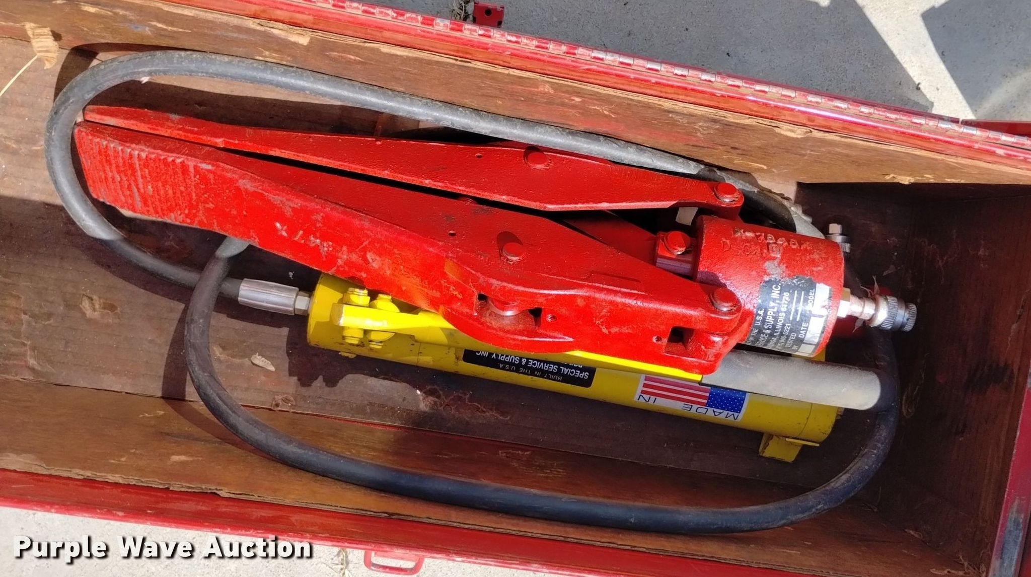 Purple Wave is selling a used Tools in Colorado. This item is a Special Service and Supply rescue tools with the following: C-10 high pressure air cutter, RS10 extractor, (2) porta powers, Spreader