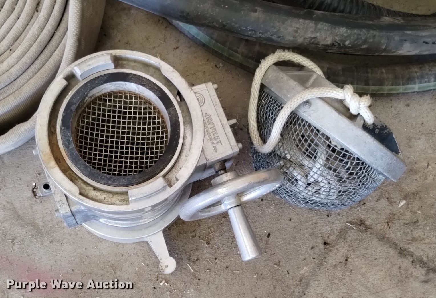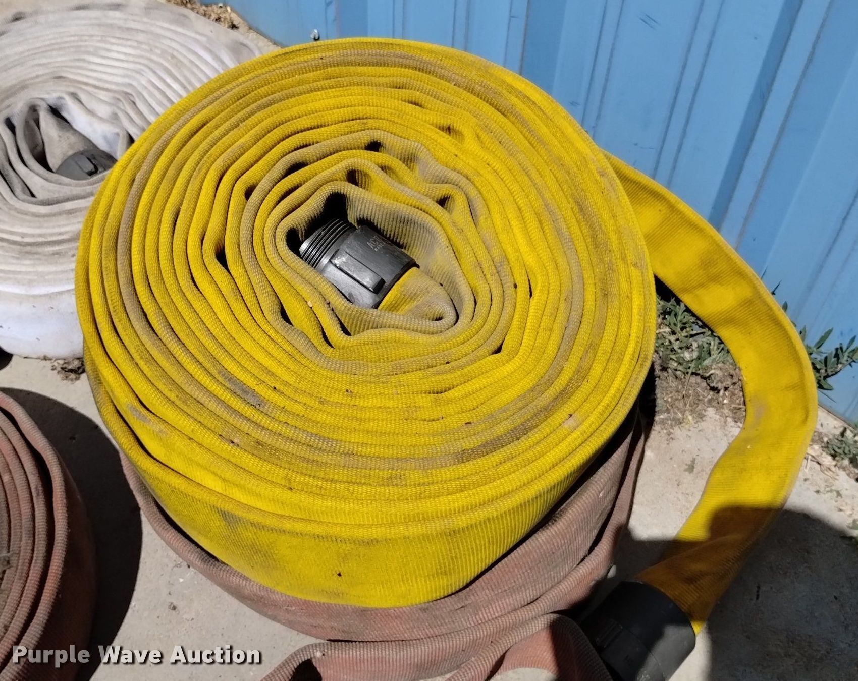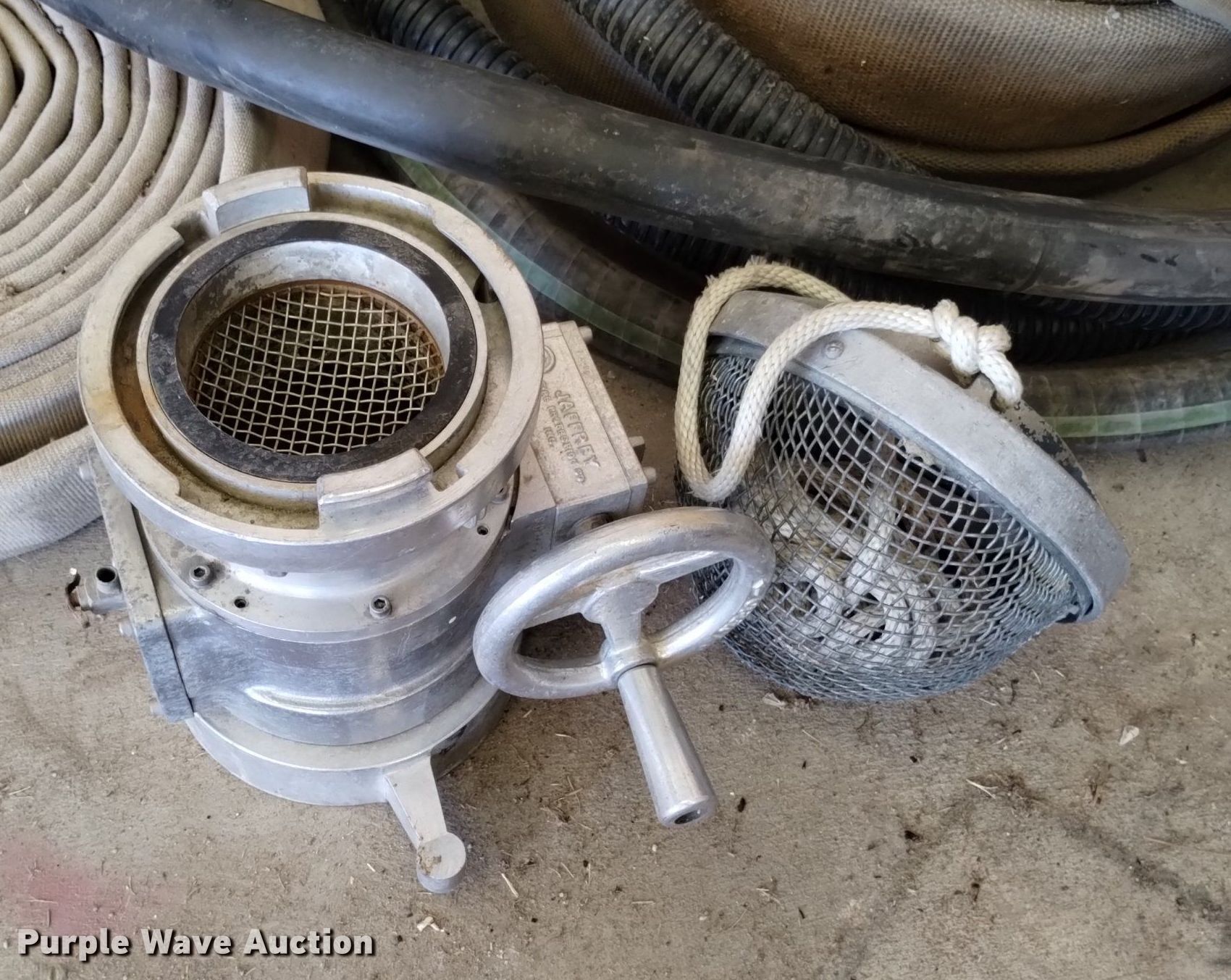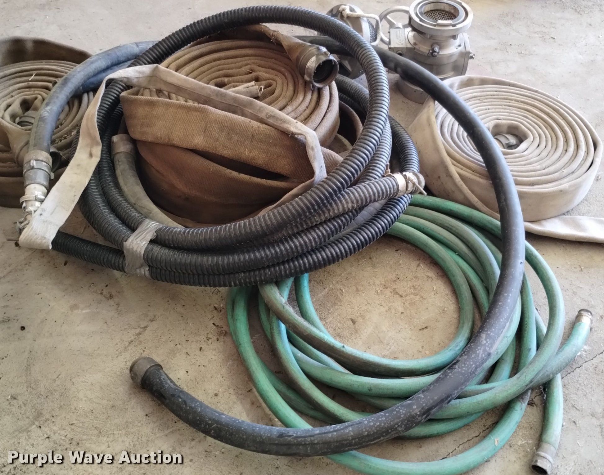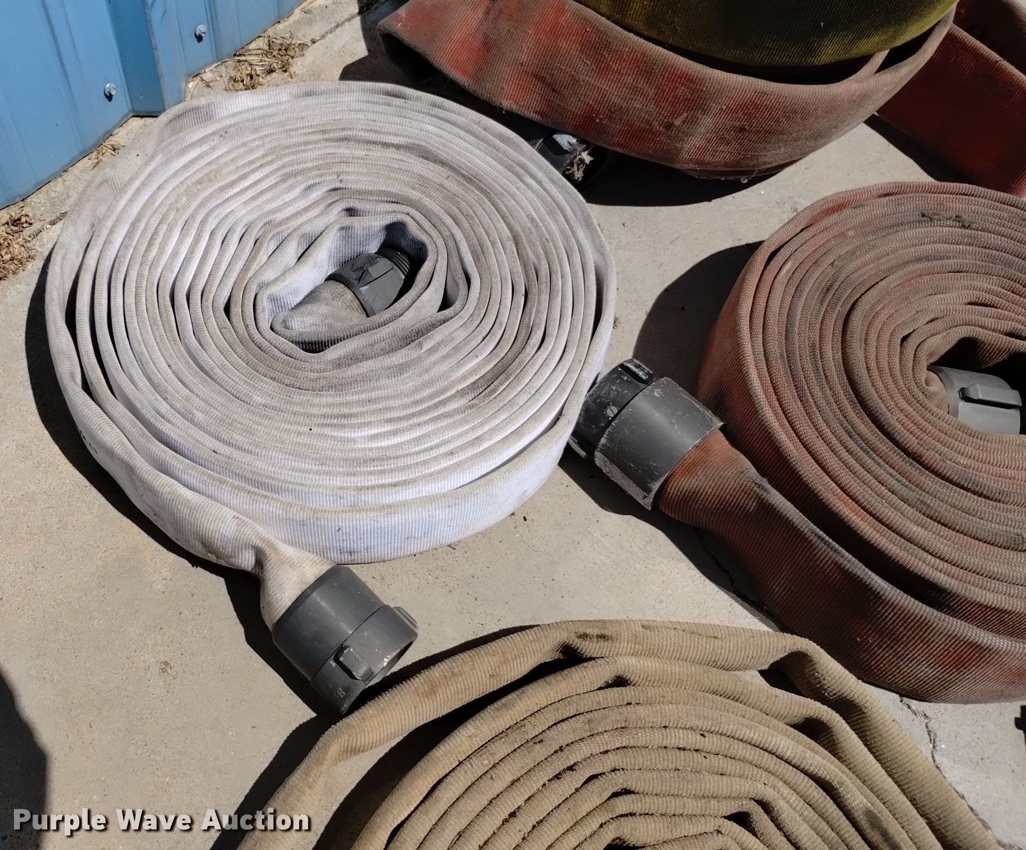 Purple Wave is selling a used Tools in Colorado. This item is a (8) fire hoses with the following: (2) 5" diameter, (4) 4.5" diameter, 4" diameter, 1.5" diameter, Jaffrey screen, Nozzles