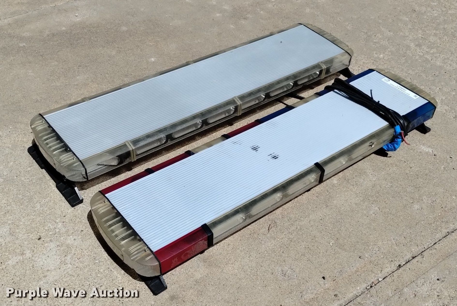Purple Wave is selling a used Automotive Parts or Acces. in Colorado. This item is a (5) light bars with the following: (2) Whelen SW8BBRR, (2) Code 3 2100, Whelen arrow stick