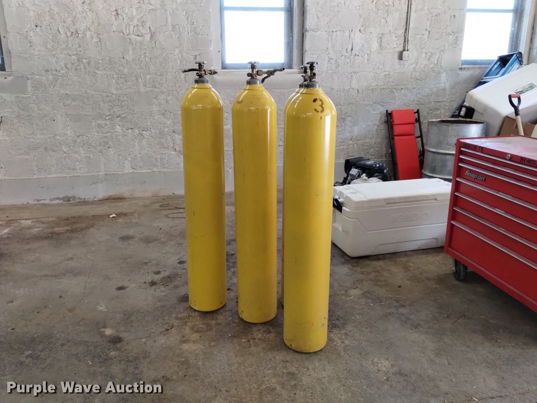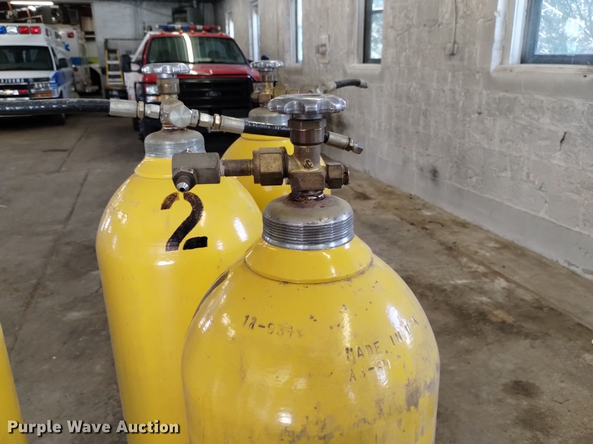 Purple Wave is selling a used Tools in Colorado. This item is a Furnas SBCA filling pump with the following: WEG electric motor, HP: 1, (2) tank filling stations, (4) tanks, Capacity: 311 cu. ft.