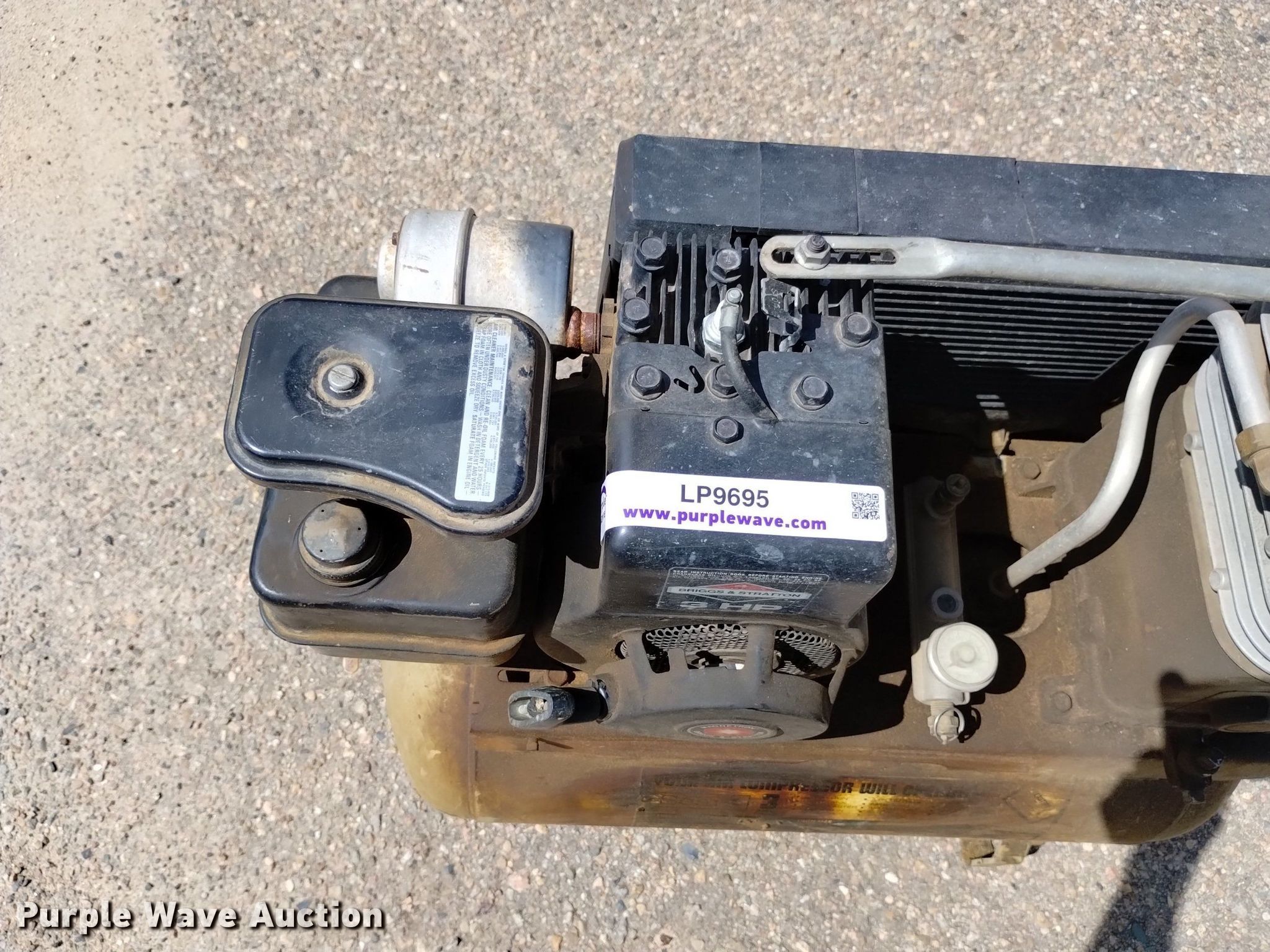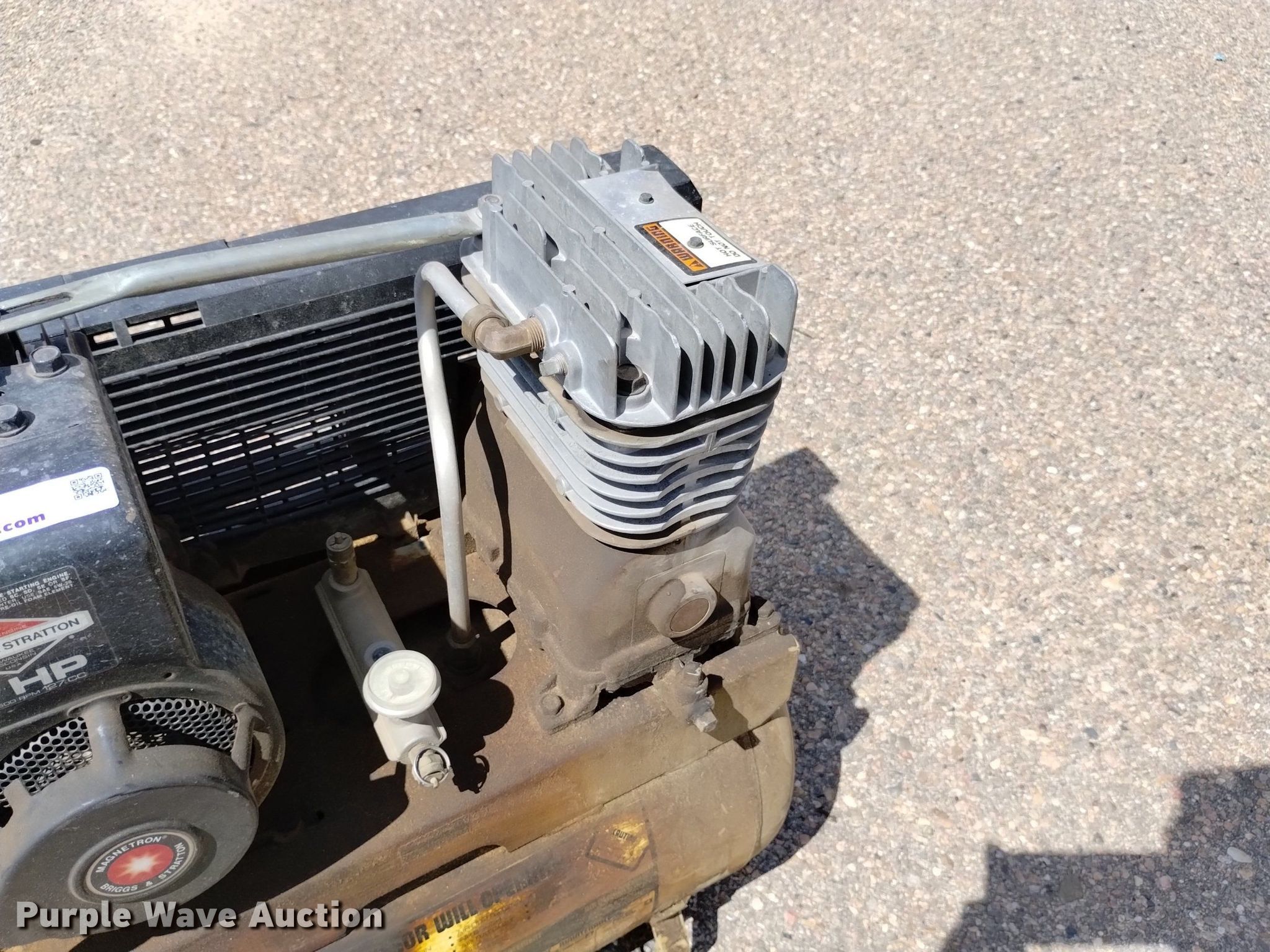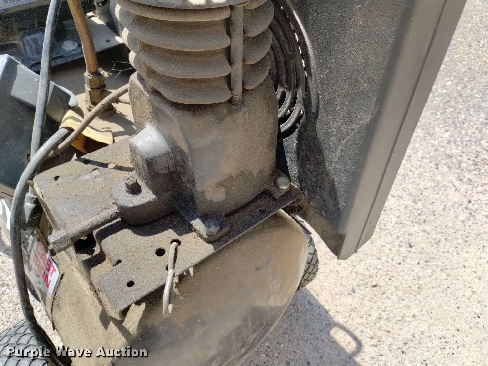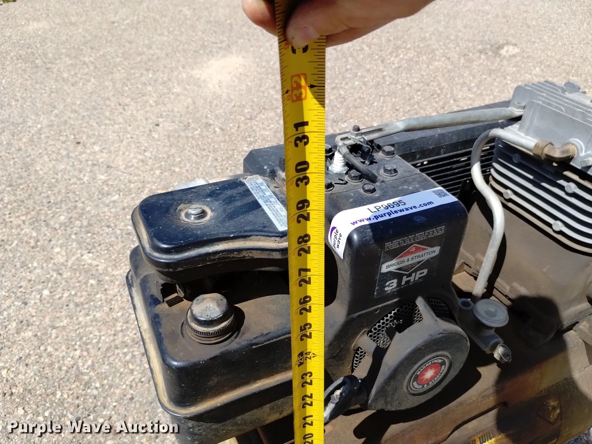 Purple Wave is selling a used Air Compressor in Colorado. This item is a (2) air compressors with the following: Sears, Briggs & Stratton single cylinder gas engine, Tank capacity: 2 gallons, Campbell Hausfeld VS401100AJ, Electric motor, HP: 2, Tank capacity: 11 gallons