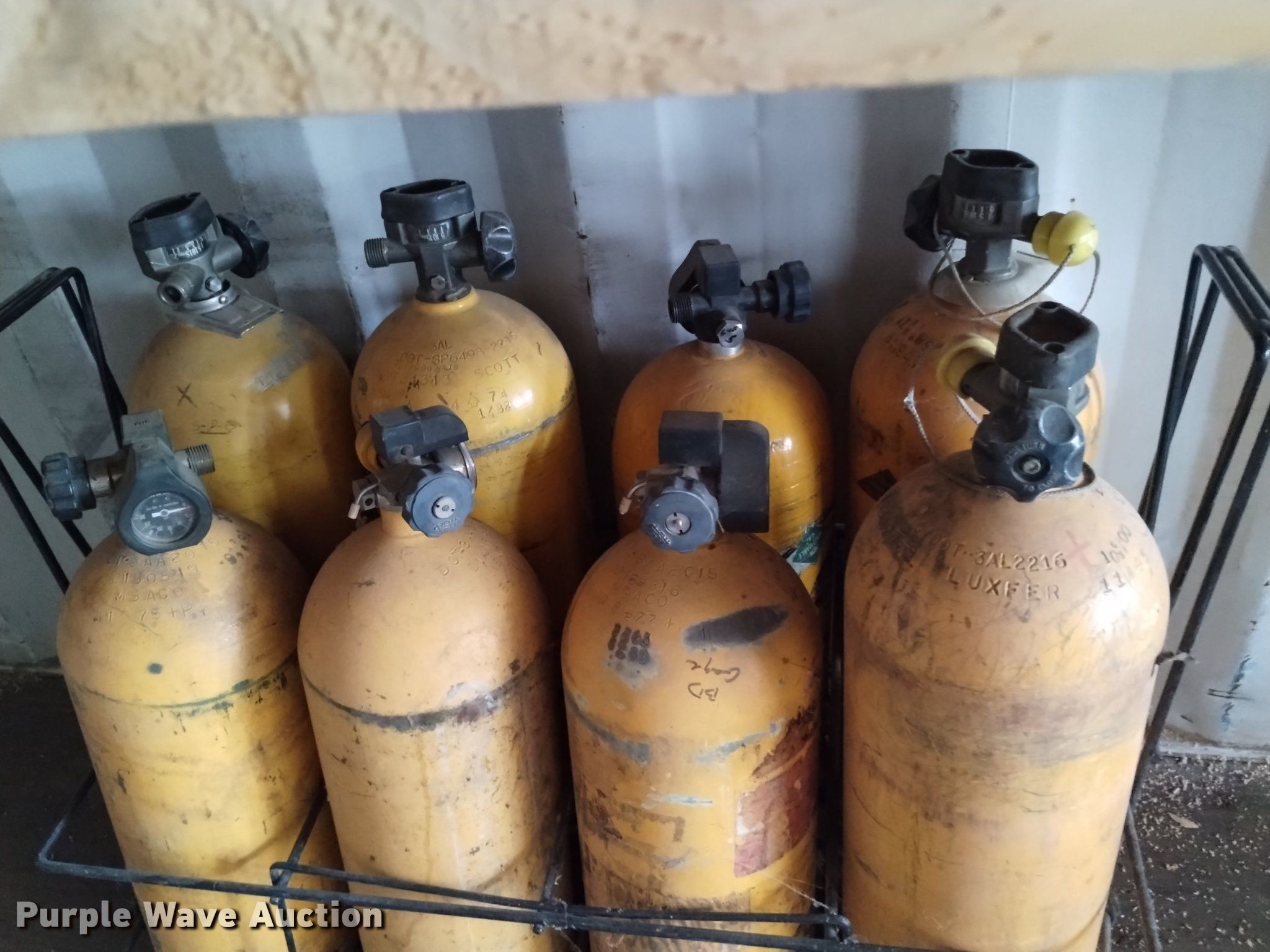 Purple Wave is selling a used Tools in Colorado. This item is a SCBA equipment with the following: (12) MSACO tanks, (7) Scott tanks, (10) MSA tanks, (18) backpack frames, (13) face masks, MSA tank, Backpack, Carrying case, MSACO tank, Backpack, Carrying case