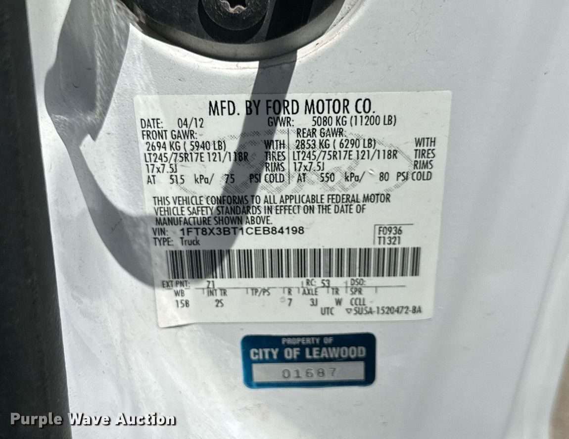 Purple Wave is selling a used 3/4 or 1 Ton Pickup or Van in Kansas. This item is a 2012 Ford F350 Super Duty SuperCab pickup truck with the following: Miles: 106,849 on odometer, VIN: 1FT8X3BT1CEB84198