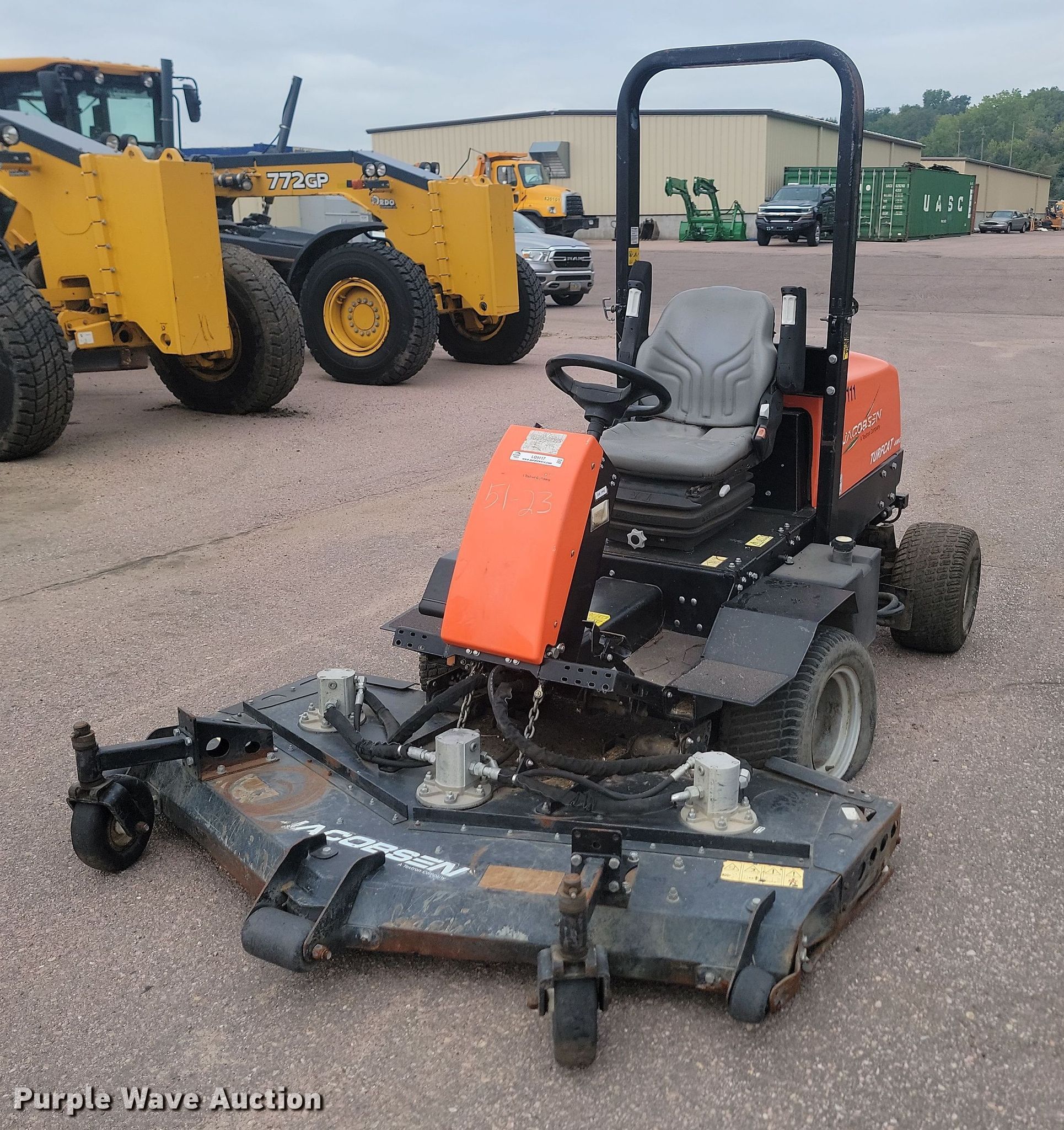 Purple Wave is selling a used Commercial Turf Mower in South Dakota. This item is a Jacobsen Turfcat 628D lawn mower with the following: Hours: 1,981 on meter, Cutting width: 72", Serial: 691804212-01707, Unit #: 51-23