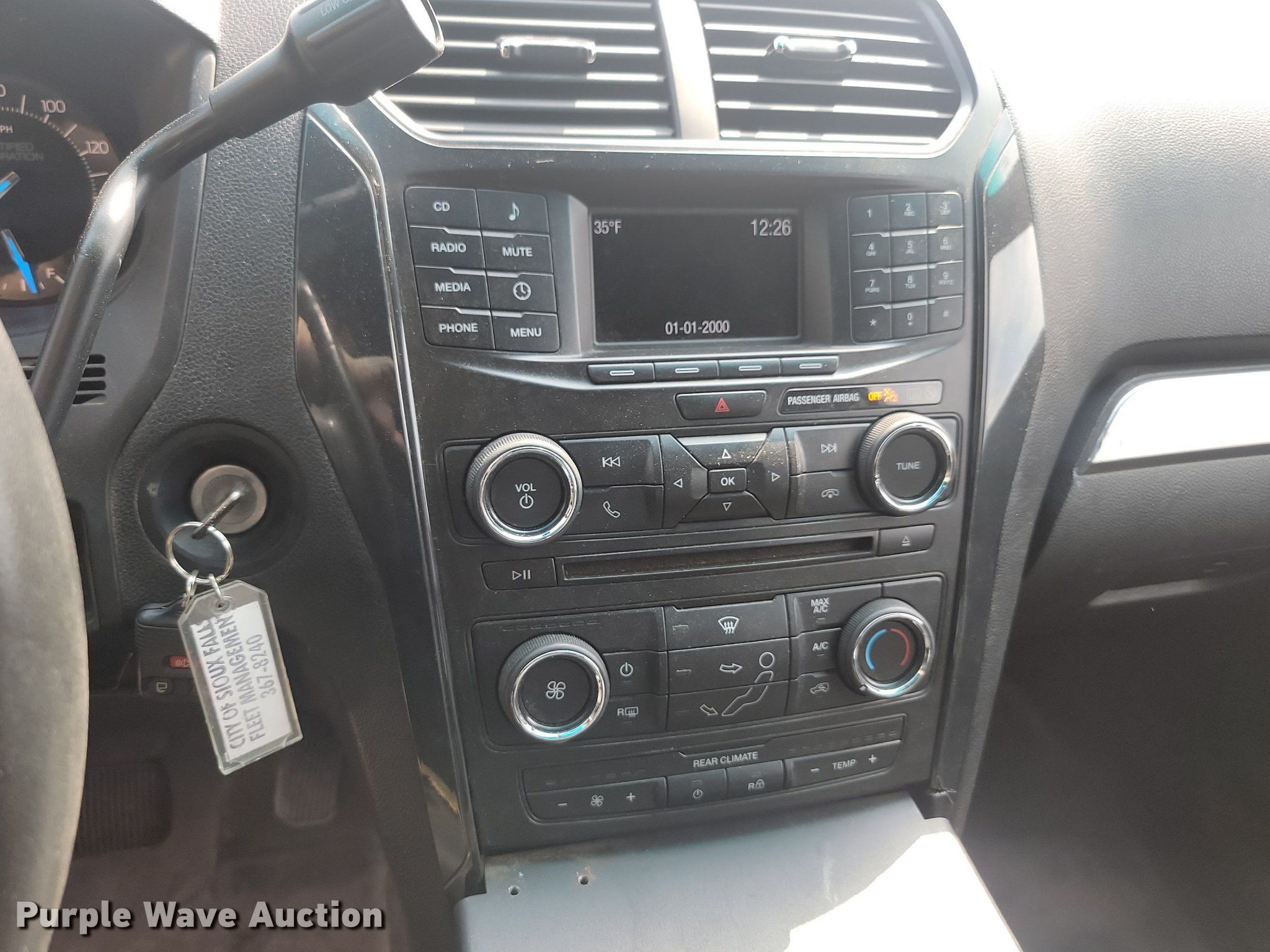 2016 Ford Explorer Police Interceptor SUV. Miles: 116,523 on odometer, VIN: 1FM5K8AR2GGA12790, Unit #: 51-28. Engine Displacement: 3.7L V6 DOHC, Cylinders: 6, Fuel type: Gas. Transmission Automatic, All wheel drive. Interior AC, Heat, Seat: Power driver, Power windows, Power locks, Cruise control, Backup camera. Tires Size: 245/55R18. Notes Dead battery, Drivers door damaged, Unknown operating condition. South Dakota title. City of Sioux Falls - Open inspection September 22. 1000 East Chambers Street. Sioux Falls, SD 57104