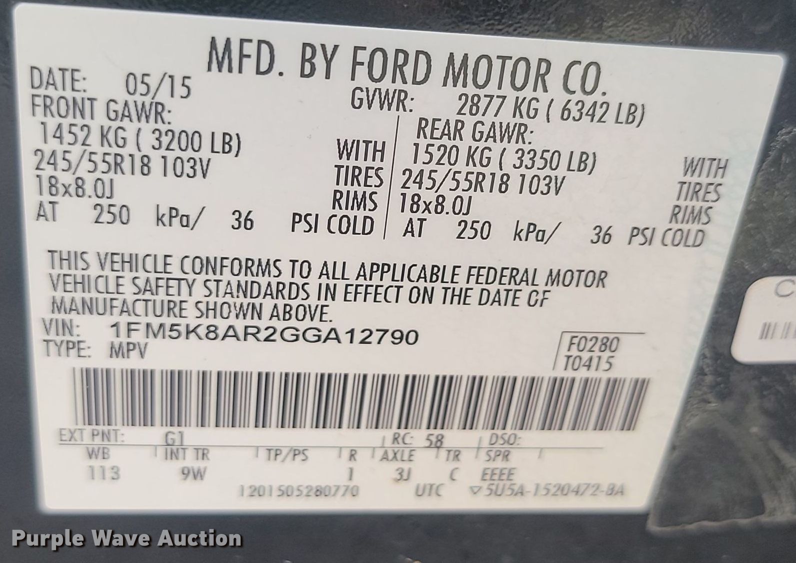 - VIN: 1FM5K8AR2GGA12790