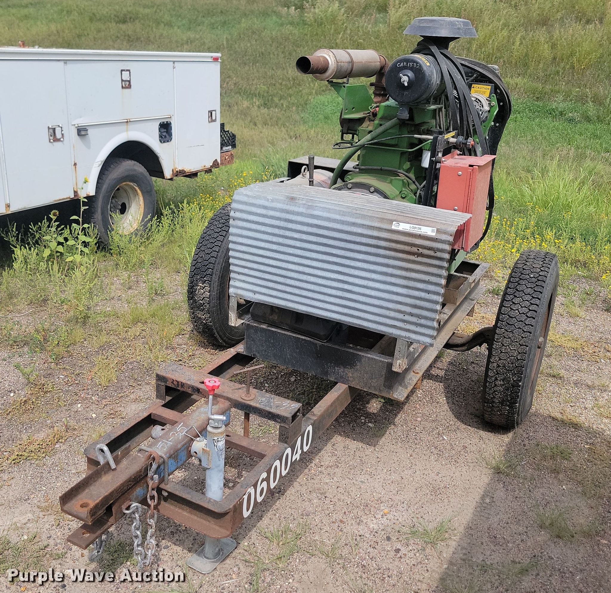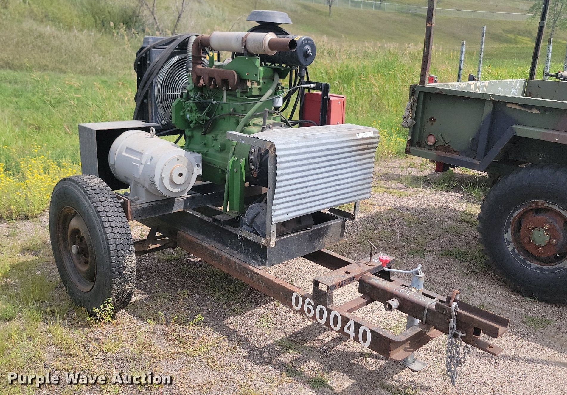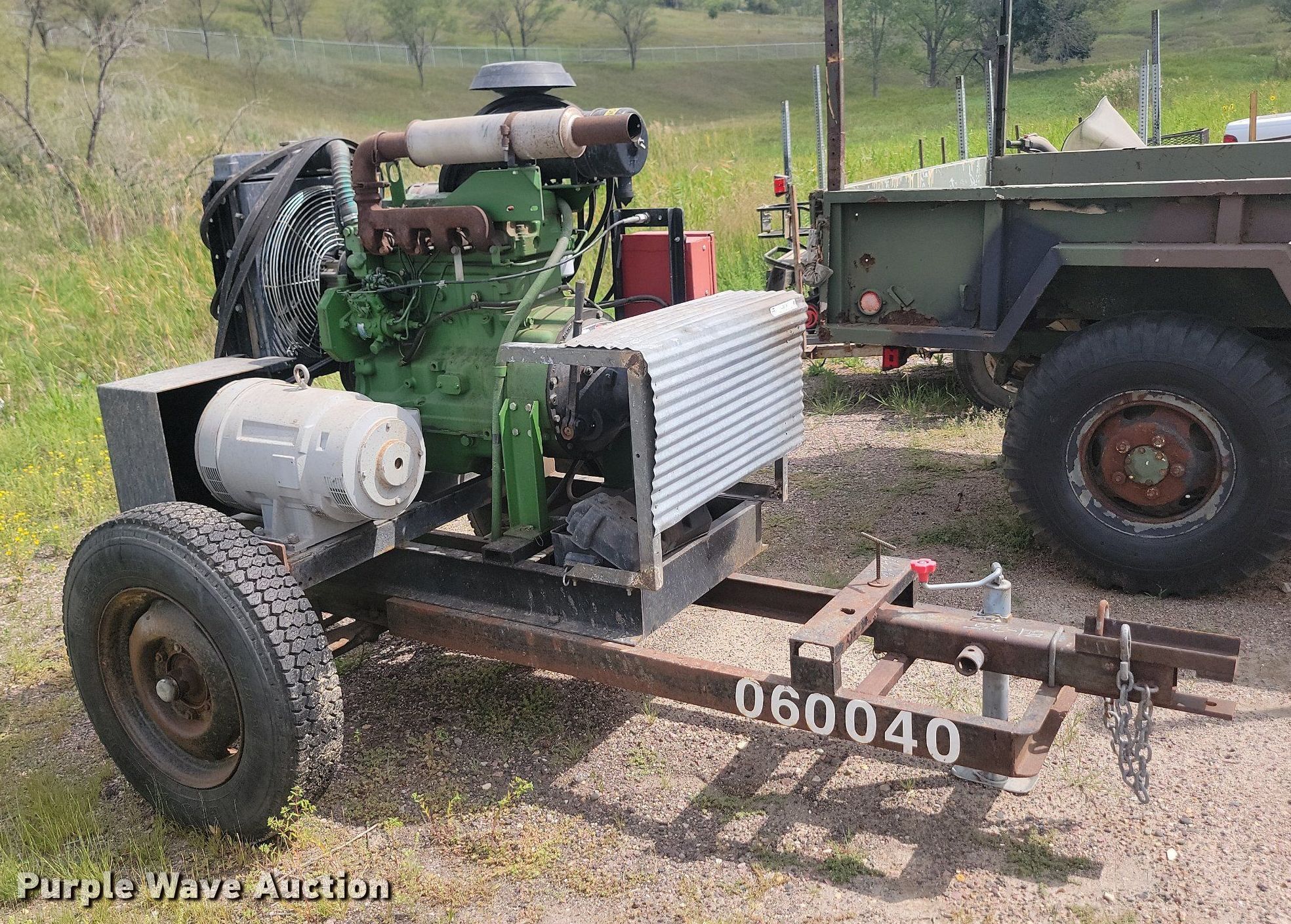 Lima Mac 280MDL0054-1 generator. Hours: 5,806 on meter. Engine John Deere PowerTech, Displacement: 4.5L, Cylinders: 4, Fuel type: Diesel. Features kVA: 13, kW: 10, Phase: Three, Electric start. Trailer 9.5' L x 68" W, Axles: Single, Tire size: 8R19.5. Notes Dead battery, Unknown operating condition. City of Sioux Falls - Open inspection September 22. 1000 East Chambers Street. Sioux Falls, SD 57104