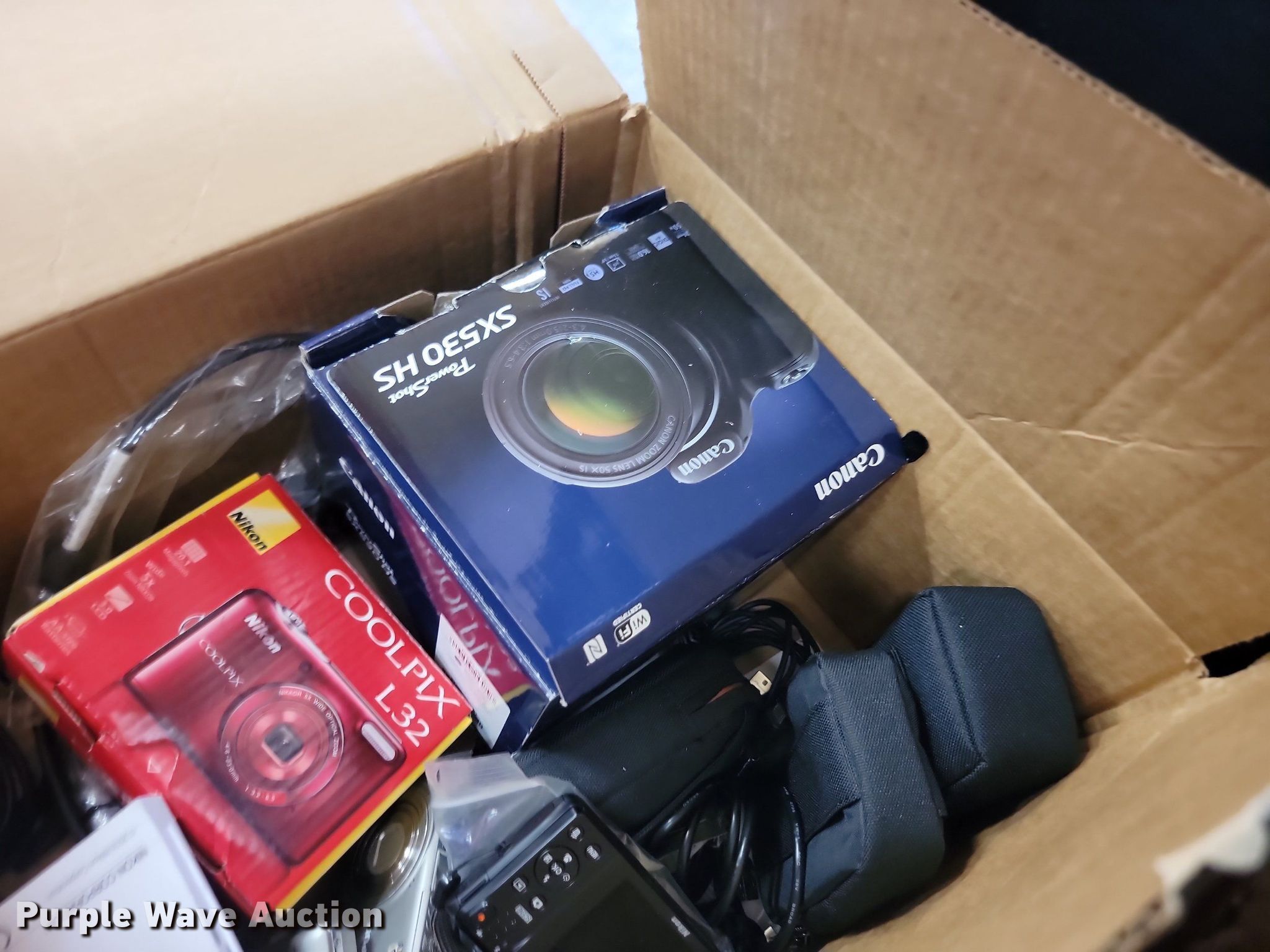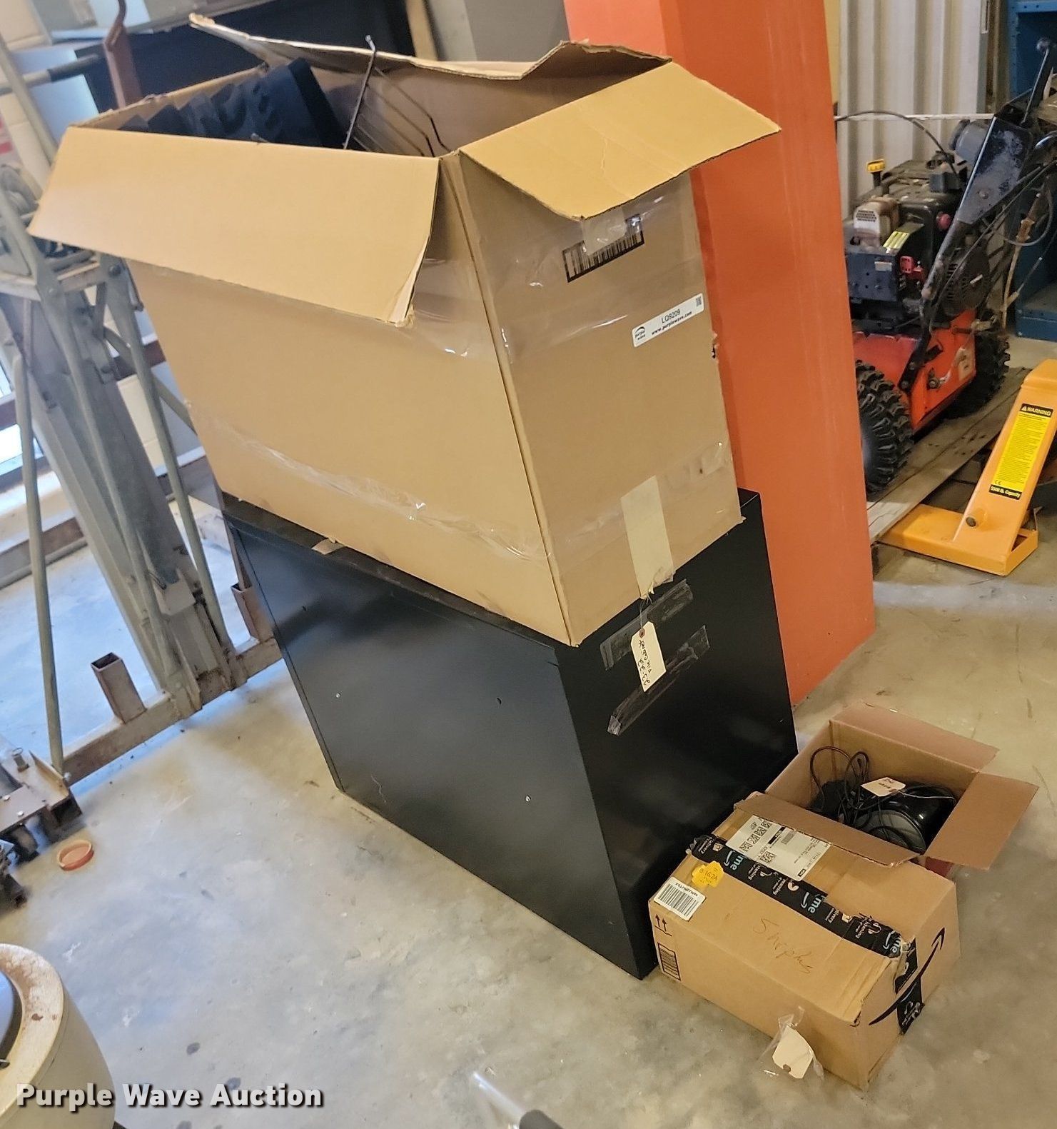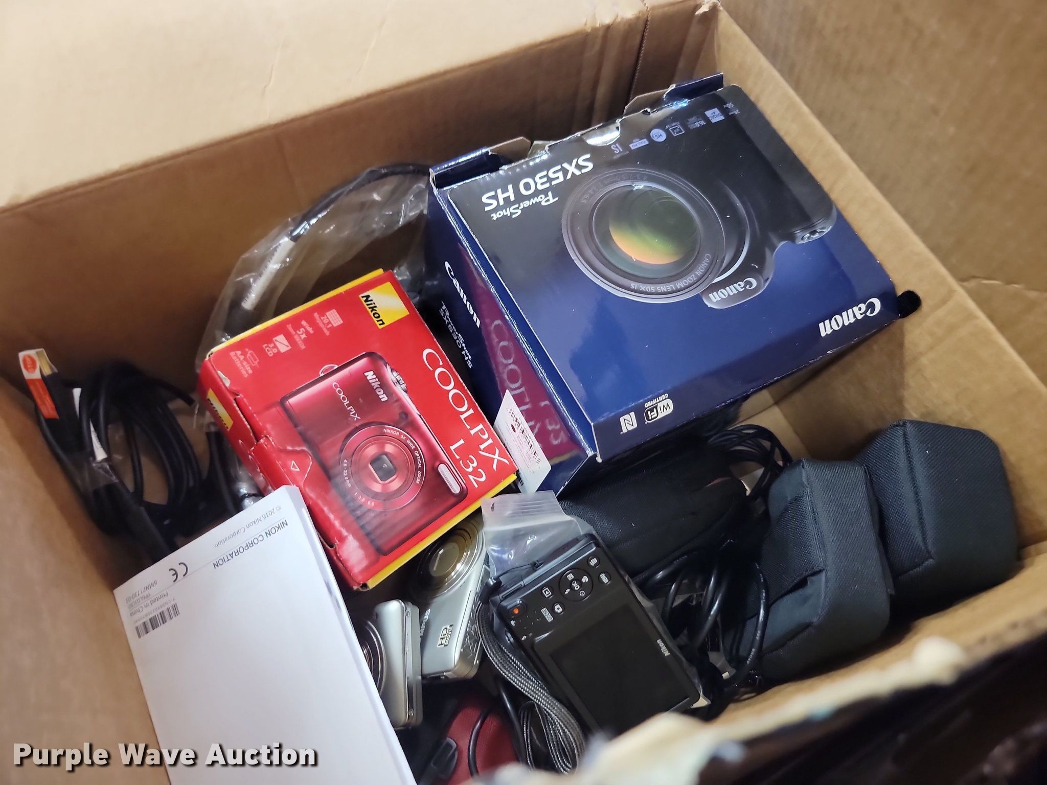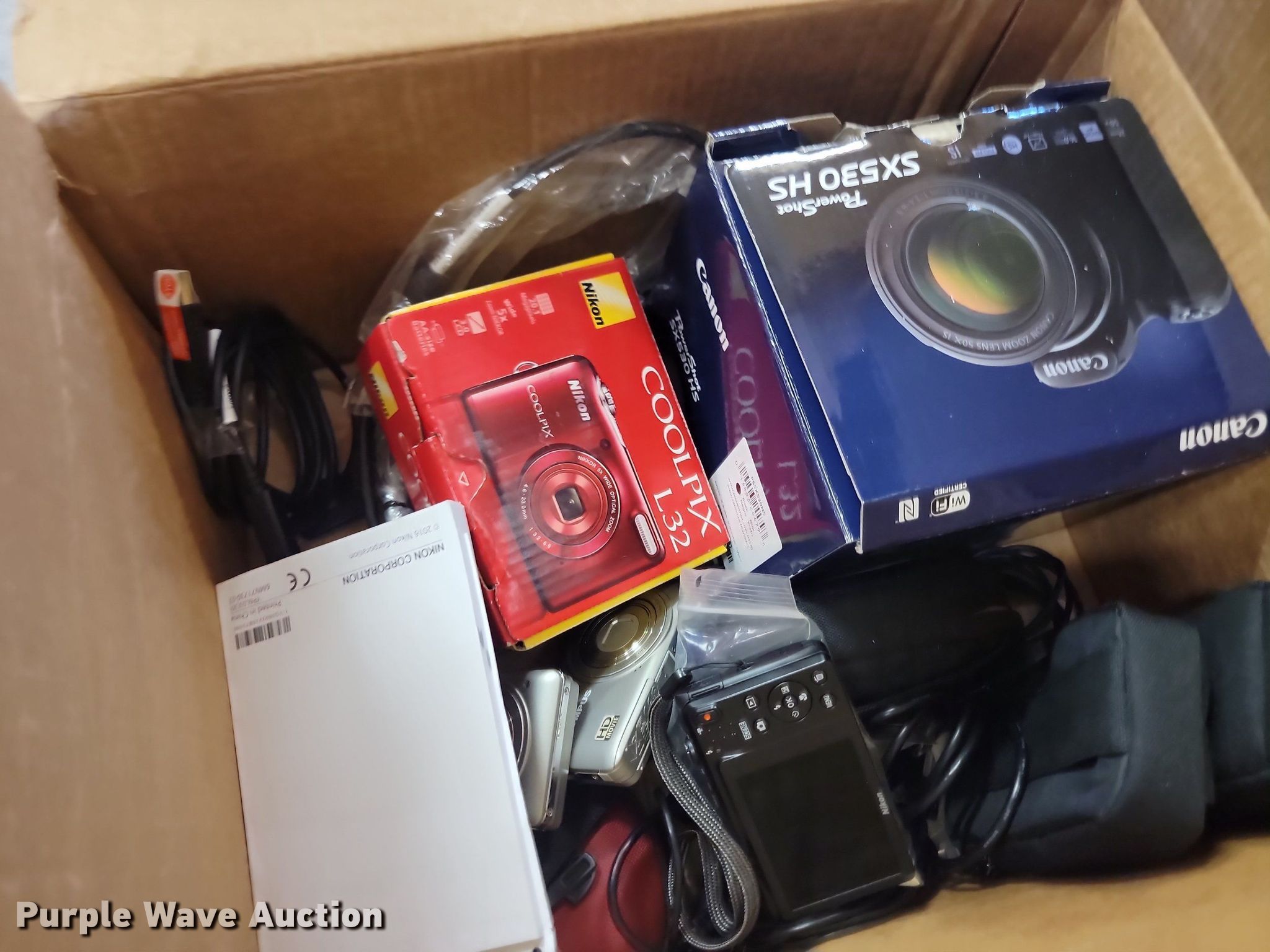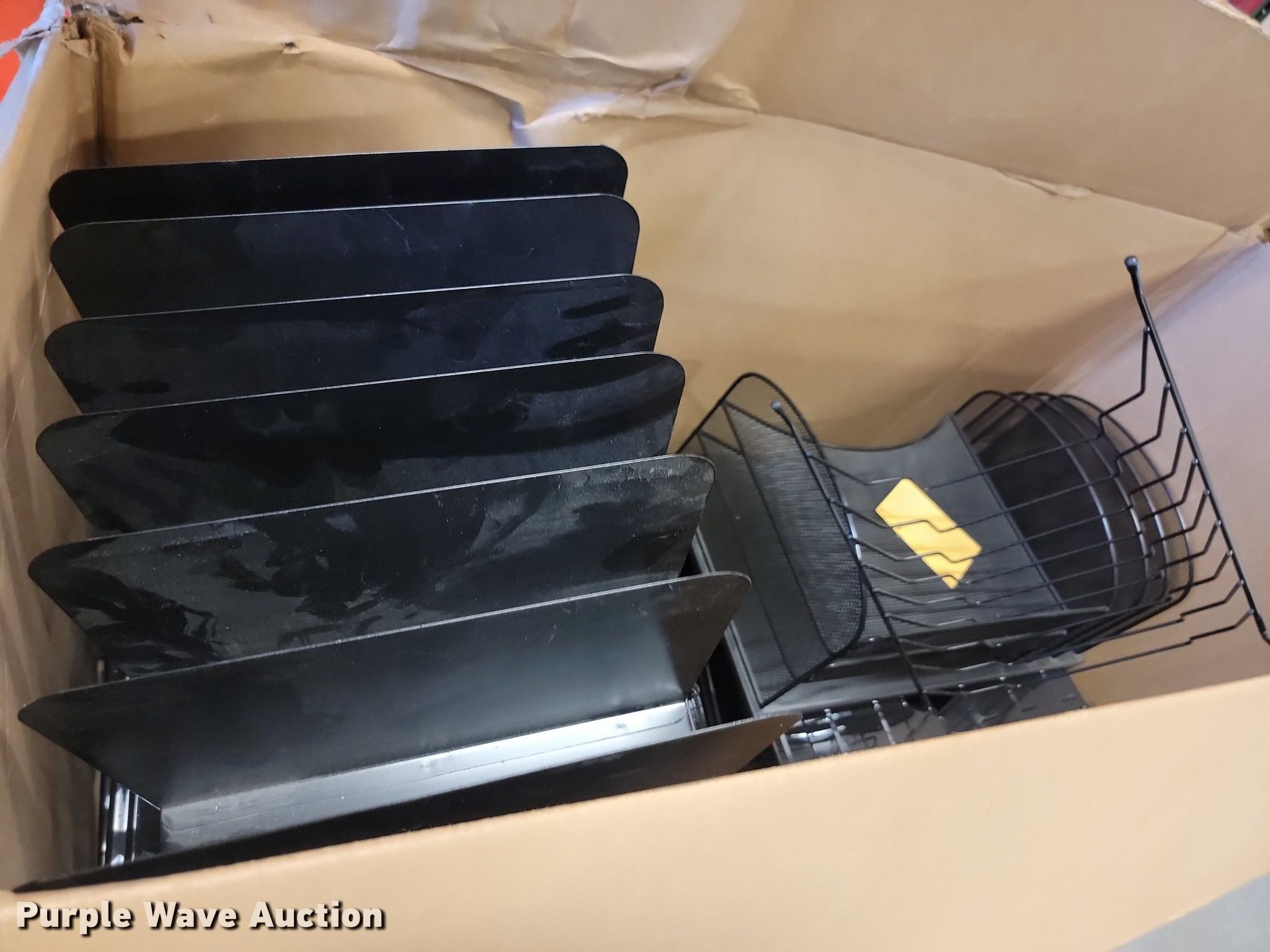 Purple Wave is selling a used Office Supplies and Equip. in South Dakota. This item is a Office supplies and equipment with the following: File cabinet, Desk organizers, Cameras, Label maker