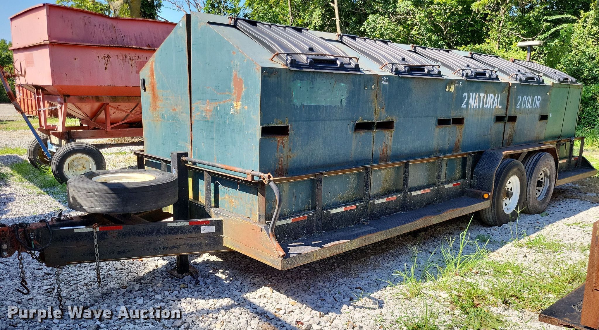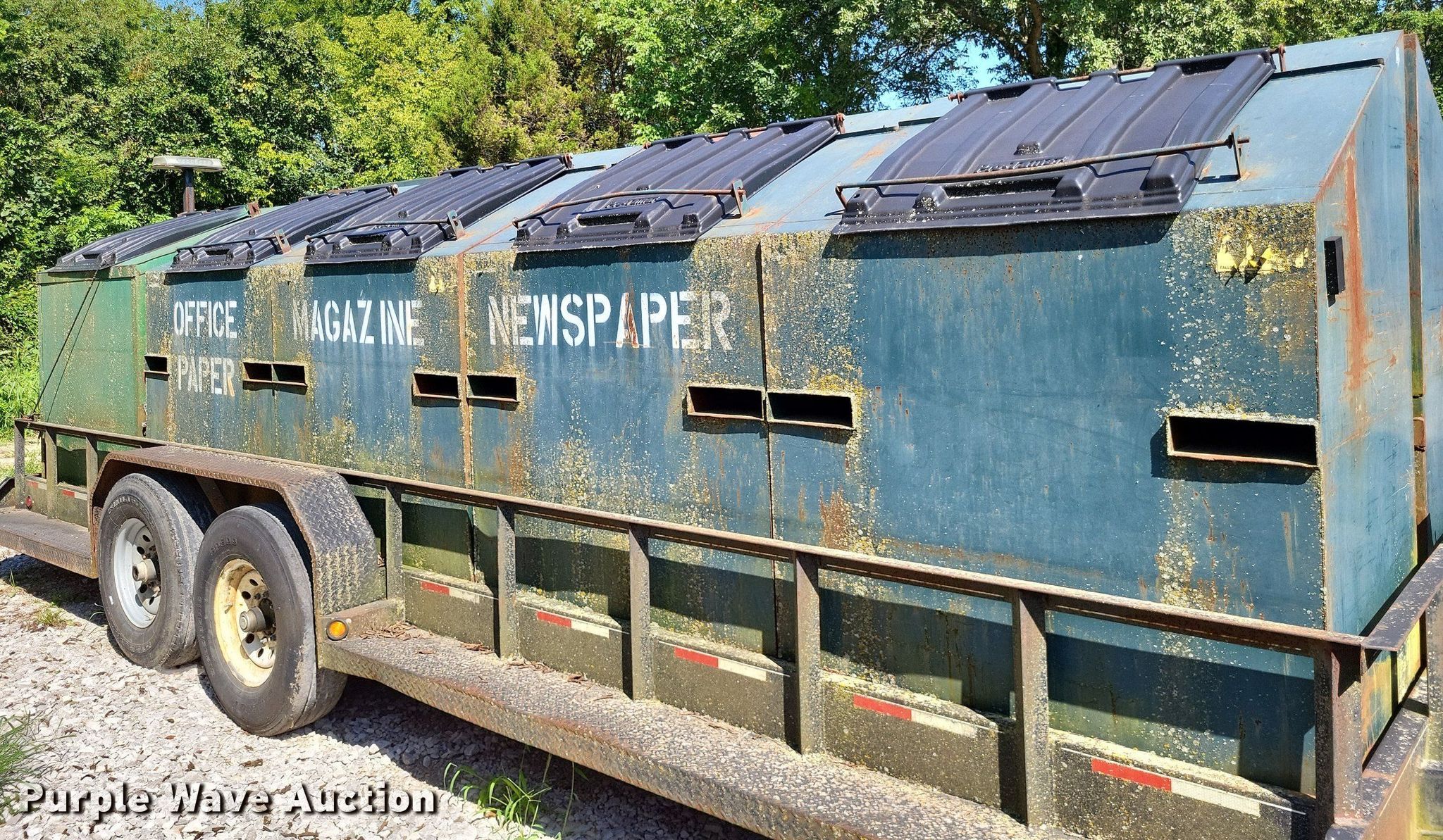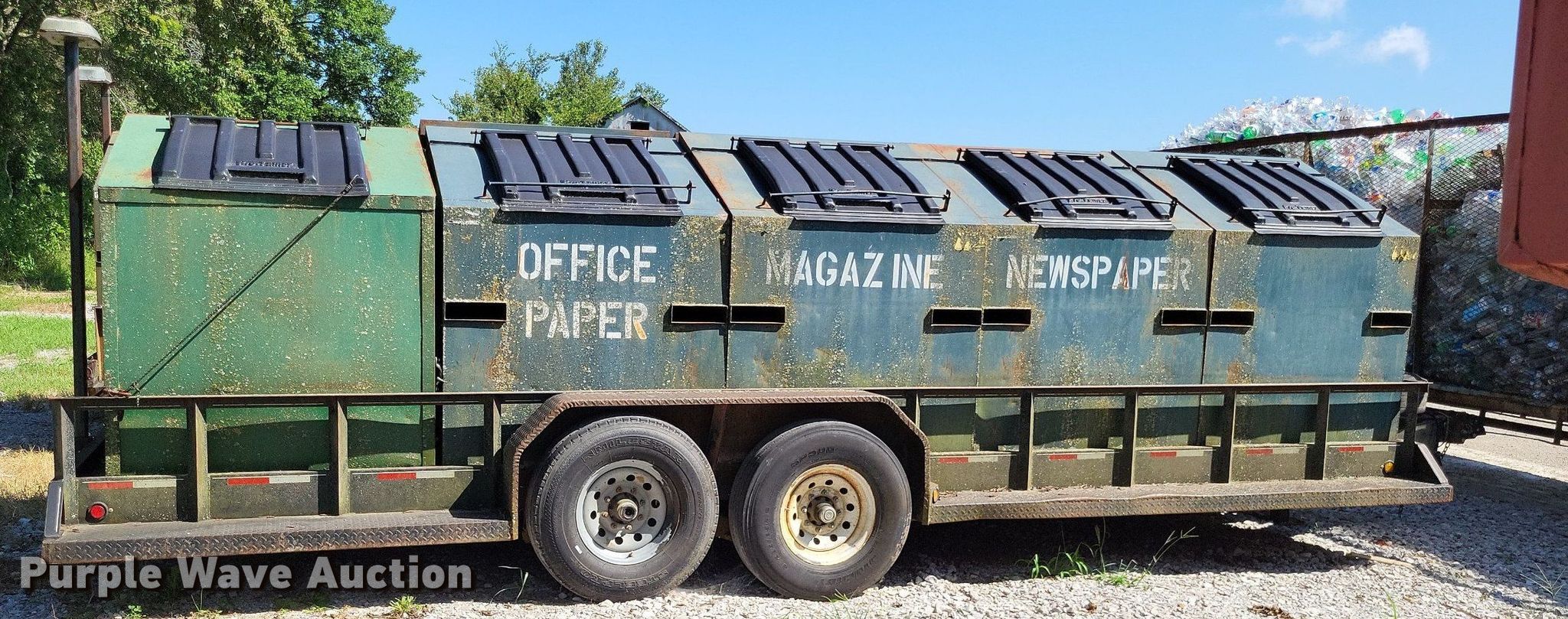 2011 Retco Utility recycle trailer. VIN: 4JMBF2420B1032452. Dimensions Overall: 26' L x 8' W, Deck: 21' 3" L x 8' W, Deck height: 21". Features Deck type: Steel, (8) 3' x 4' x 45" trash bins, 6' x 4' x 47" trash bin. Chassis Ball hitch: 2 5/16", Landing gear: Single, Suspension: Spring, Brakes: Electric, Axles: Tandem. Tires Steel wheels, Size: ST235/85R16. Missouri title. Title distribution may be delayed up to 14 days from verification of funds. Perry County, MO. Perryville, MO 63775