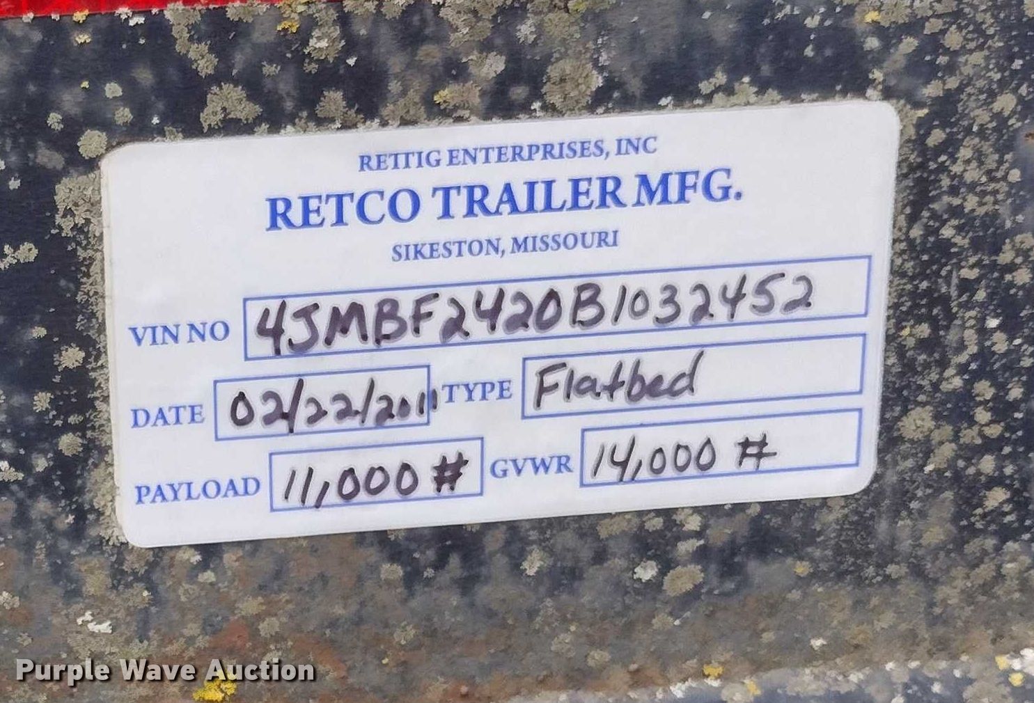 Purple Wave is selling a used Trailer Other in Missouri. This item is a 2011 Retco Utility recycle trailer with the following: VIN: 4JMBF2420B1032452