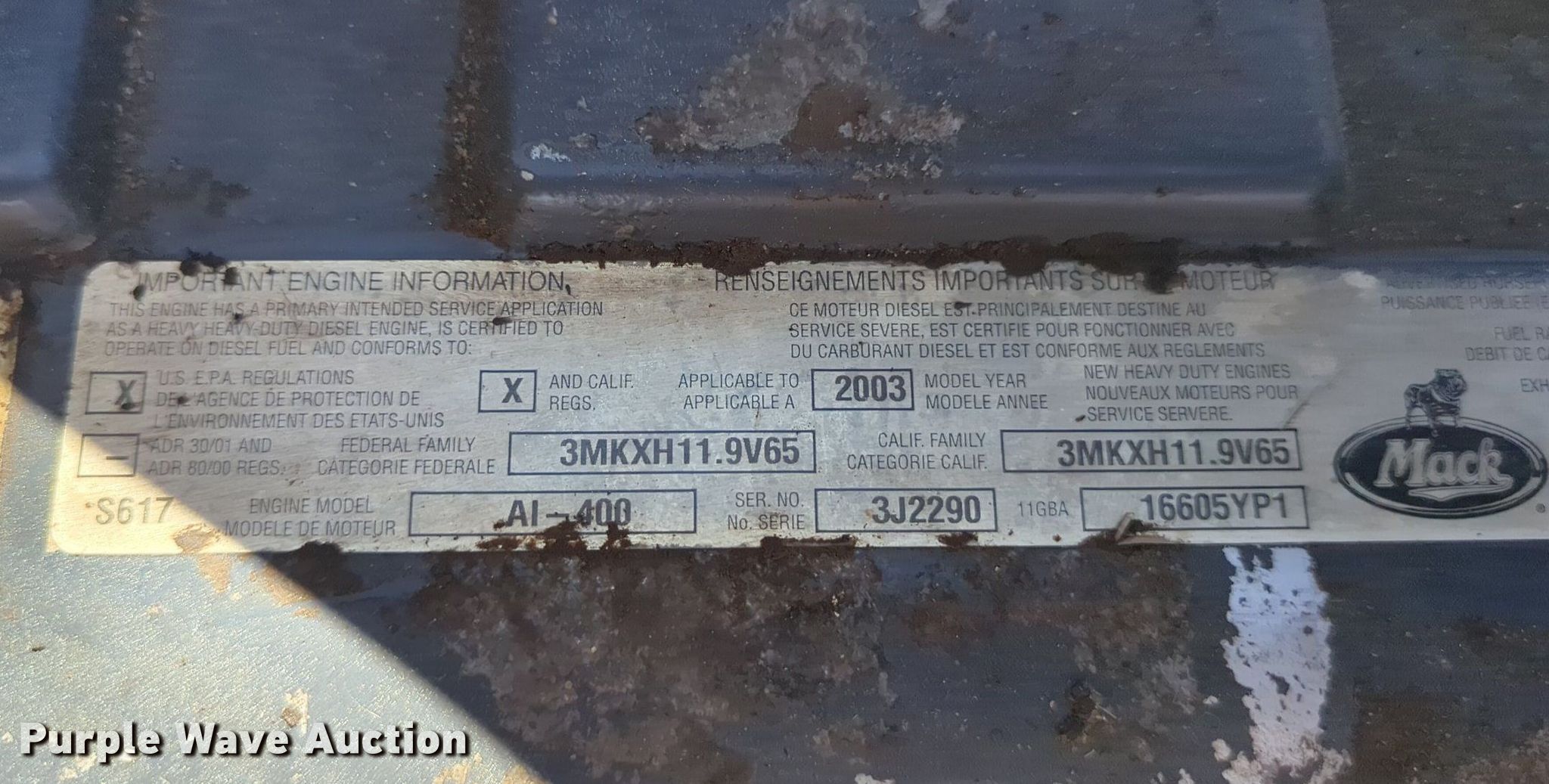 Take a look at this used 2004 Mack CV713 Granite dump truck being sold on September 26th, 2023 in the SOLD! September 26 Government Auction made by Mack. Take a look at all of the item information below or take a look at similar auctions for Construction Trucks.