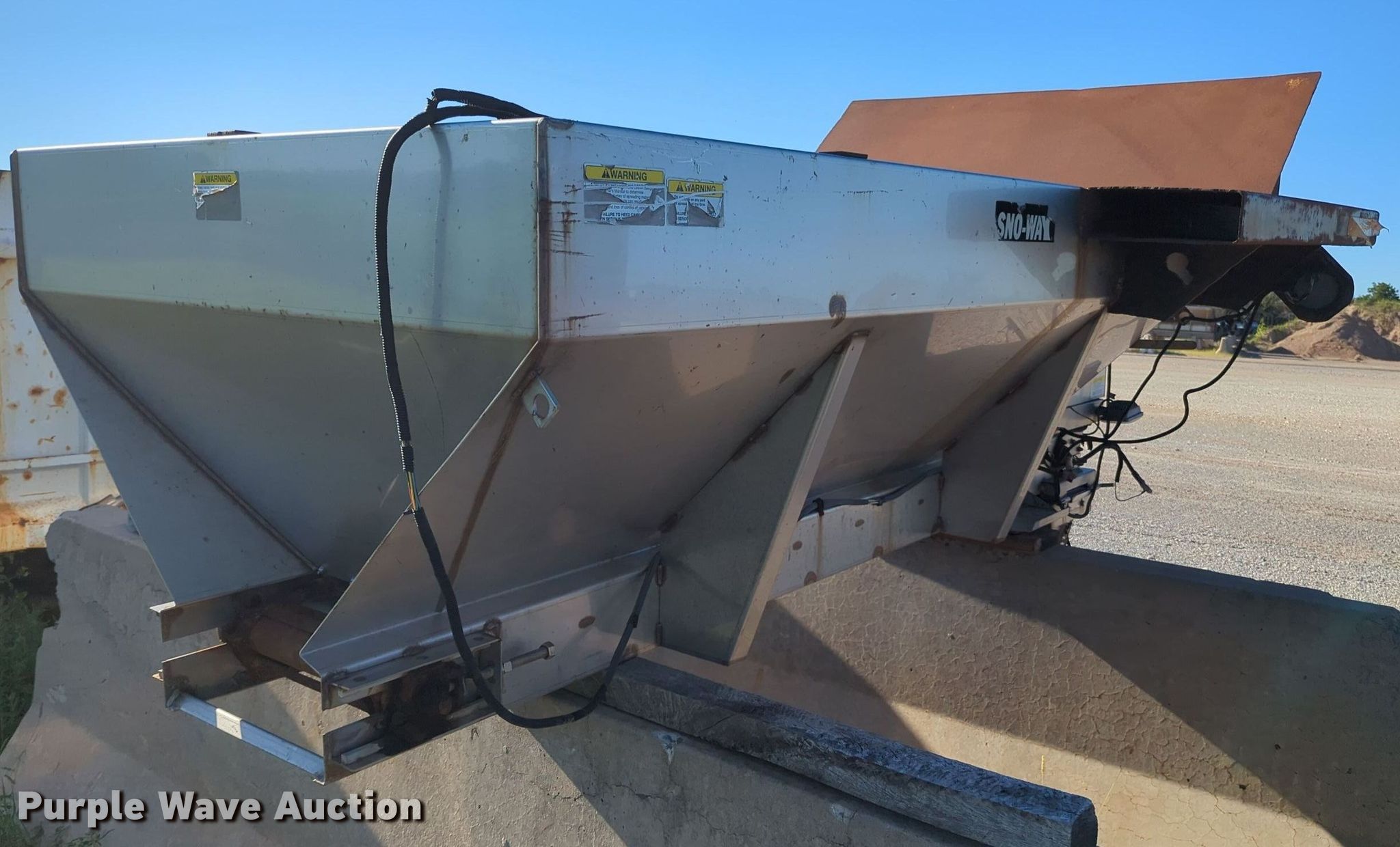 Purple Wave is selling a used Truck Part and Attach. in Oklahoma. This item is a Sno-Way spreader with the following: 8' L x 48" W, Side height: 24", Bed type: Aluminum