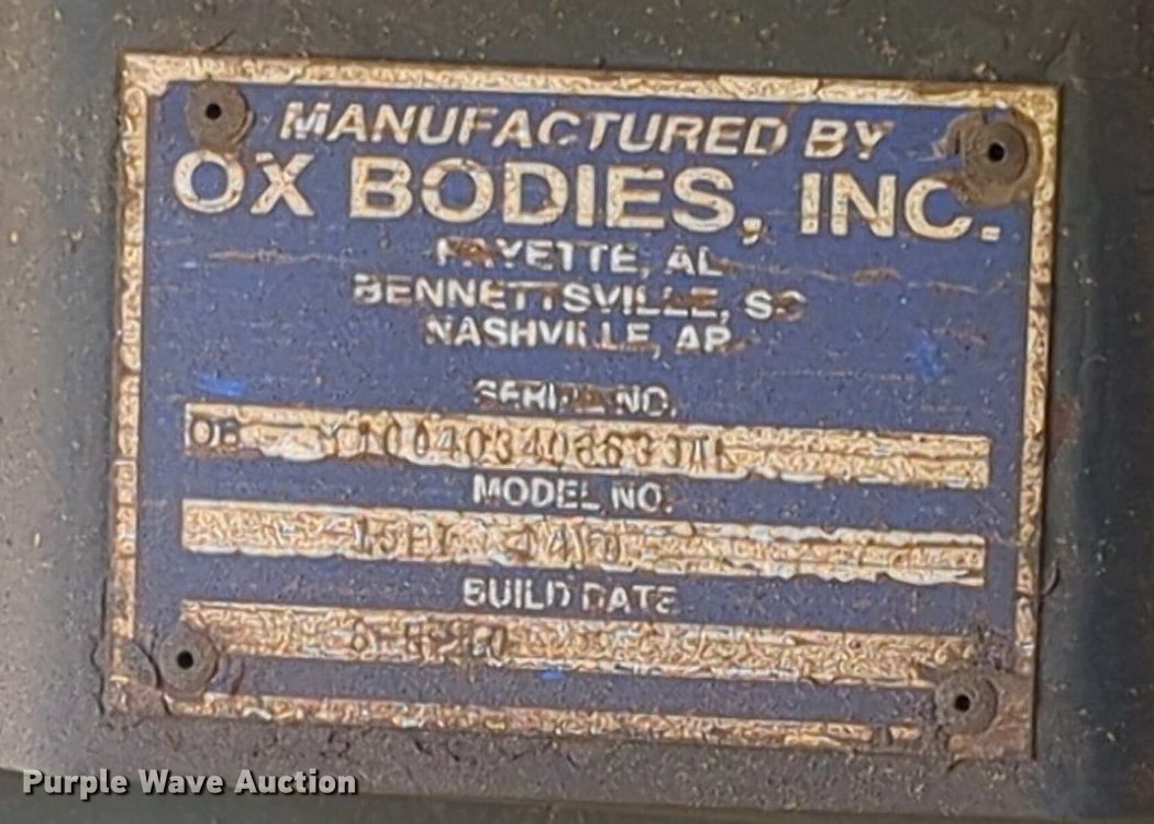 Ox Bodies dump bed. Features. 14' L x 96" W, Side height: 42", Side board height: 8", Bed type: Steel, Roll tarp, Ram: Single, End gate: Air operated. Oklahoma County - Open inspection September 25. 7105 South Anderson Road. Oklahoma City, OK 73150