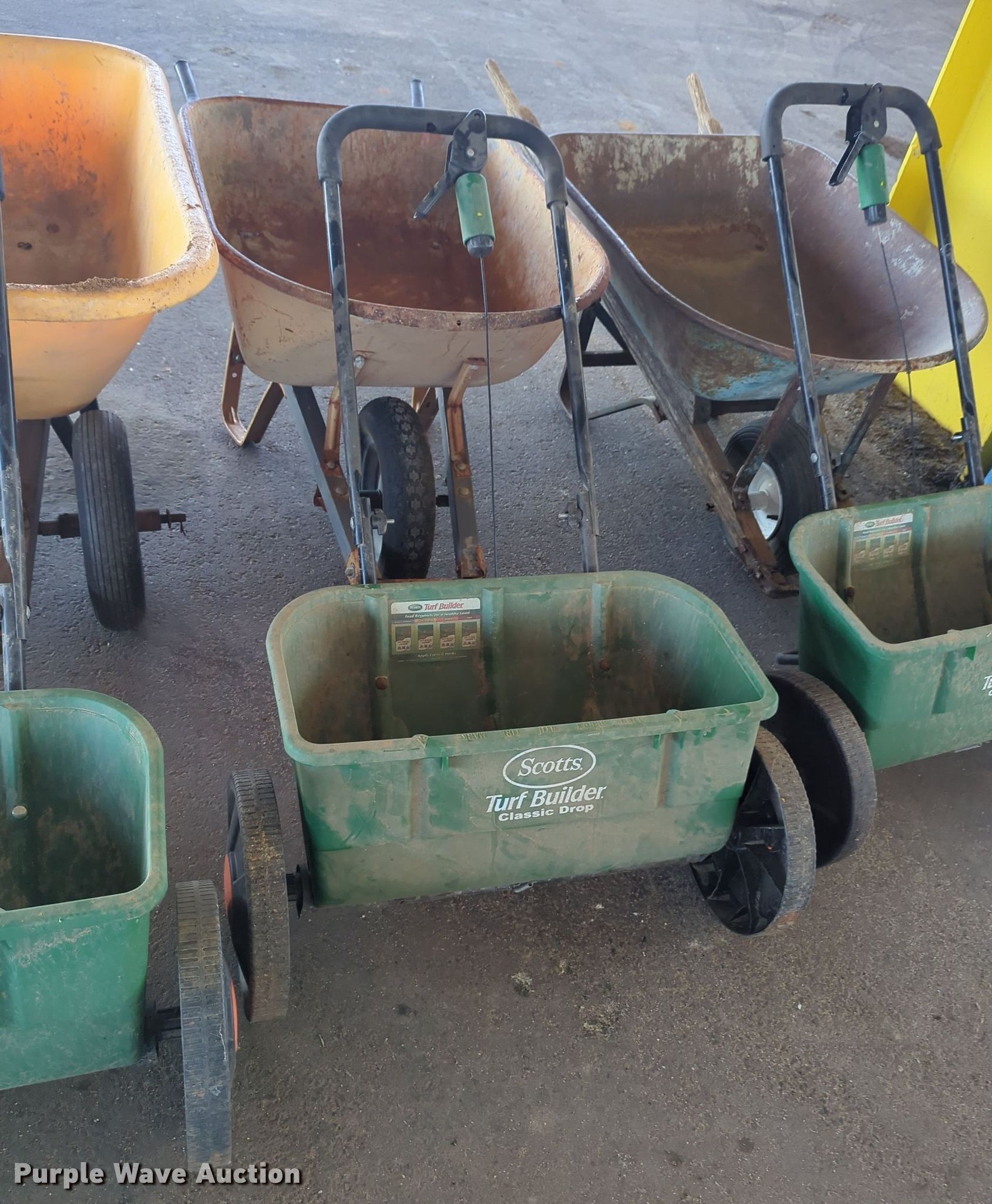 Lawn equipment. (3) Scotts Turf Builder spreaders, (3) wheel barrows, Shovels, Brooms, Rakes and more. Oklahoma County - Open inspection September 25. 7105 South Anderson Road. Oklahoma City, OK 73150