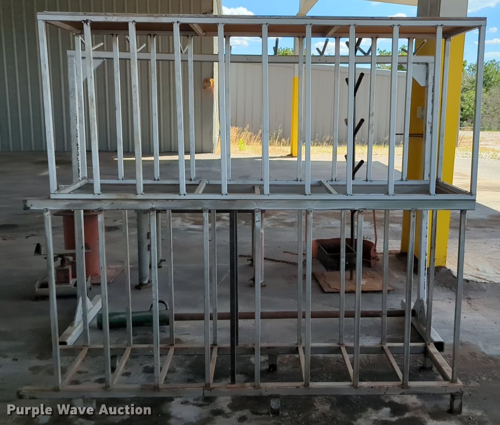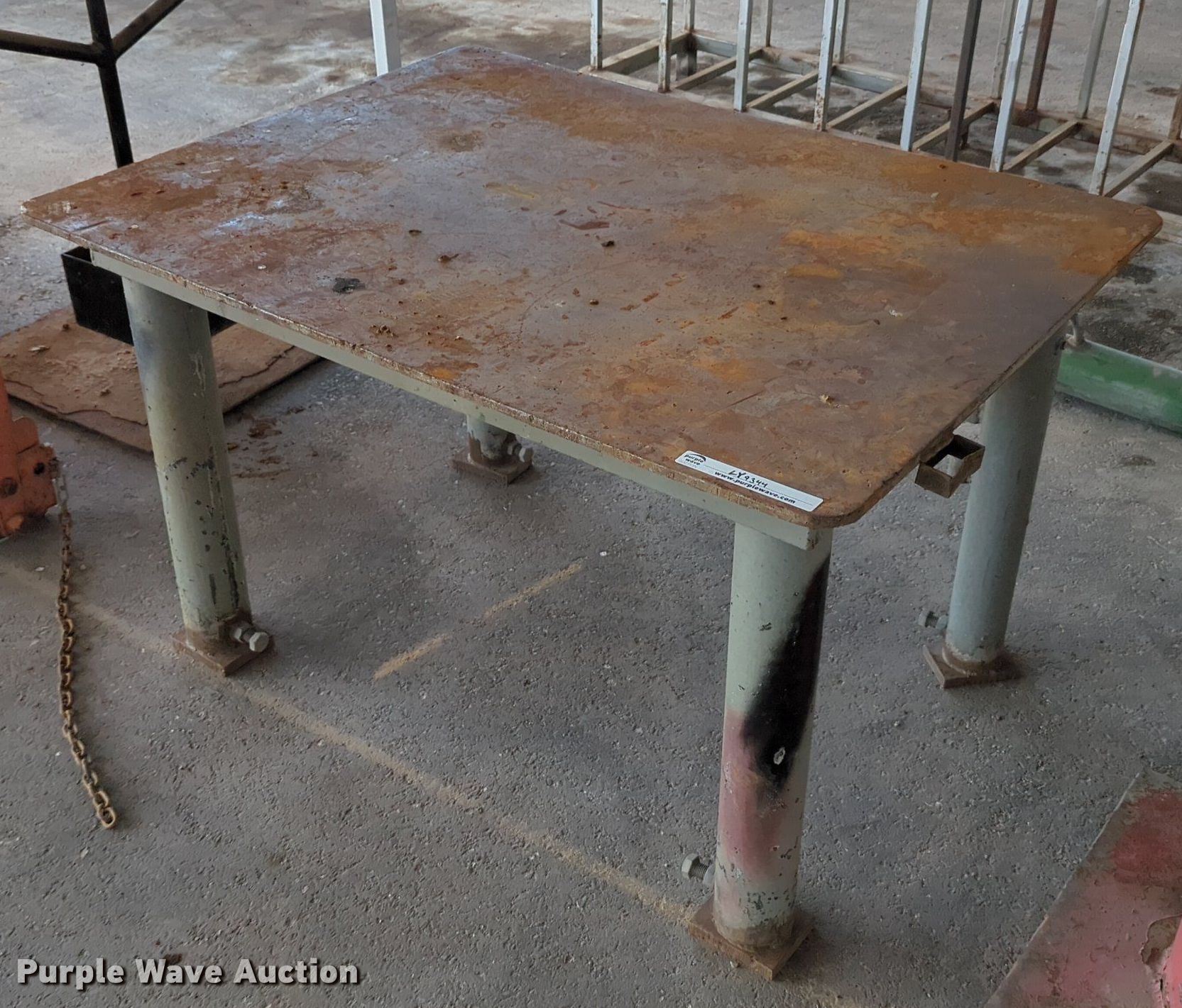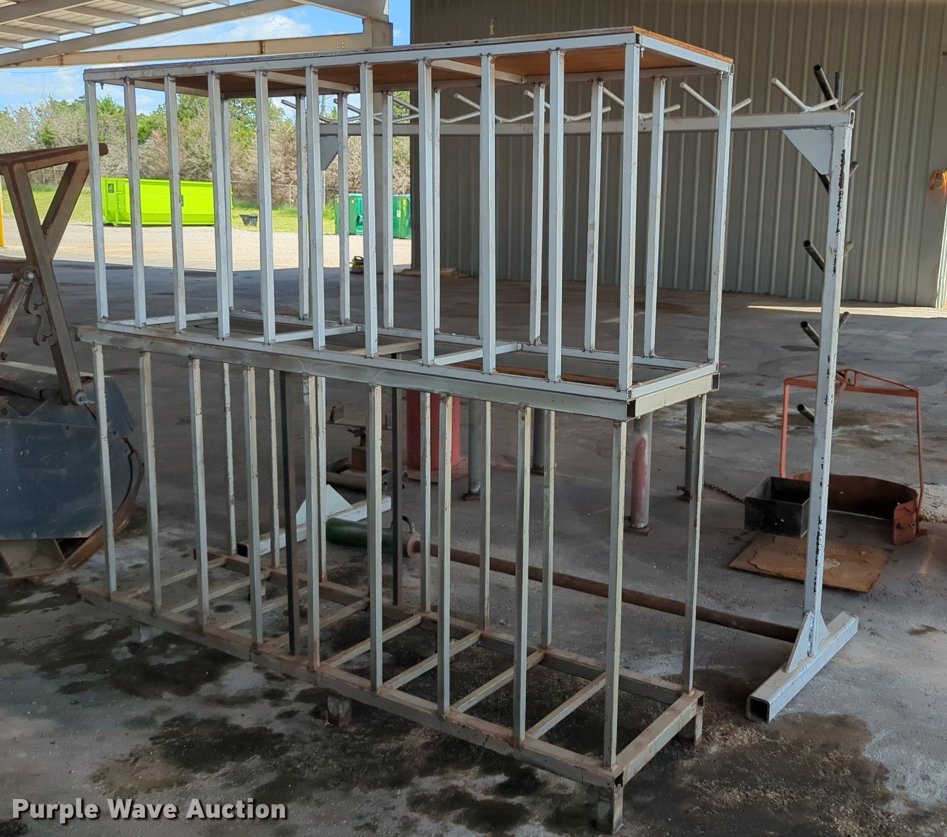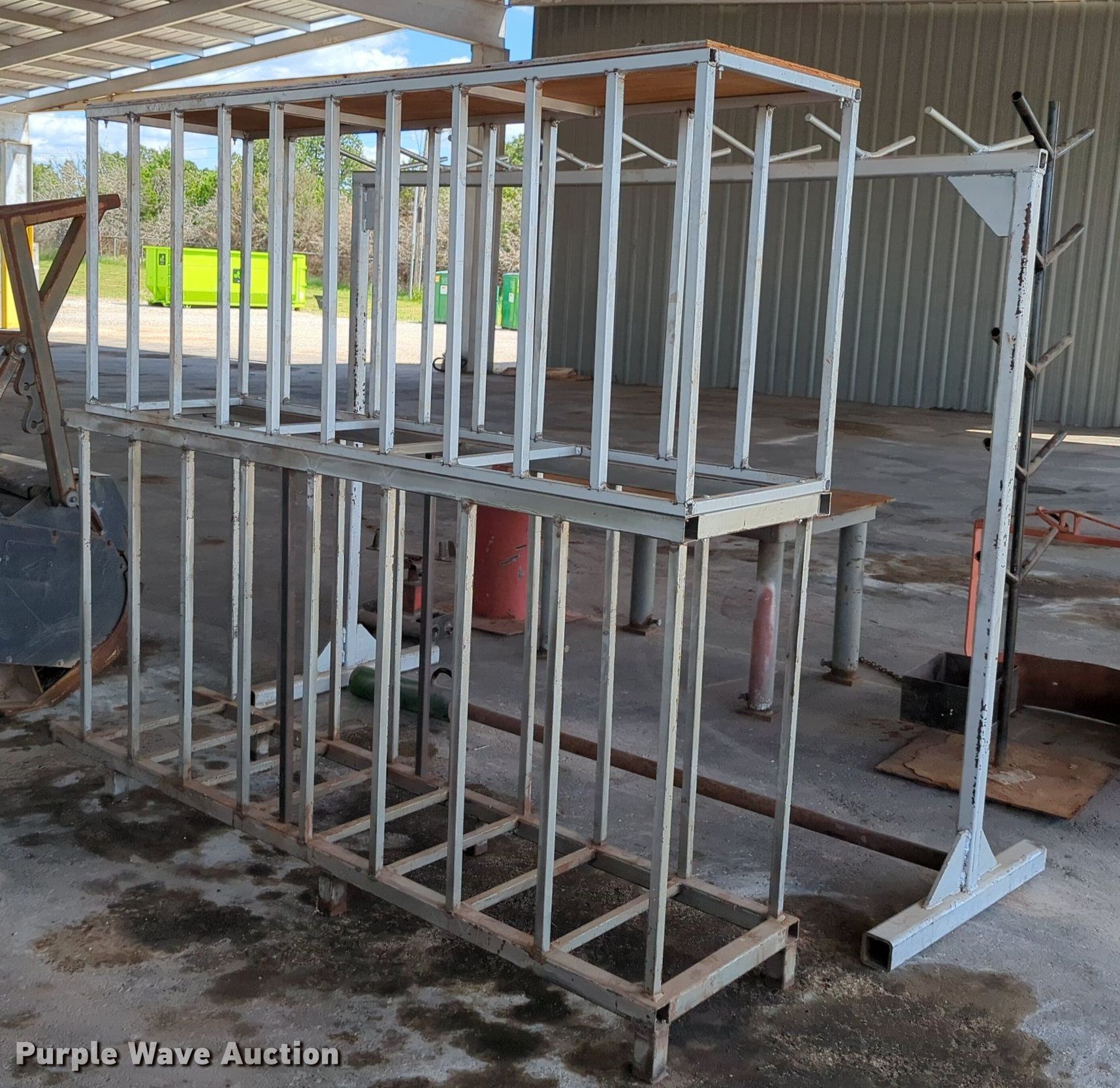 Purple Wave is selling a used Tools in Oklahoma. This item is a Tools with the following: Anvil, Shop built table, (3) shop built racks