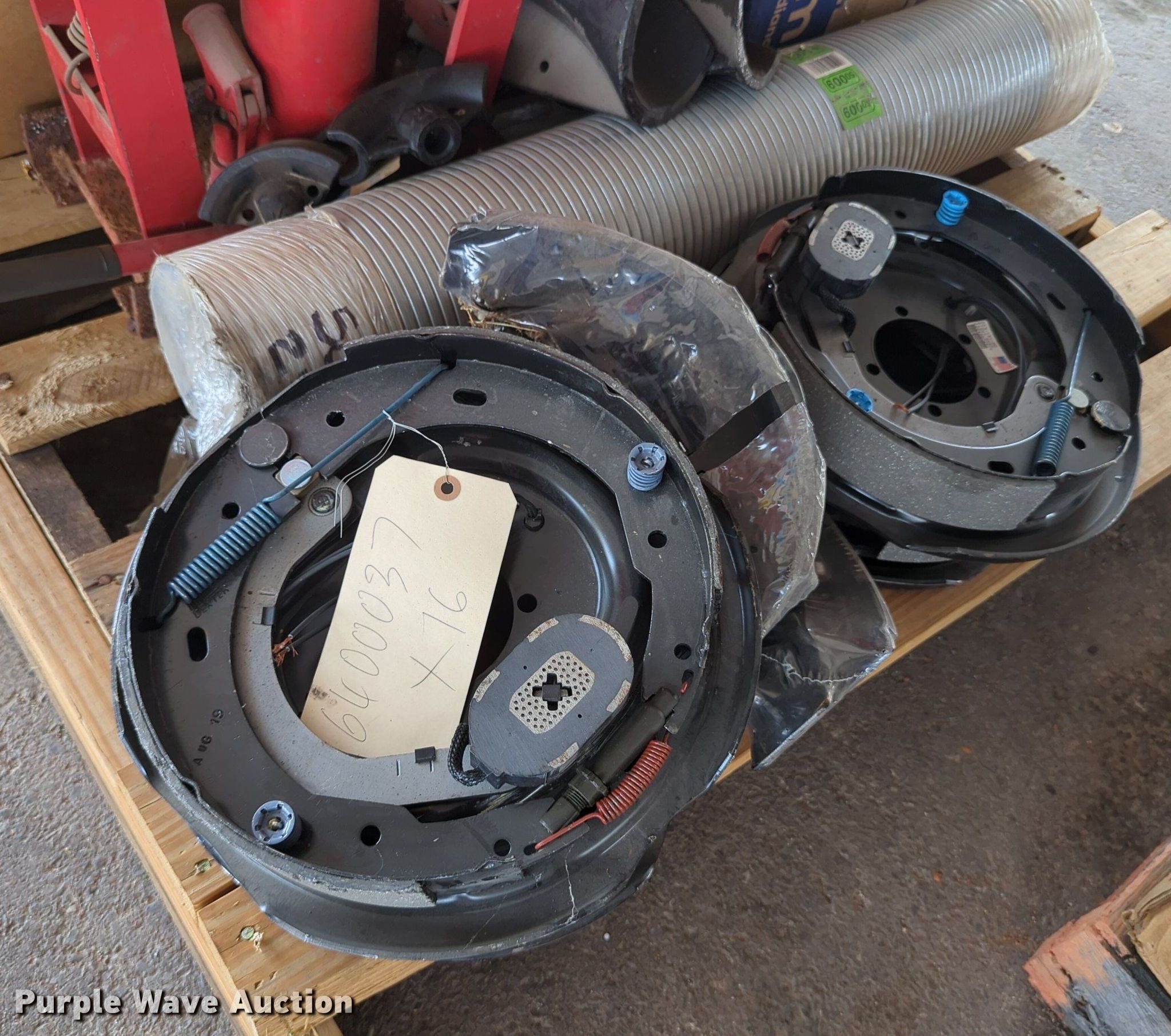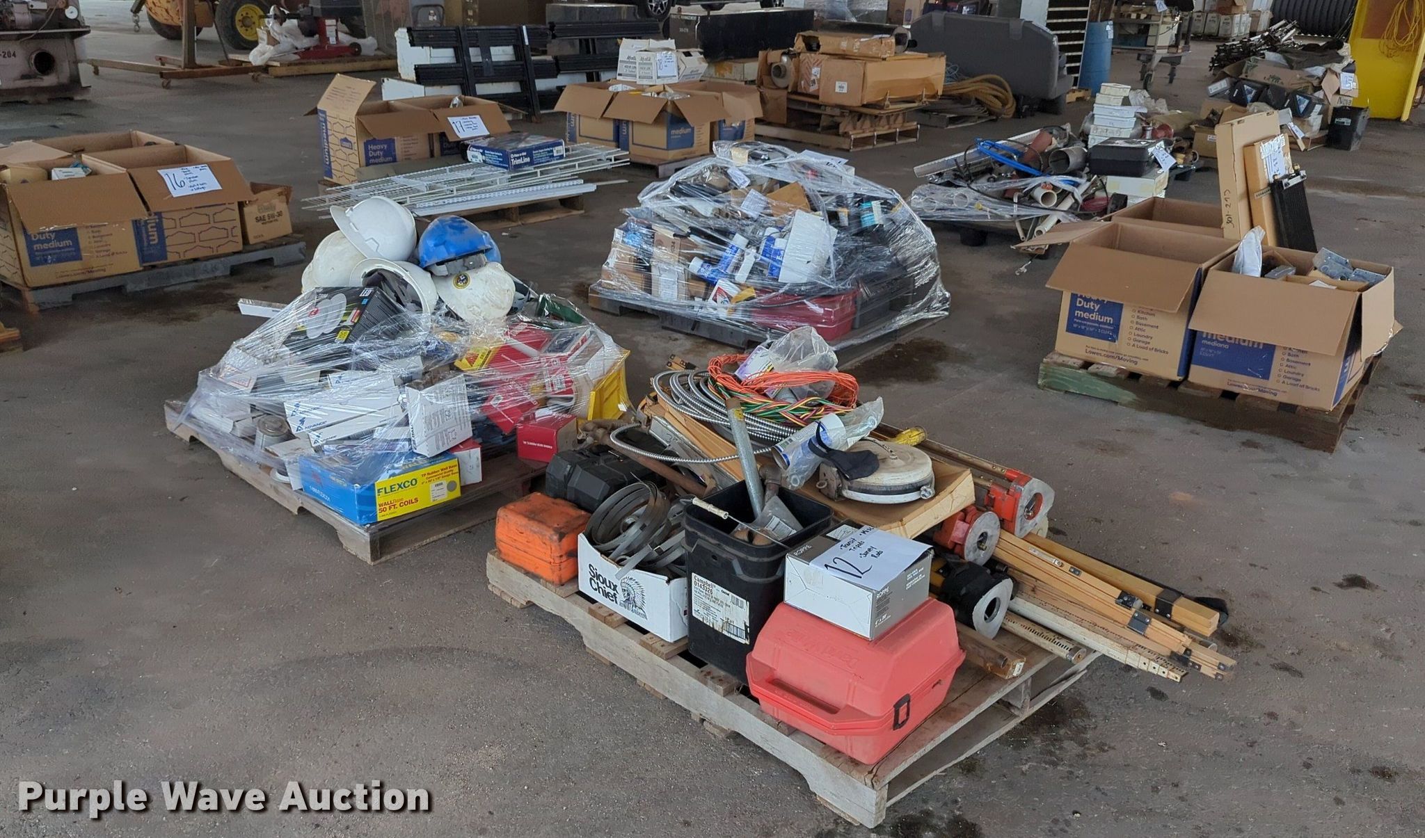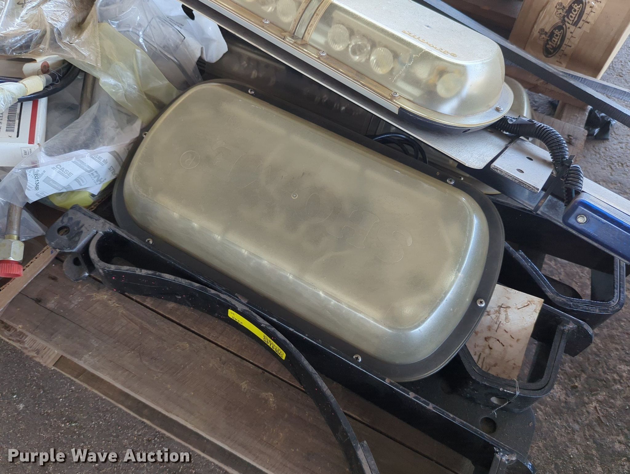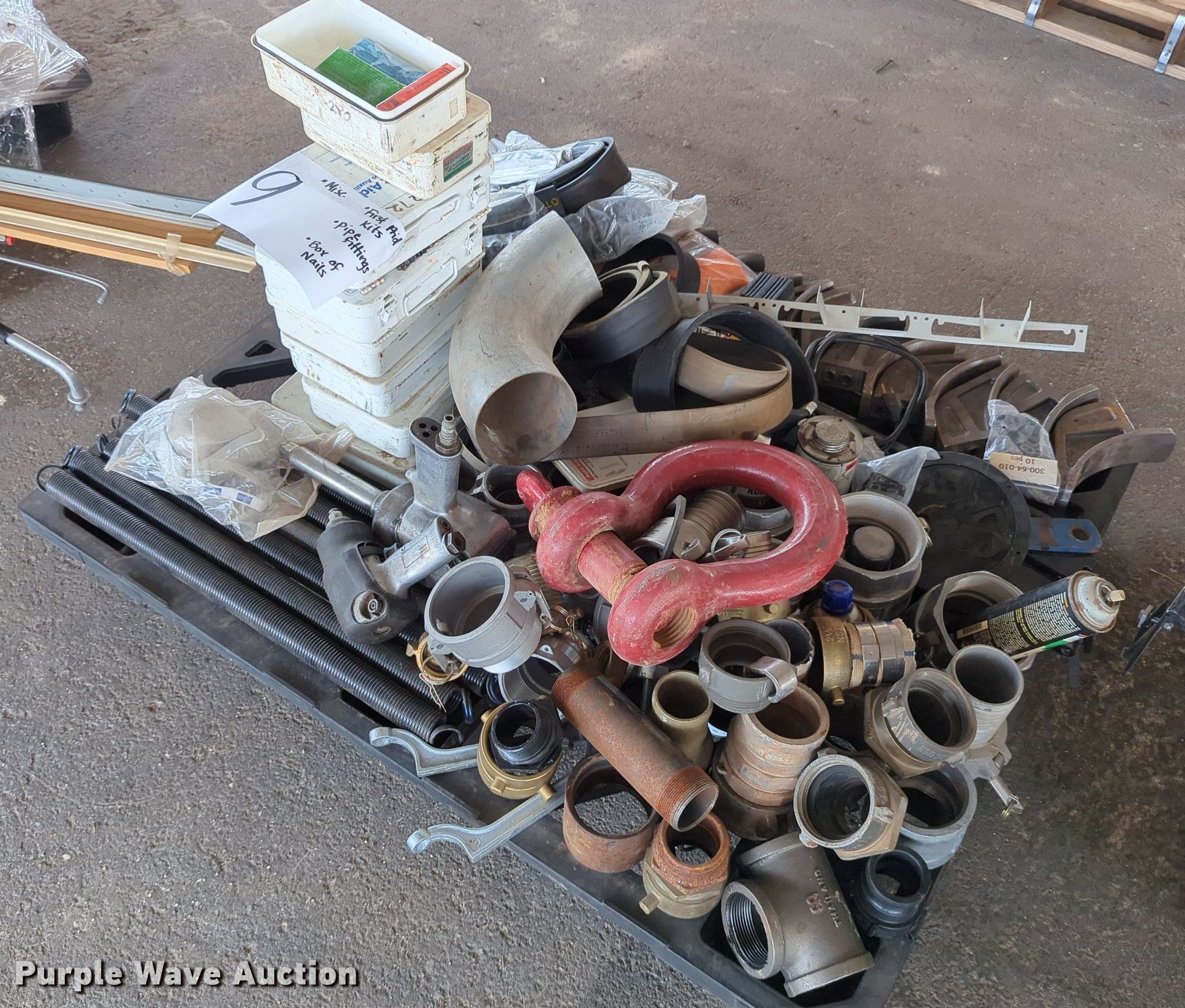 Purple Wave is selling a used Tools in Oklahoma. This item is a (16) pallets of tools with the following: Mack truck parts, Overhead safety lighting, Pipe fittings, Hoses, Fluid analysis kit, Exhaust parts, AC condensers, Pipe bender, Shelving and more