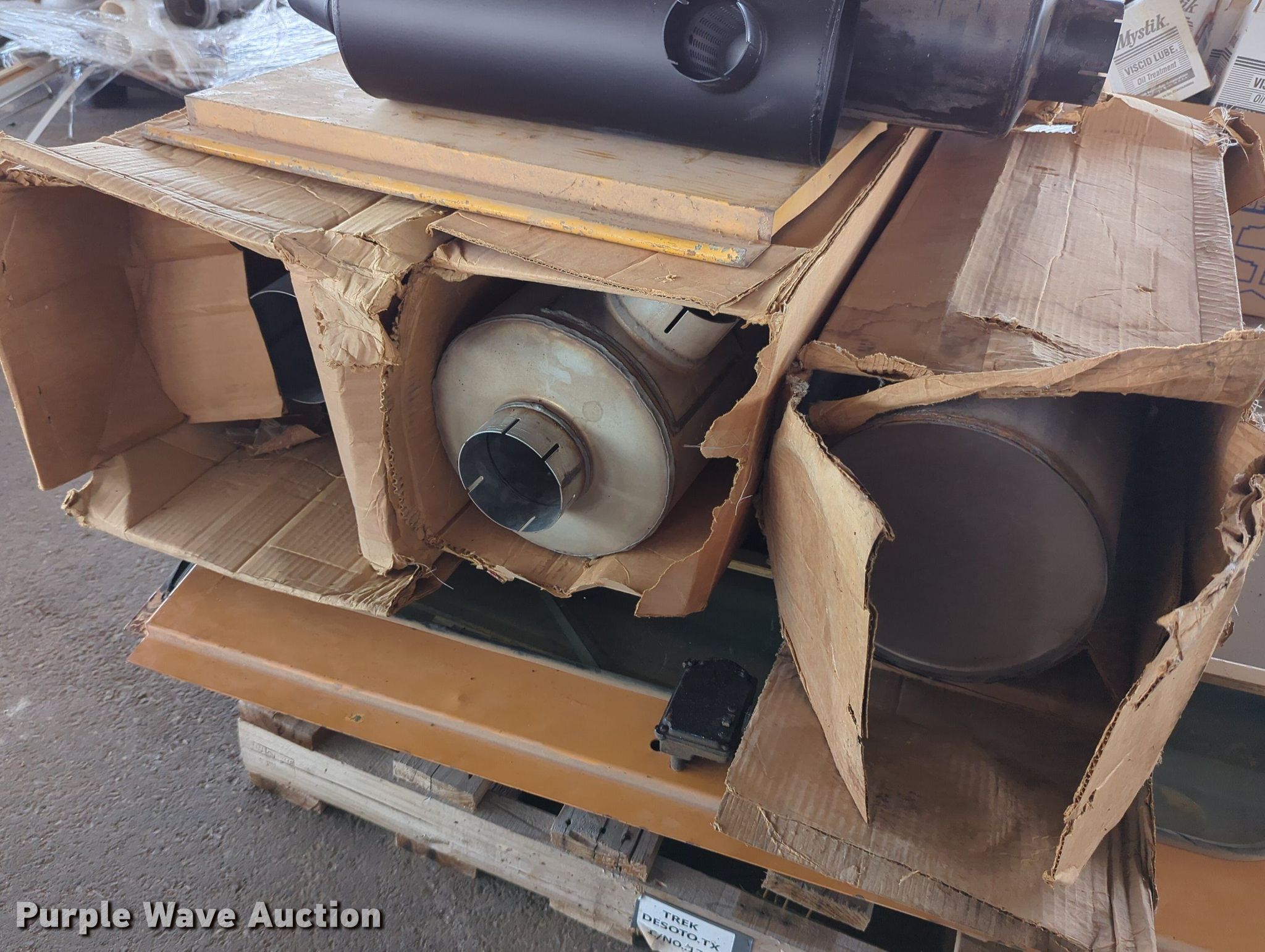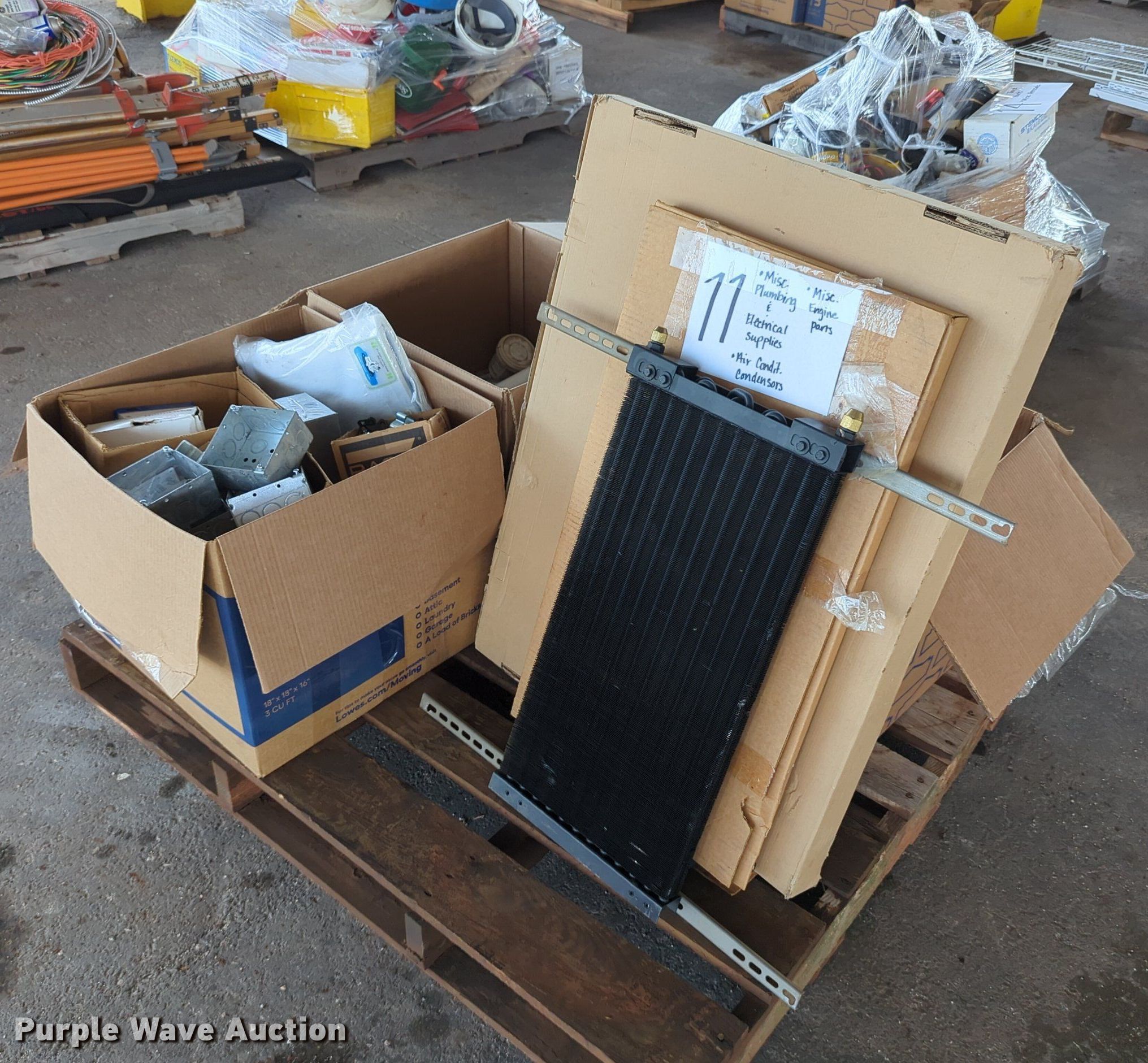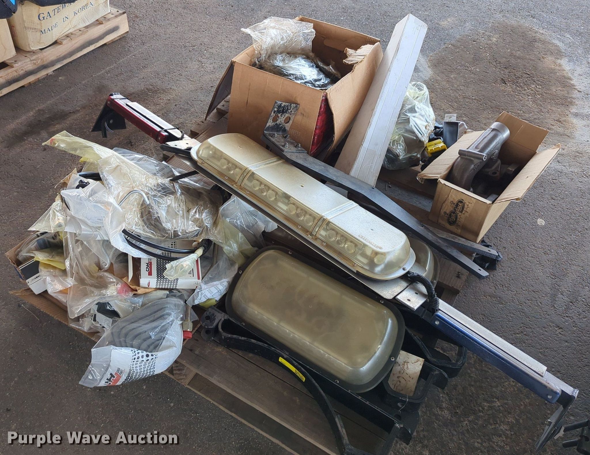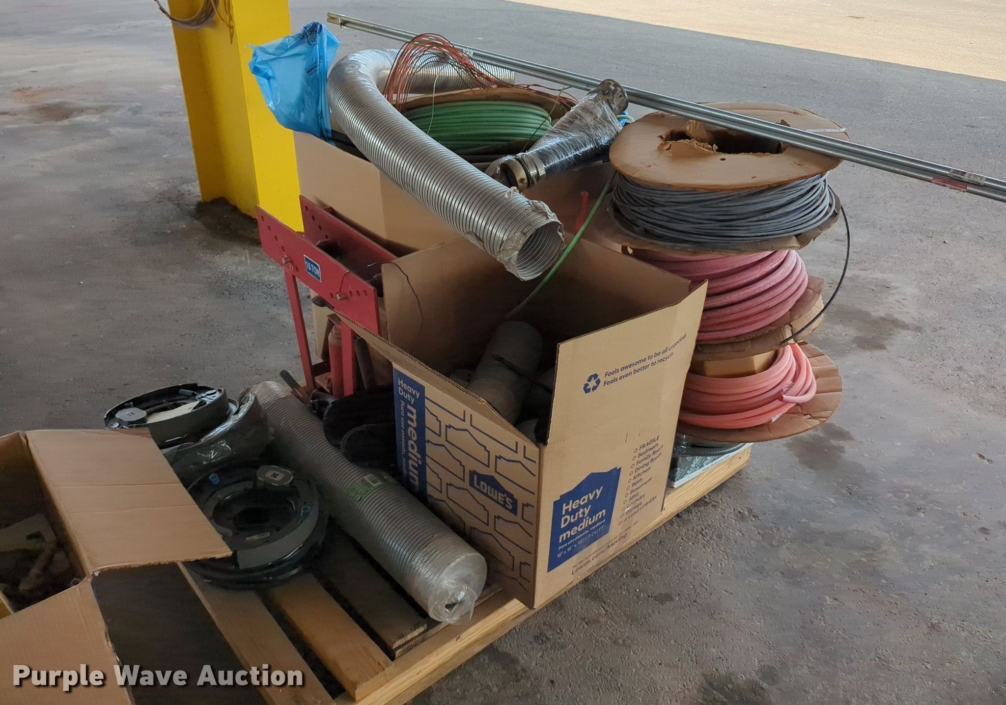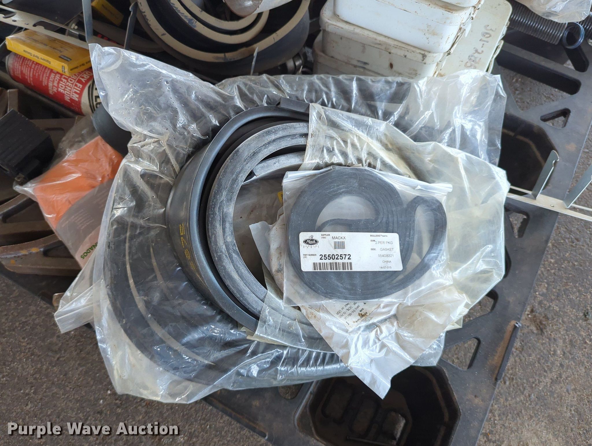 Purple Wave is selling a used Tools in Oklahoma. This item is a (16) pallets of tools with the following: Mack truck parts, Overhead safety lighting, Pipe fittings, Hoses, Fluid analysis kit, Exhaust parts, AC condensers, Pipe bender, Shelving and more