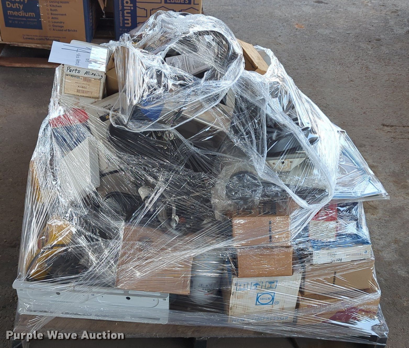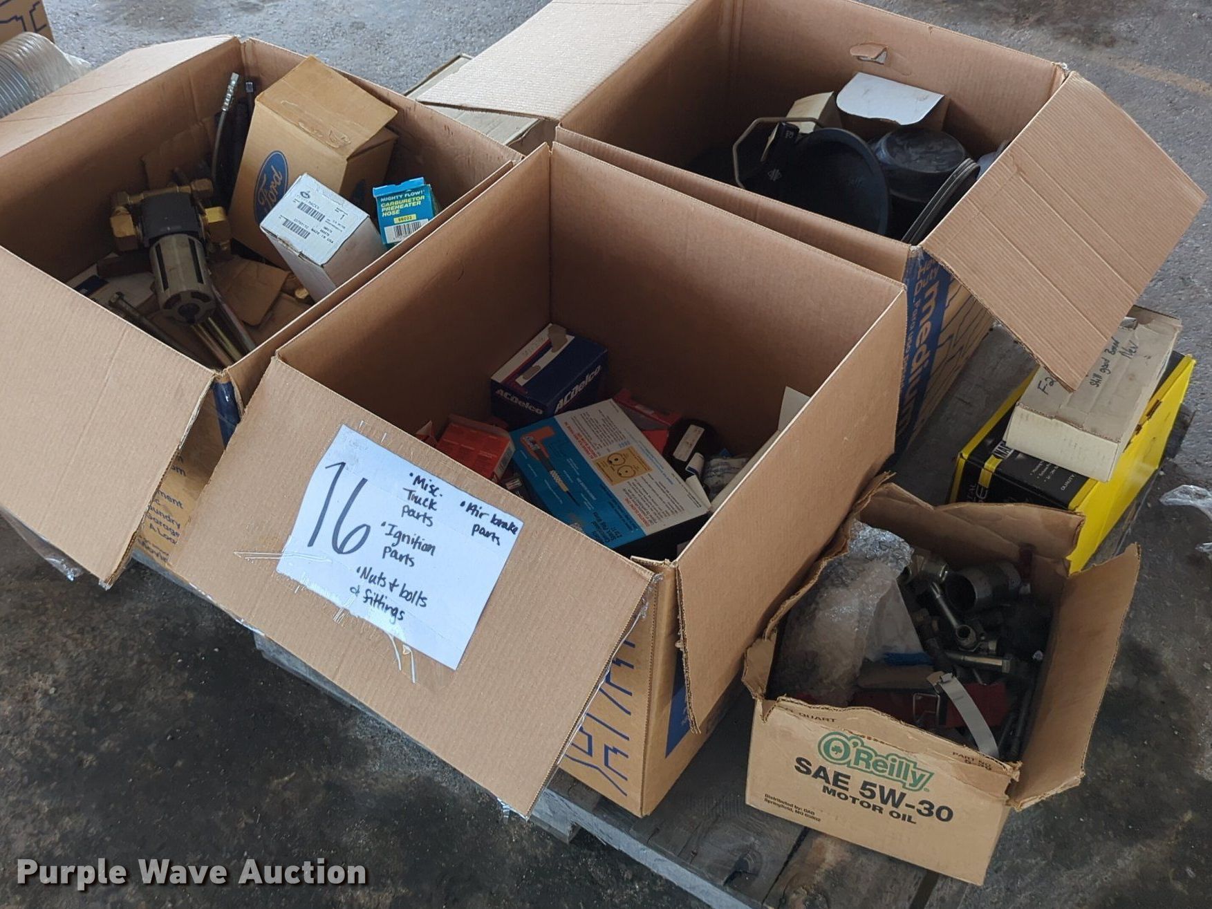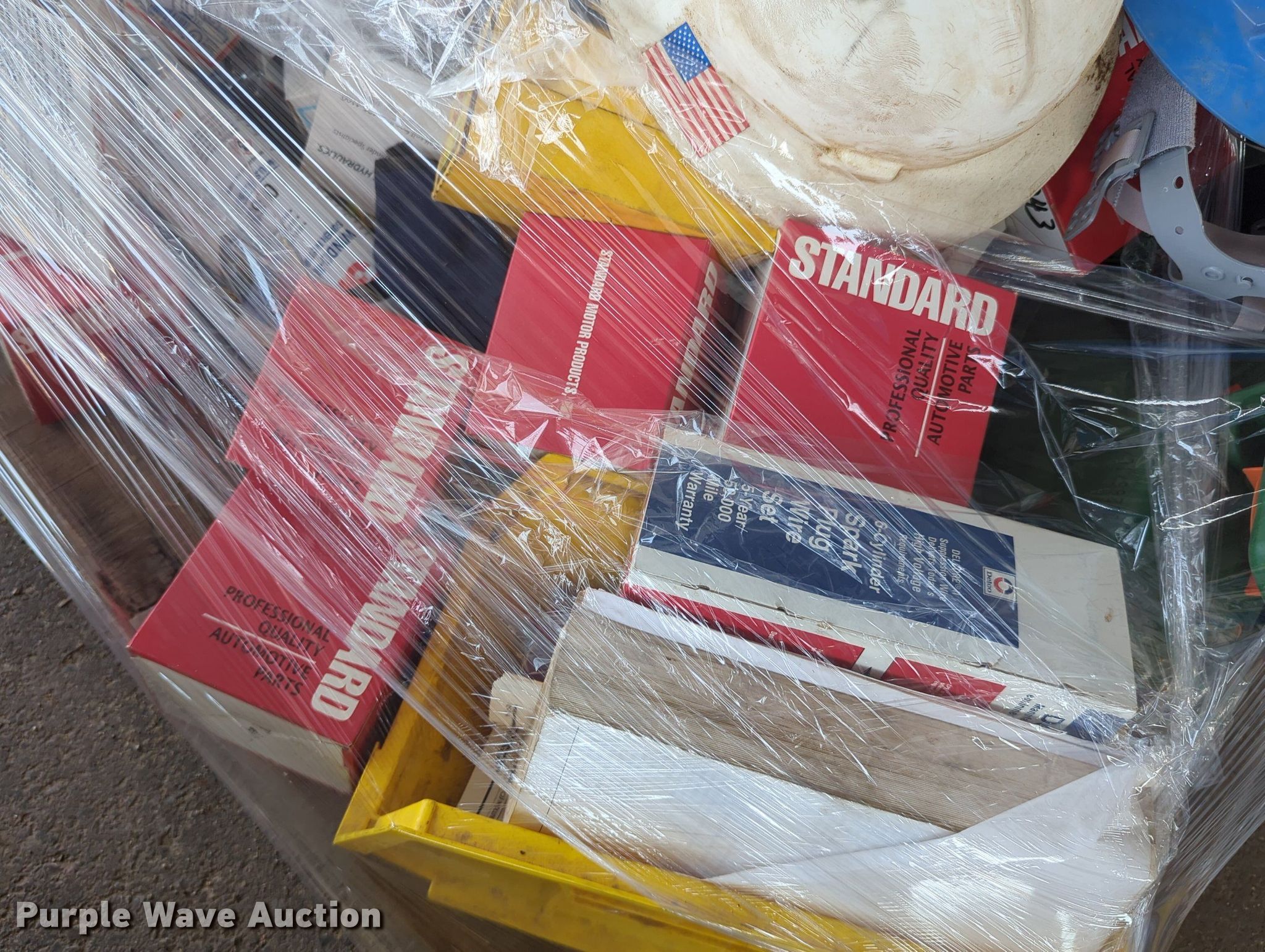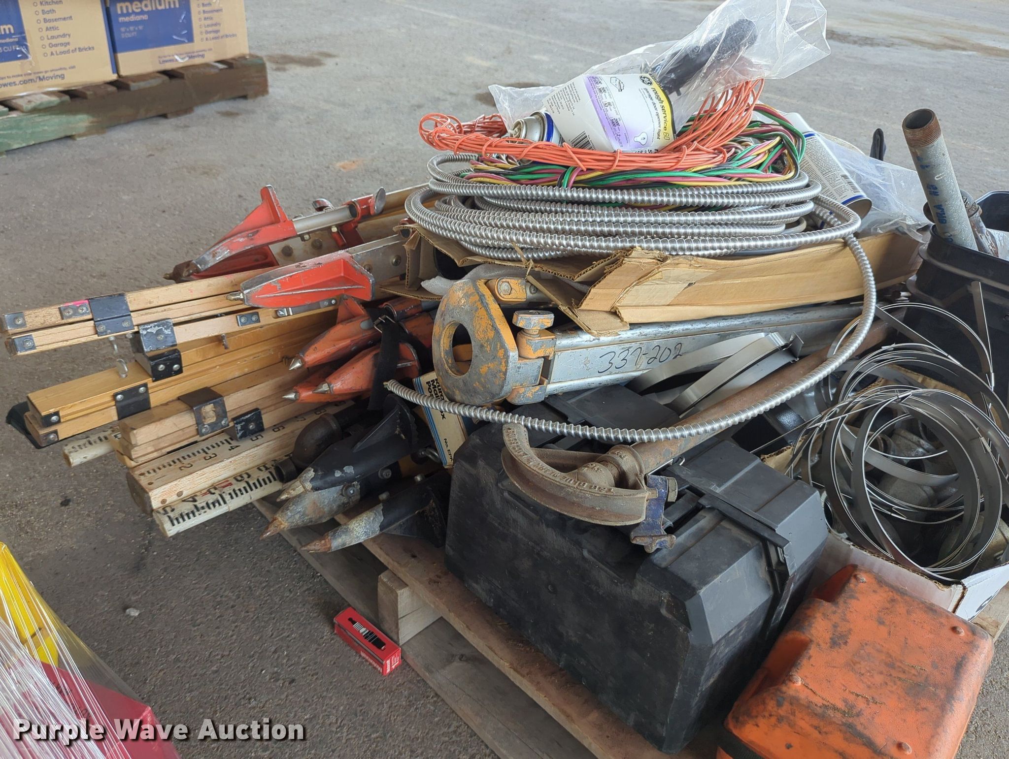 Purple Wave is selling a used Tools in Oklahoma. This item is a (16) pallets of tools with the following: Mack truck parts, Overhead safety lighting, Pipe fittings, Hoses, Fluid analysis kit, Exhaust parts, AC condensers, Pipe bender, Shelving and more
