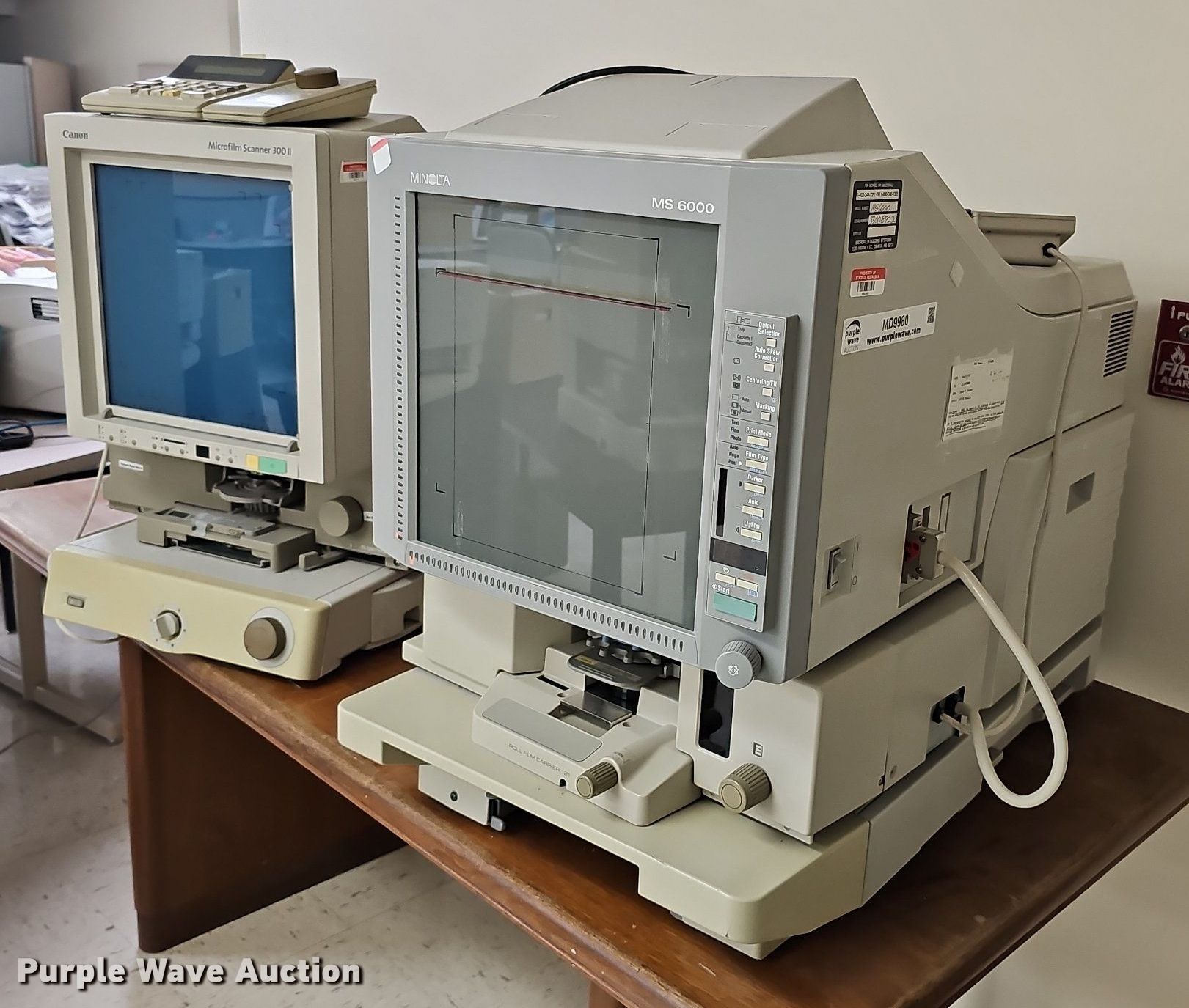 Purple Wave is selling a used Electronics in Nebraska. This item is a Electronics with the following: Canon 300 II microfilm scanner, Minolta MS 6000 microfilm reader