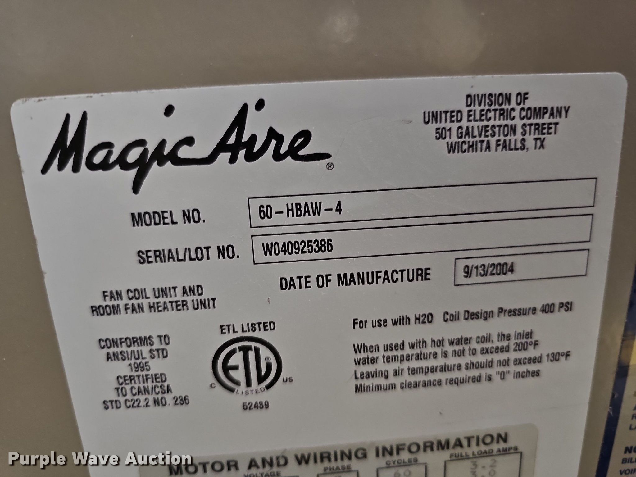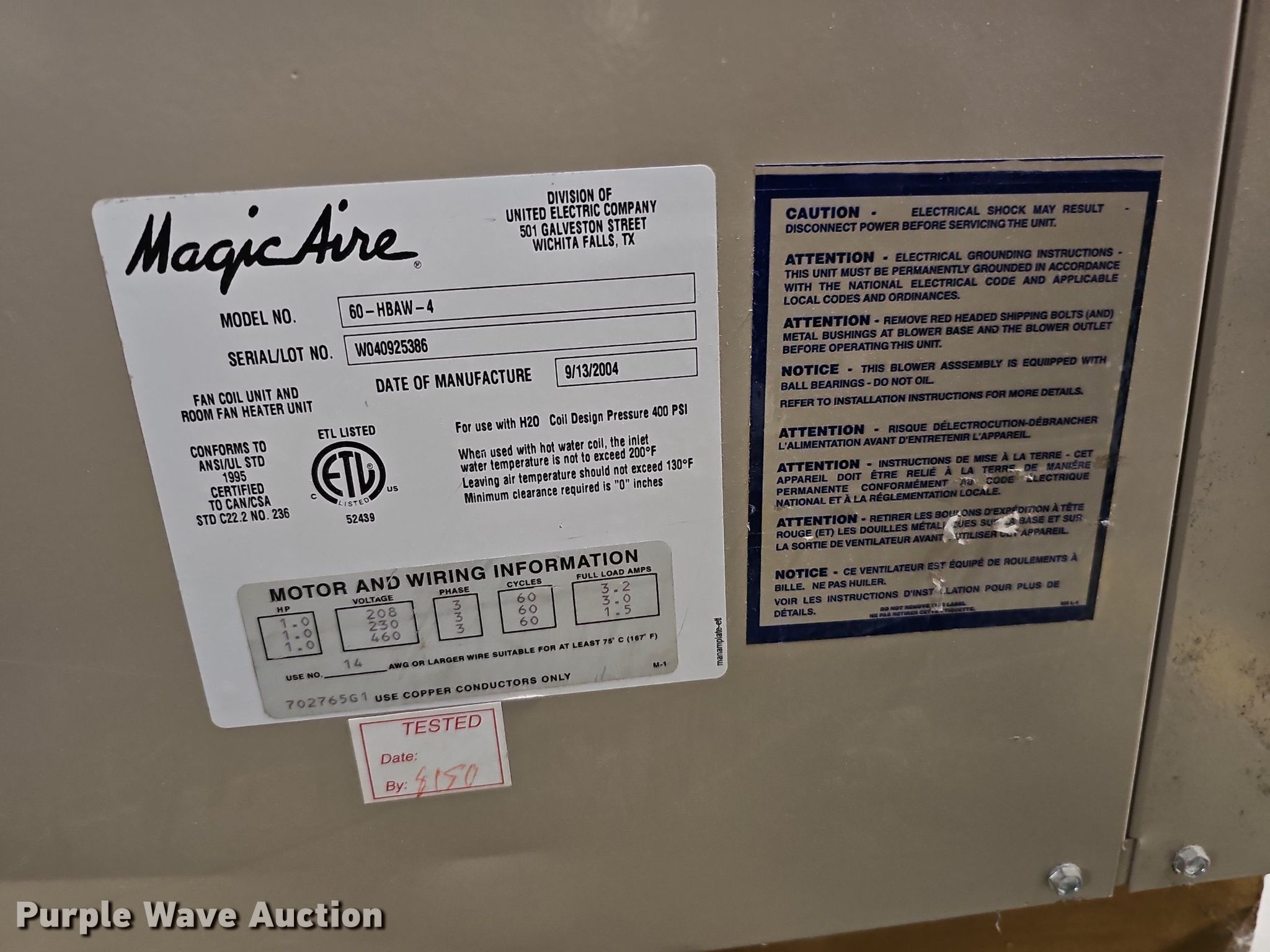 Take a look at this used 2004 MagicAire 60-HBAW-4 AC unit being sold on September 26th, 2023 in the SOLD! September 26 Government Auction made by MagicAire. Take a look at all of the item information below or take a look at similar auctions for Household Items.