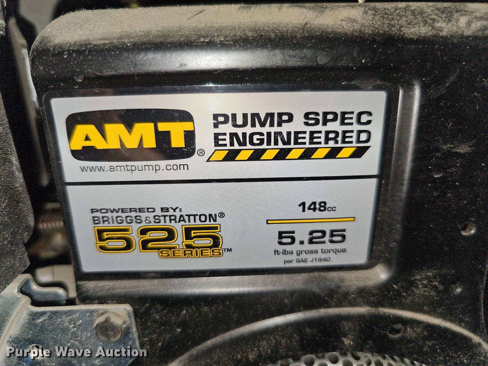 Purple Wave is selling a used Pump in Nebraska. This item is a AMT 525 Series pump with the following: Briggs & Stratton, Displacement: 148 cc, Cylinders: 1, Fuel type: Gas