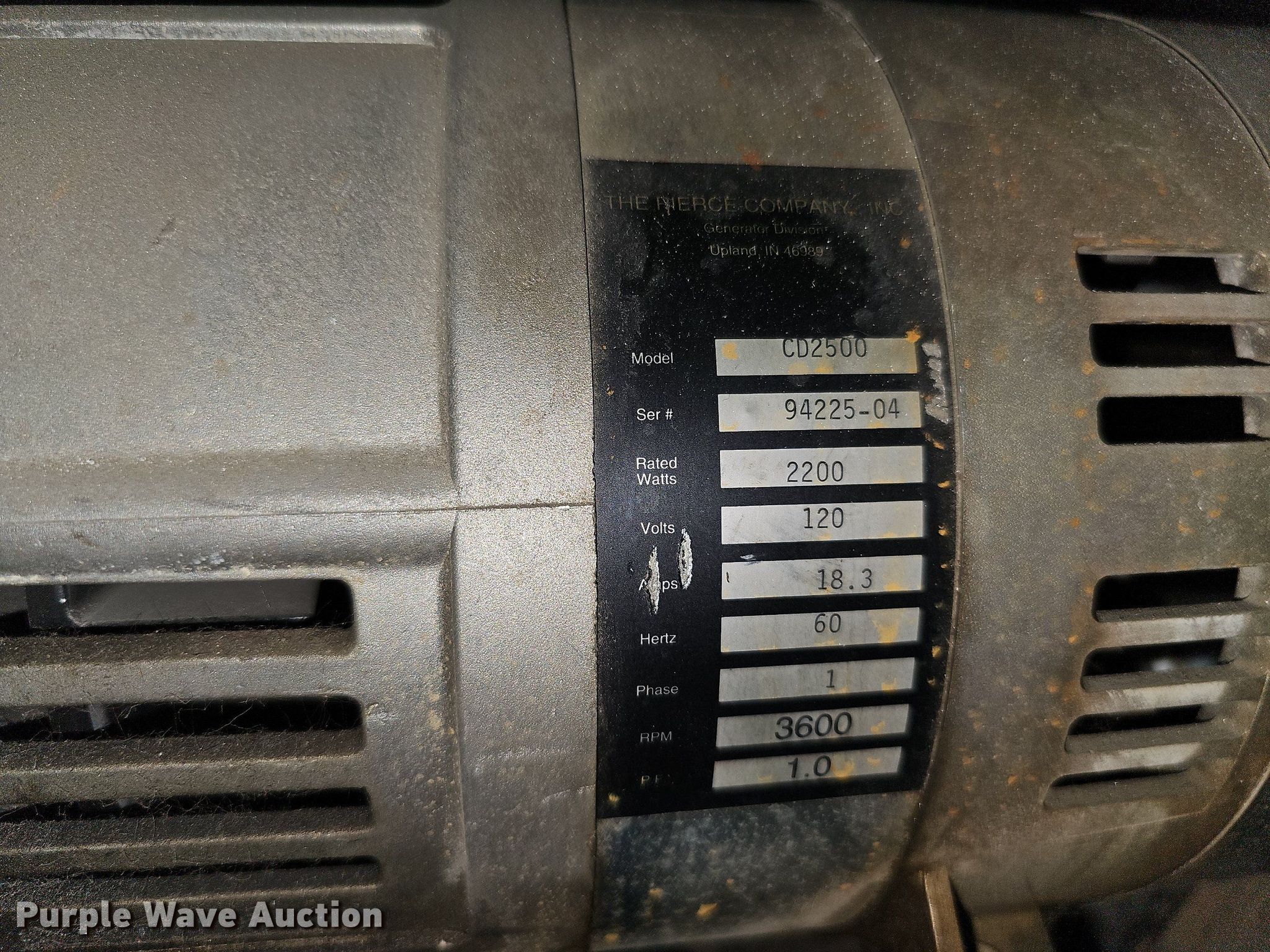 Winpower CD2500 generator. Engine. Briggs & Stratton 133432, Cylinders: 1, Fuel type: Gas. Features Generator Pierce Company CD2500, Watts: 2,200, Phase: Single, Fuel tank. Notes Unknown operating condition. City of Lincoln LTU / MSC. 901 West Bond Street. Lincoln, NE 68521
