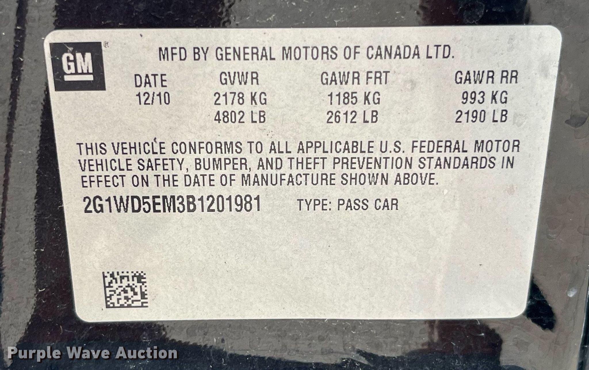 Purple Wave is selling a used Passenger Vehicle in Missouri. This item is a 2011 Chevrolet Impala with the following: Miles: 86,943 on odometer, VIN: 2G1WD5EM3B1201981