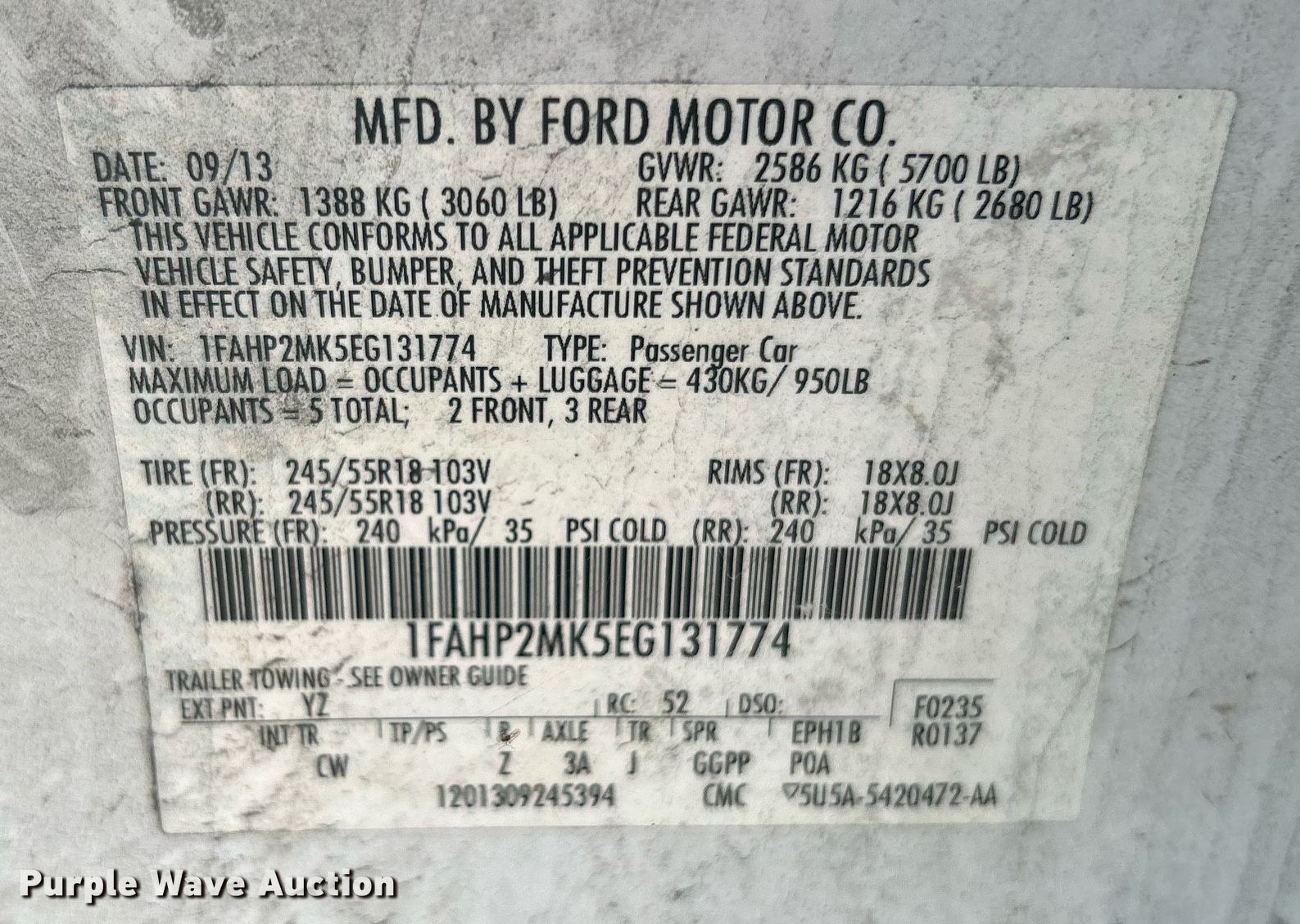 2014 Ford Taurus Police Interceptor. Miles: 134,667 on odometer, VIN: 1FAHP2MK5EG131774, Unit #: 514. Engine Displacement: 3.7L V6 DOHC, Cylinders: 6, Fuel type: Gas. Transmission Automatic. Interior AC, Heat, Seat: Power driver, Power windows, Power locks, Cruise control. Tires Size: 245/55R18. Notes Backseat missing. Oklahoma title. Title distribution may be delayed up to 30 days from verification of funds. Seller is a government entity who will be assigning and distributing the title. Please contact the seller for distribution questions. City of Tulsa, OK. 208 North Trenton Avenue. Tulsa, OK 74120