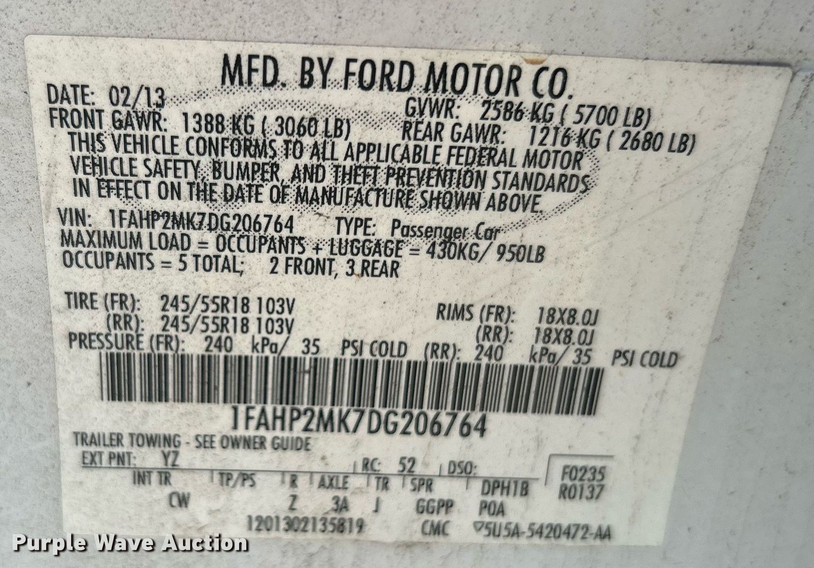 - VIN: 1FAHP2MK7DG206764