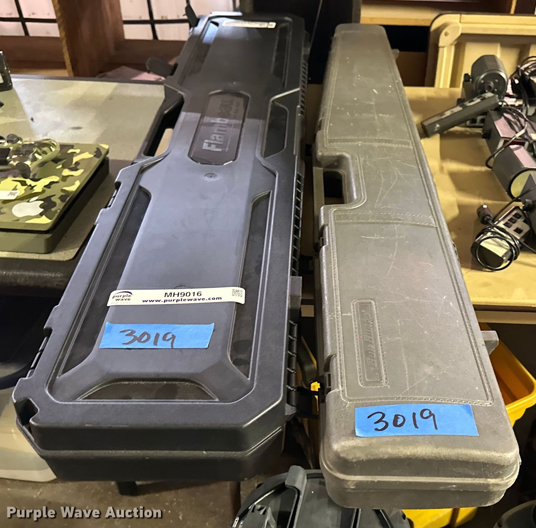 Purple Wave is selling a used Sporting Goods in Oklahoma. This item is a (2) gun cases with the following: Gun Guard, Flambeau Express Plus, Unit #: 3019