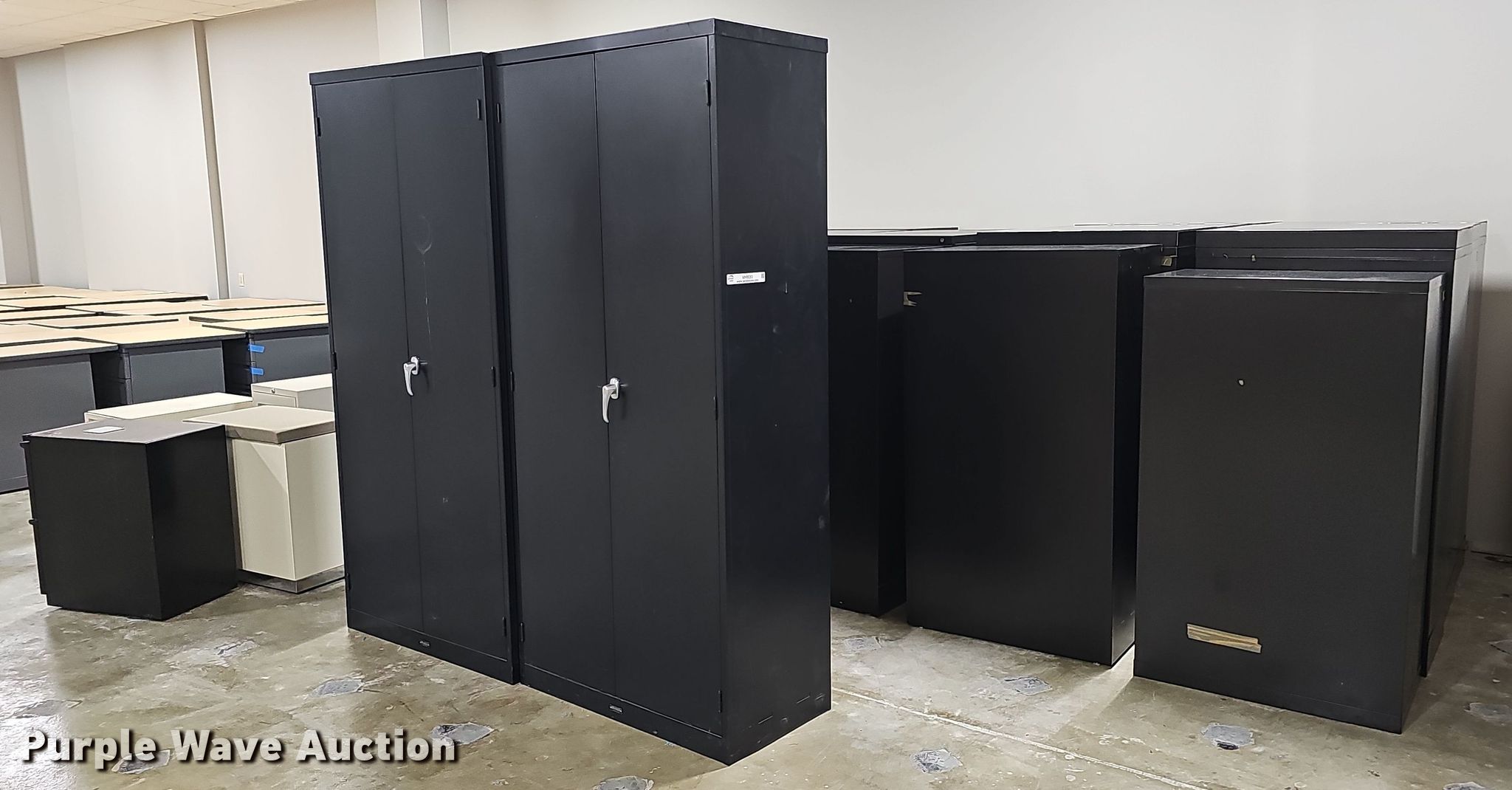 Purple Wave is selling a used Furniture in Nebraska. This item is a Furniture with the following: (2) metal cabinets, 36"W x 18"D x 78"H, (4) file cabinets, 15"W x 24"D, 24"H to 28"H, (23) four drawer metal cabinets, 30"W to 42"W, 19"D to 20"D, 53"H to 56"H, Office cubicle, 48"L x 48"W x 29"H, 32"H desk top
