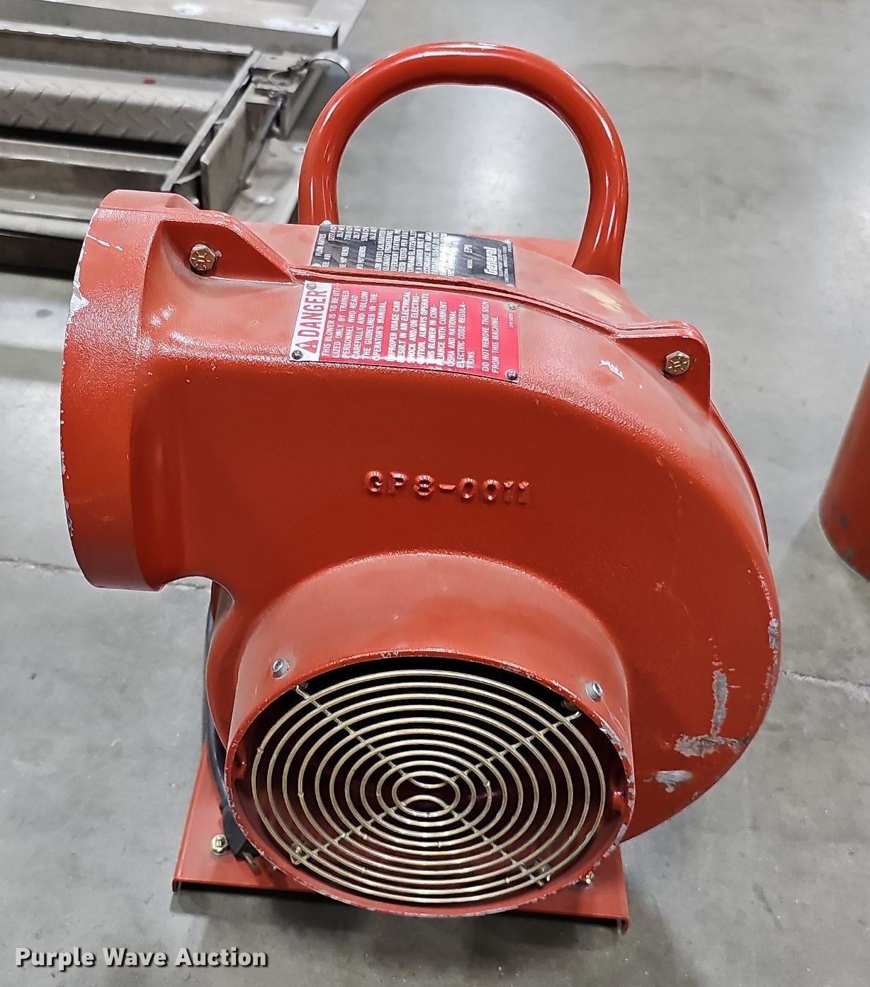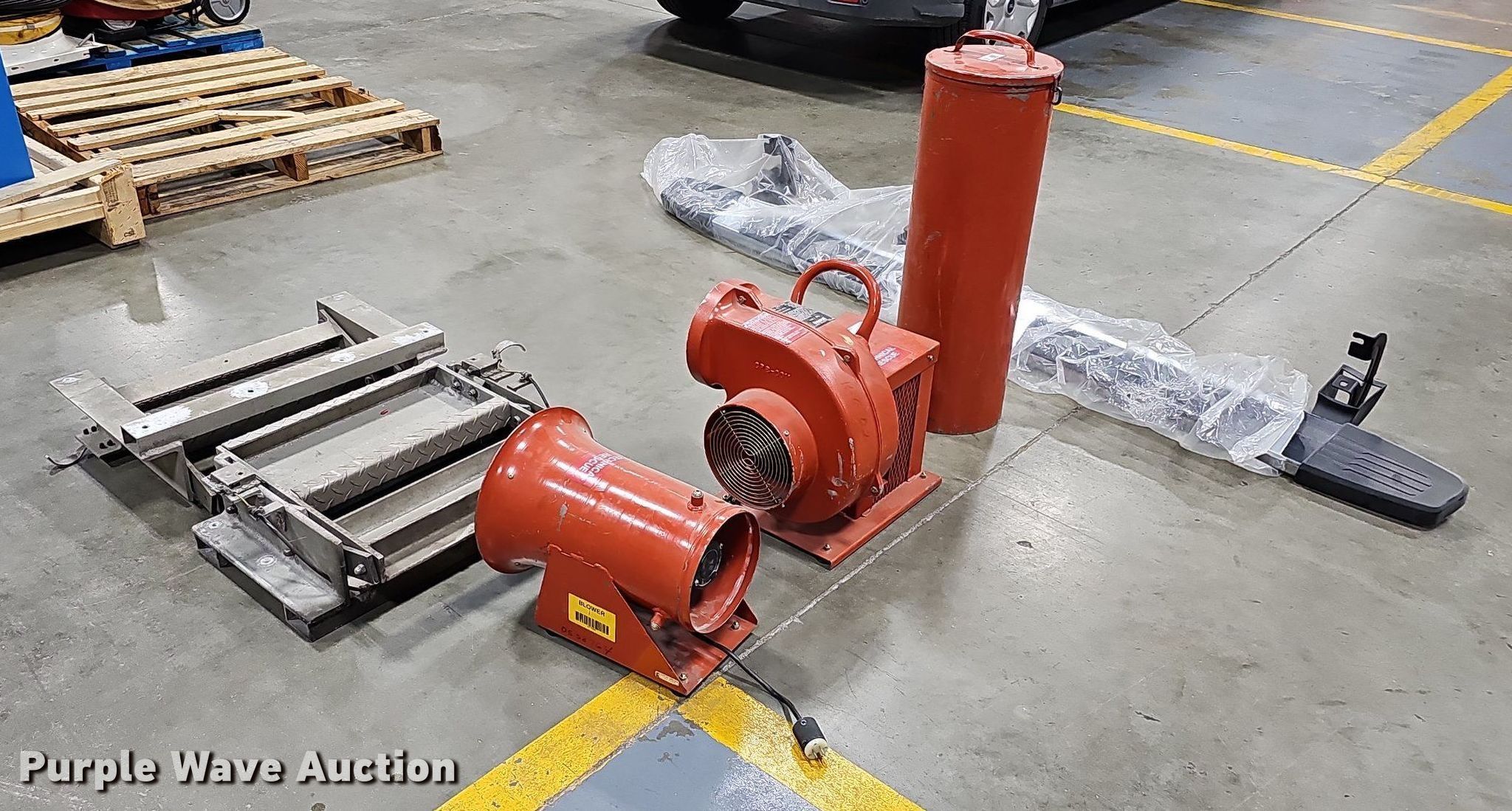 Purple Wave is selling a used Tools in Nebraska. This item is a Fire equipment with the following: General EP8AC25 blower, 115V, Serial: 25694, General EP8 blower, General hose and canister, 10"D x 30"H, 90"L running board, (2) 26"L x 15"W steps
