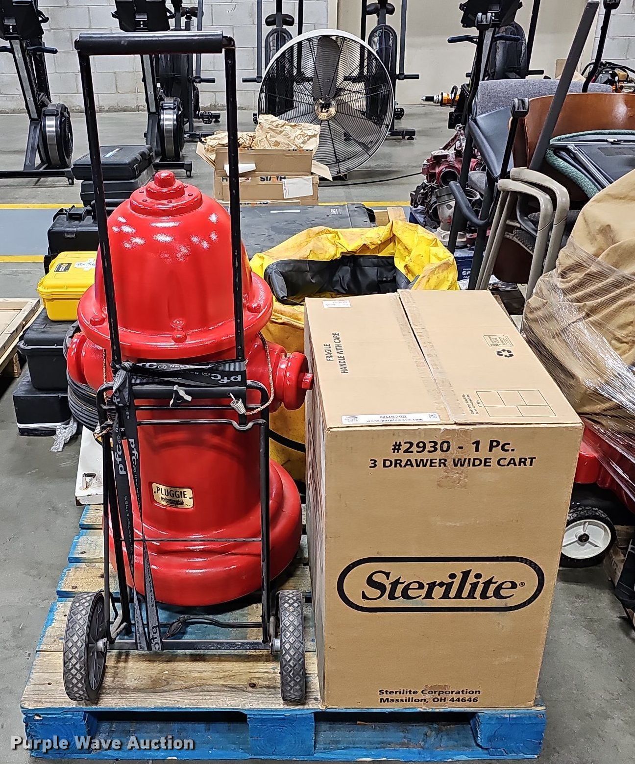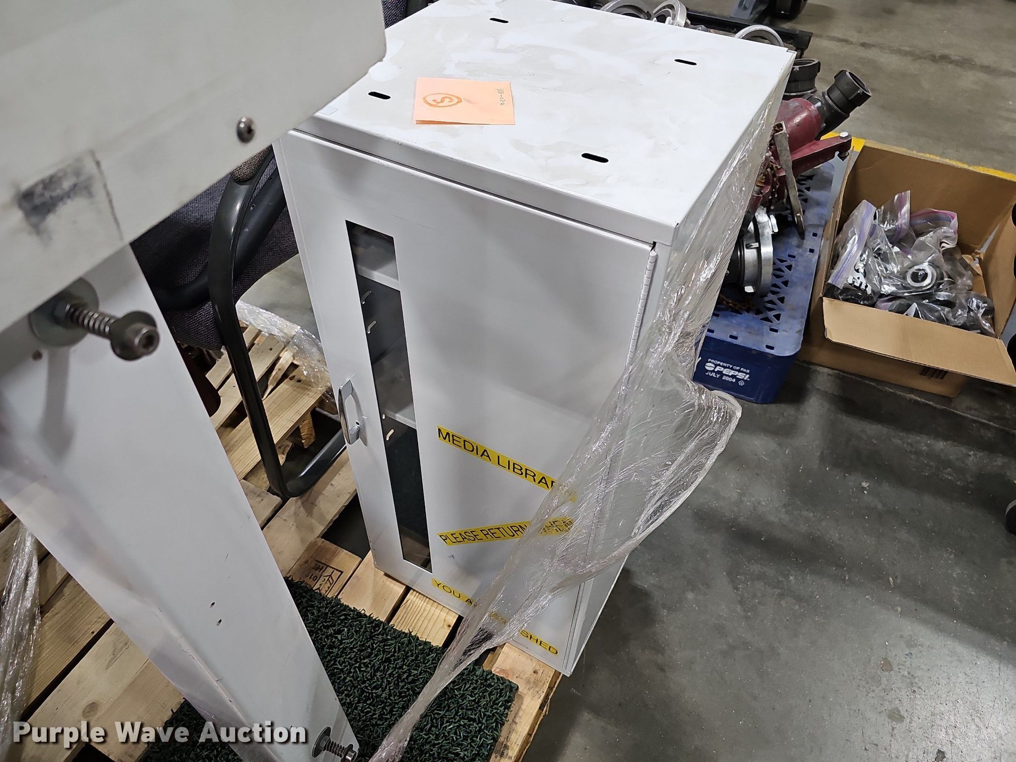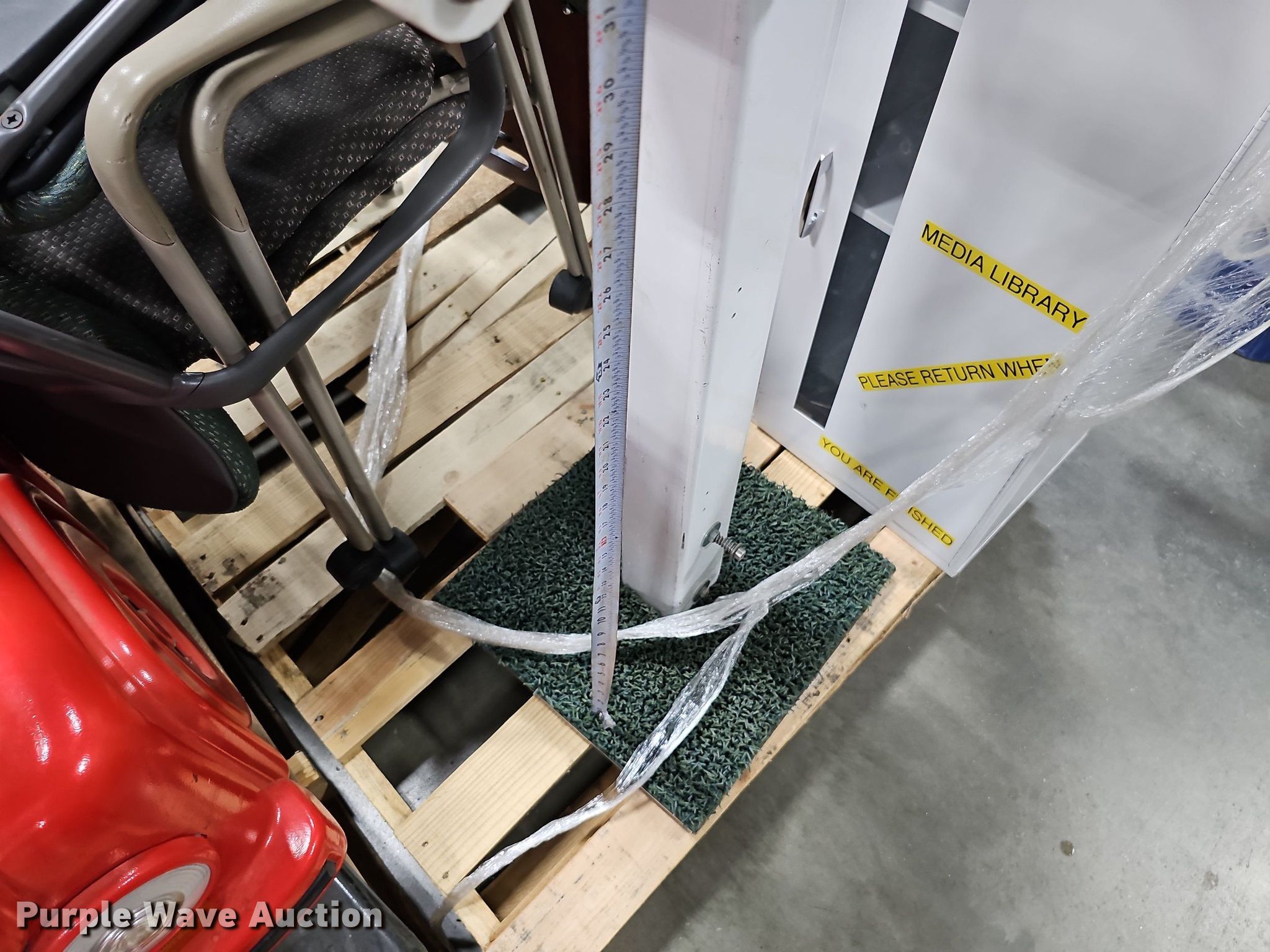 Purple Wave is selling a used Office Supplies and Equip. in Nebraska. This item is a Office supplies and equipment with the following: Sterilite storage tote, 22"W x 15.25"D x 25.5"H, Pluggie Robotronics, Remote control, Case, Patches and Pumper Robotronics, Remote control, Case, Freddie Robotronics, Remote control, Case, (5) chairs, Mailbox, Metal cabinet, 16" diameter tube, 20" diameter tube