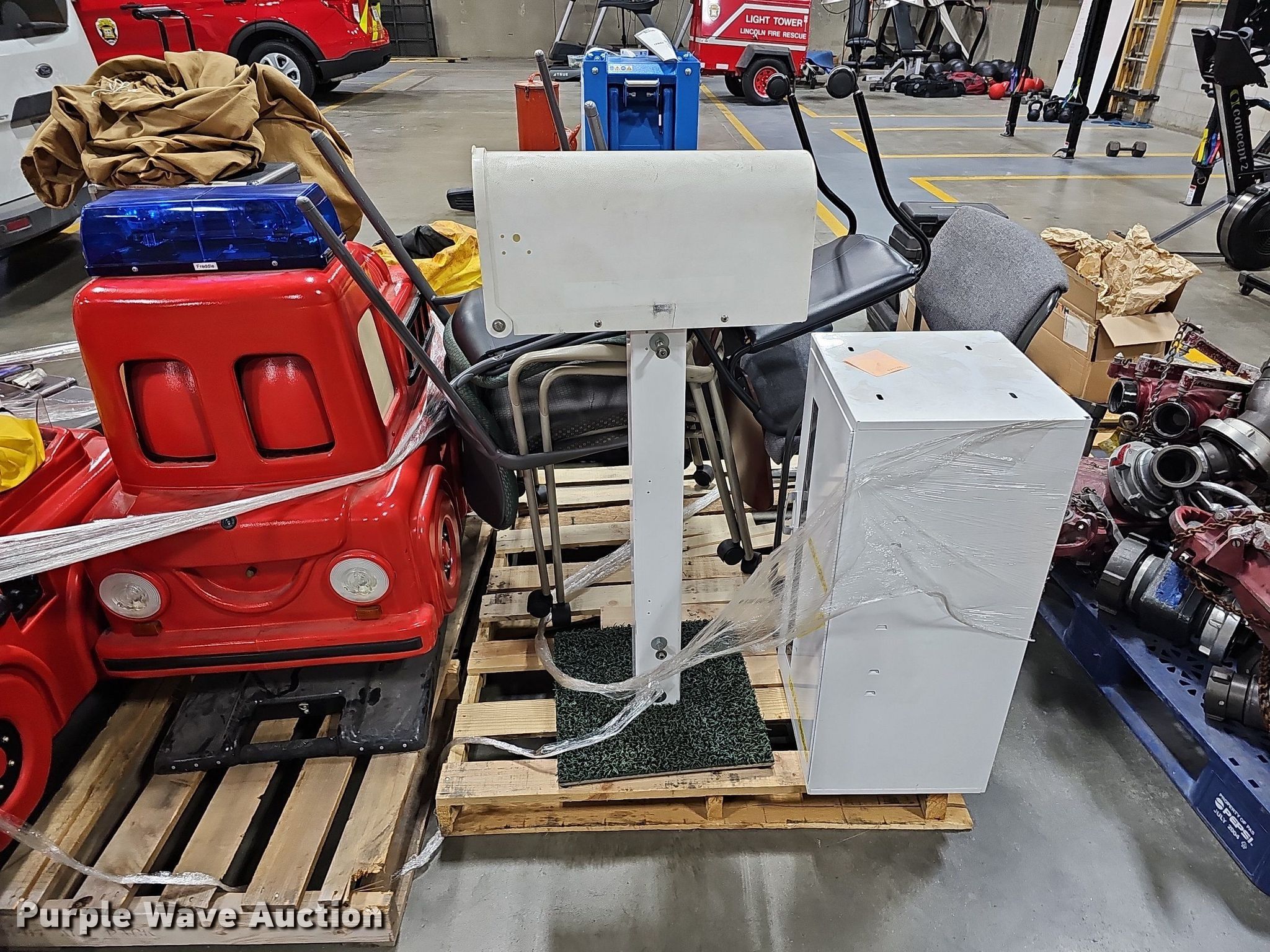 Office supplies and equipment. Sterilite storage tote 22"W x 15.25"D x 25.5"H, Pluggie Robotronics Remote control, Case, Patches and Pumper Robotronics Remote control, Case, Freddie Robotronics Remote control, Case, (5) chairs, Mailbox, Metal cabinet, 16" diameter tube, 20" diameter tube. City of Lincoln Fire & Rescue. 901 West Bond Street. Lincoln, NE 68521