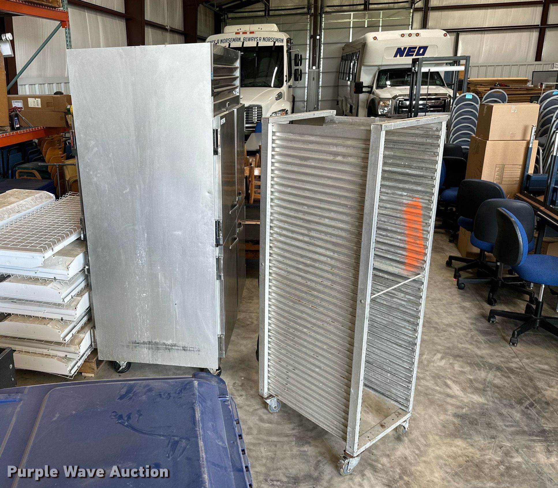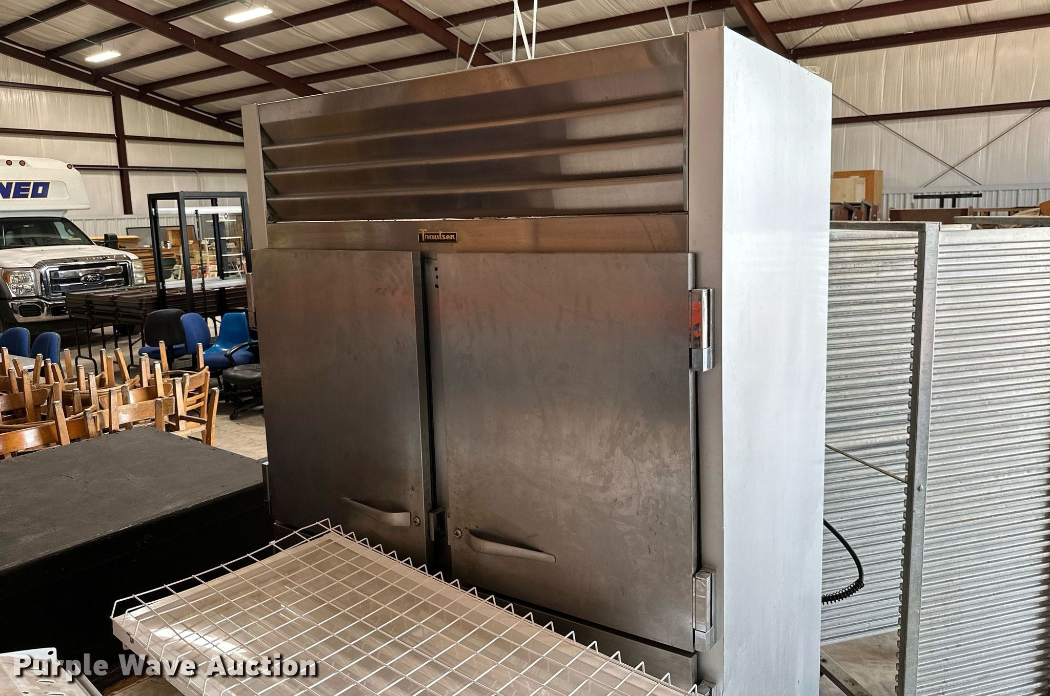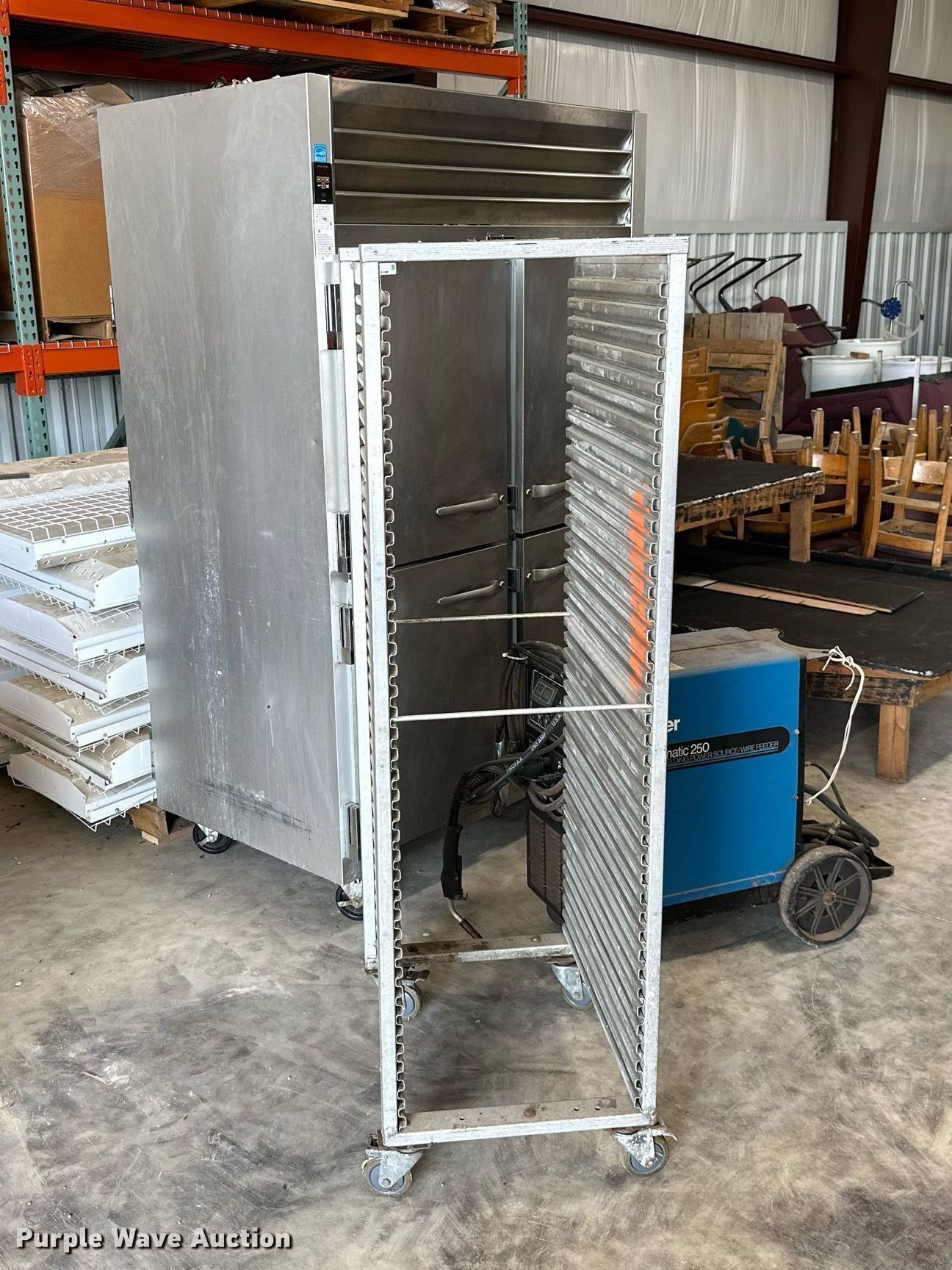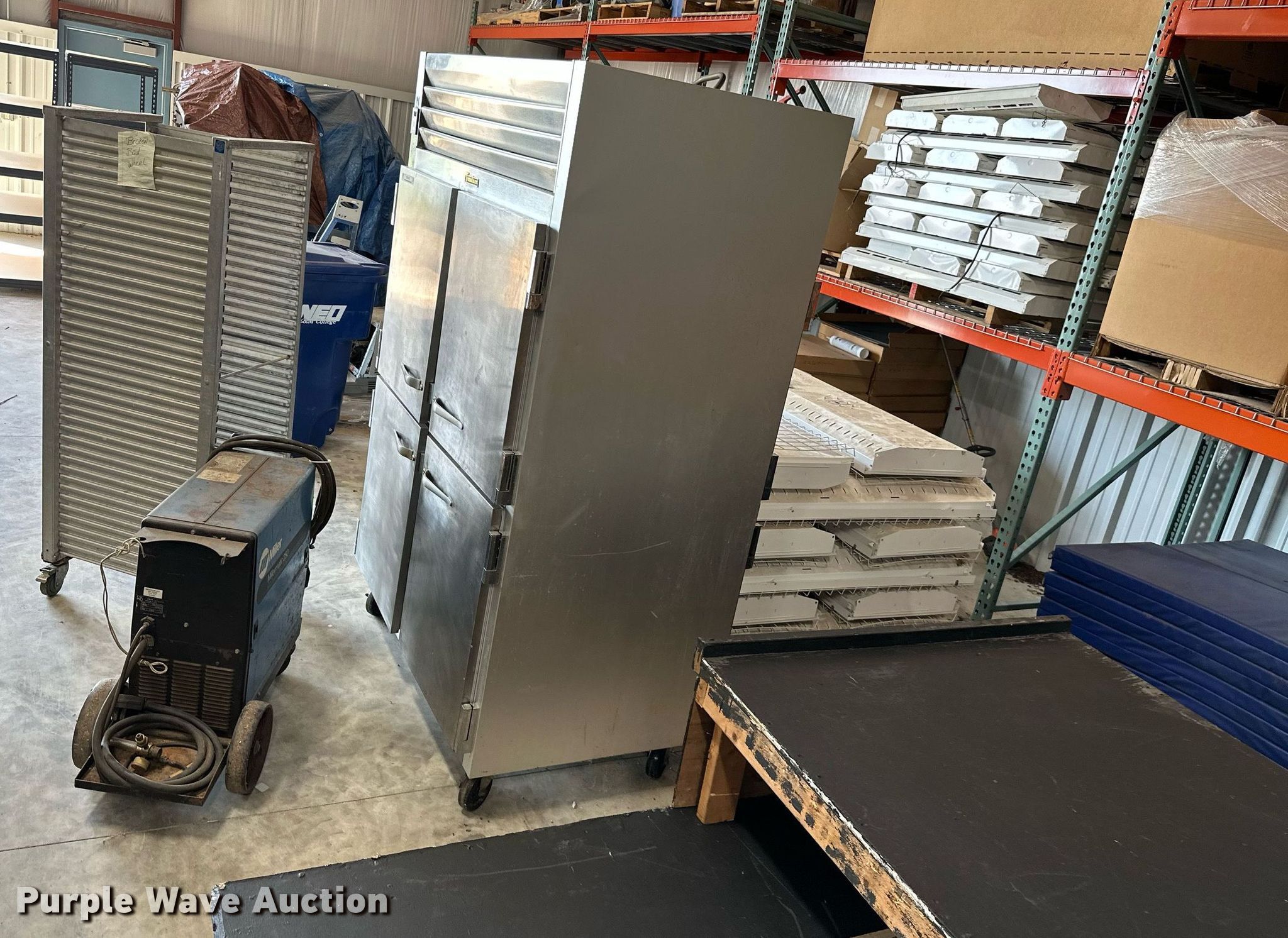 Purple Wave is selling a used Tools in Oklahoma. This item is a Tools with the following: Millermatic 250 CV/DC wire welder, Non-operational unit, parts only, Traulsen food warmer, Approx. 14 lights, Food rack