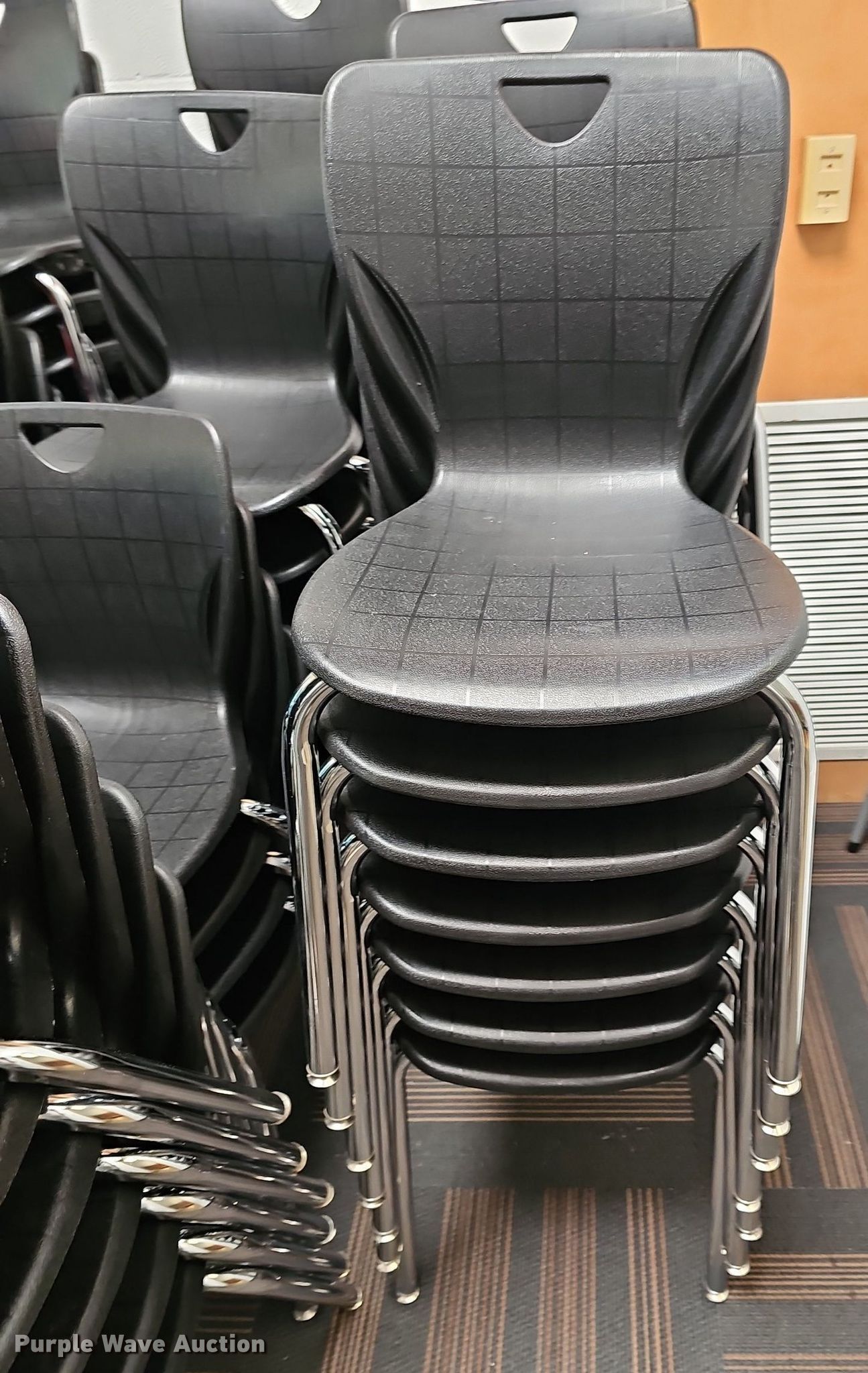 Purple Wave is selling a used Furniture in Kansas. This item is a Approximately 65 chairs with the following: Approximately 65 chairs. Lawrence, KS 66044