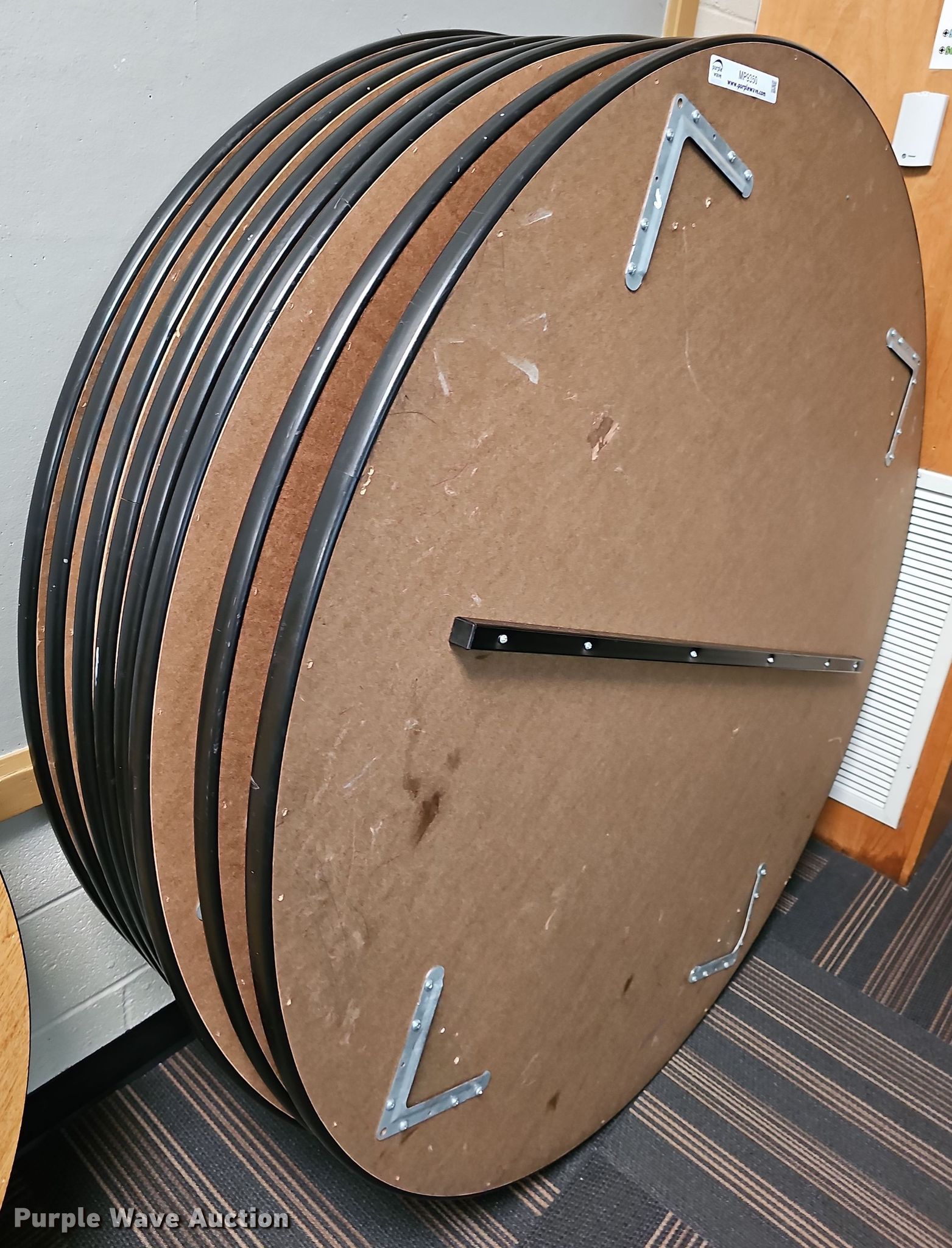 Purple Wave is selling a used Furniture in Kansas. This item is a (8) round tables with the following: 5' Diameter, Legs included