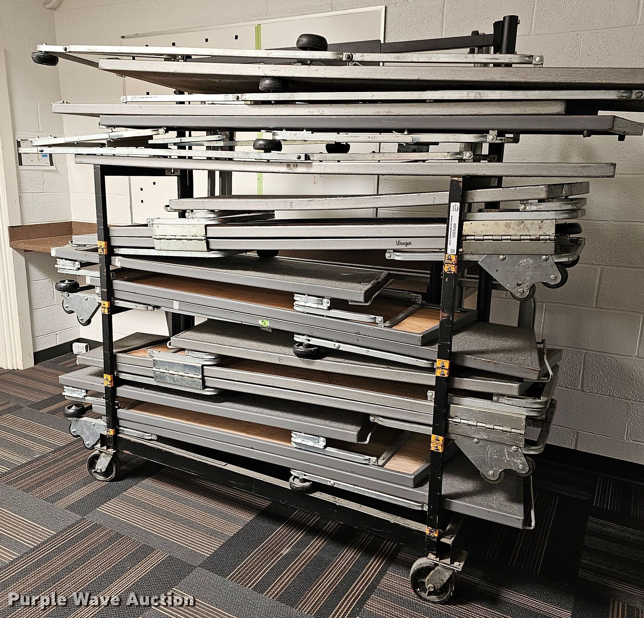 Purple Wave is selling a used Furniture in Kansas. This item is a Stage risers with cart with the following: (8) risers, 7' x 18"