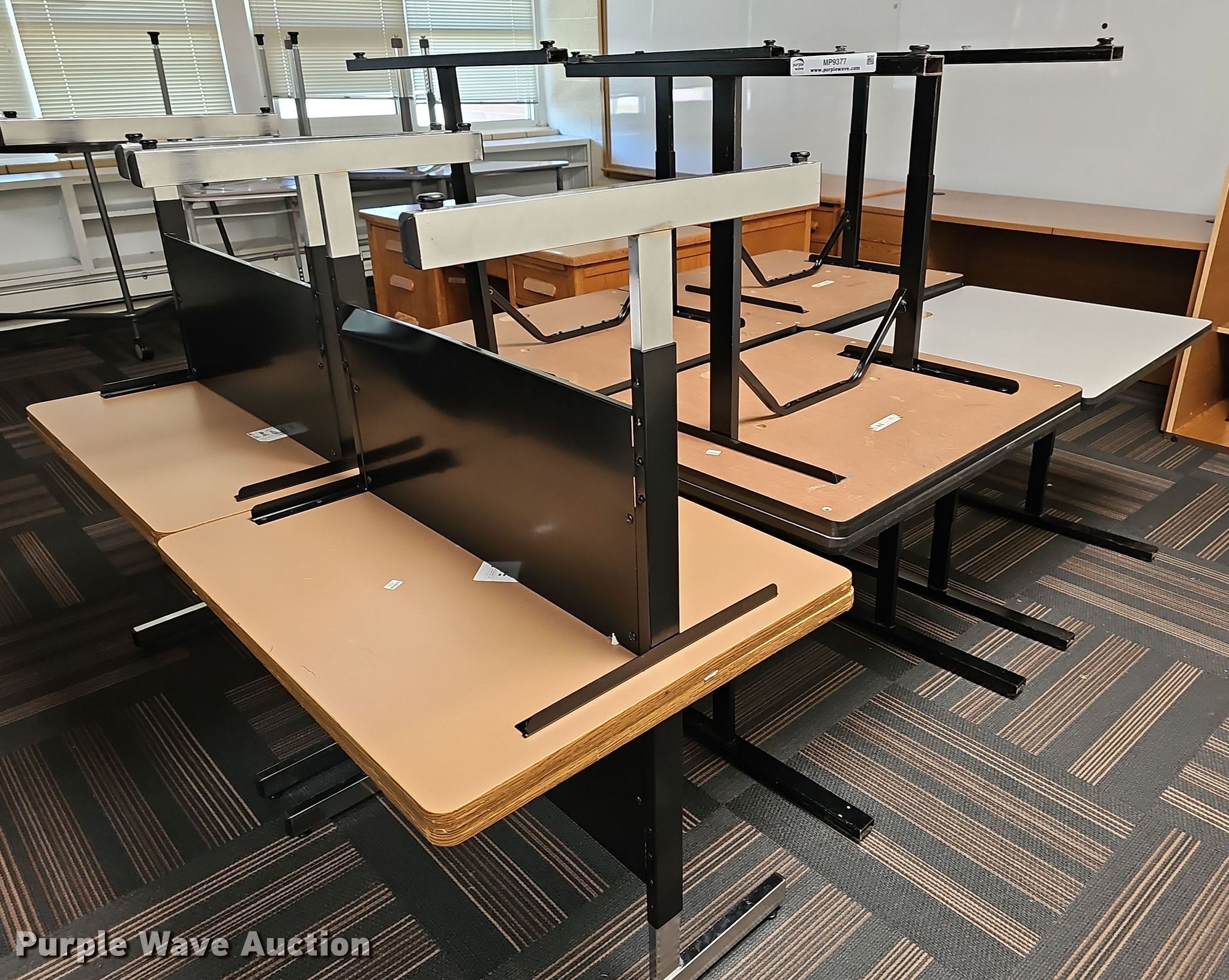 Purple Wave is selling a used Furniture in Kansas. This item is a (11) tables with the following: 3' x 30"