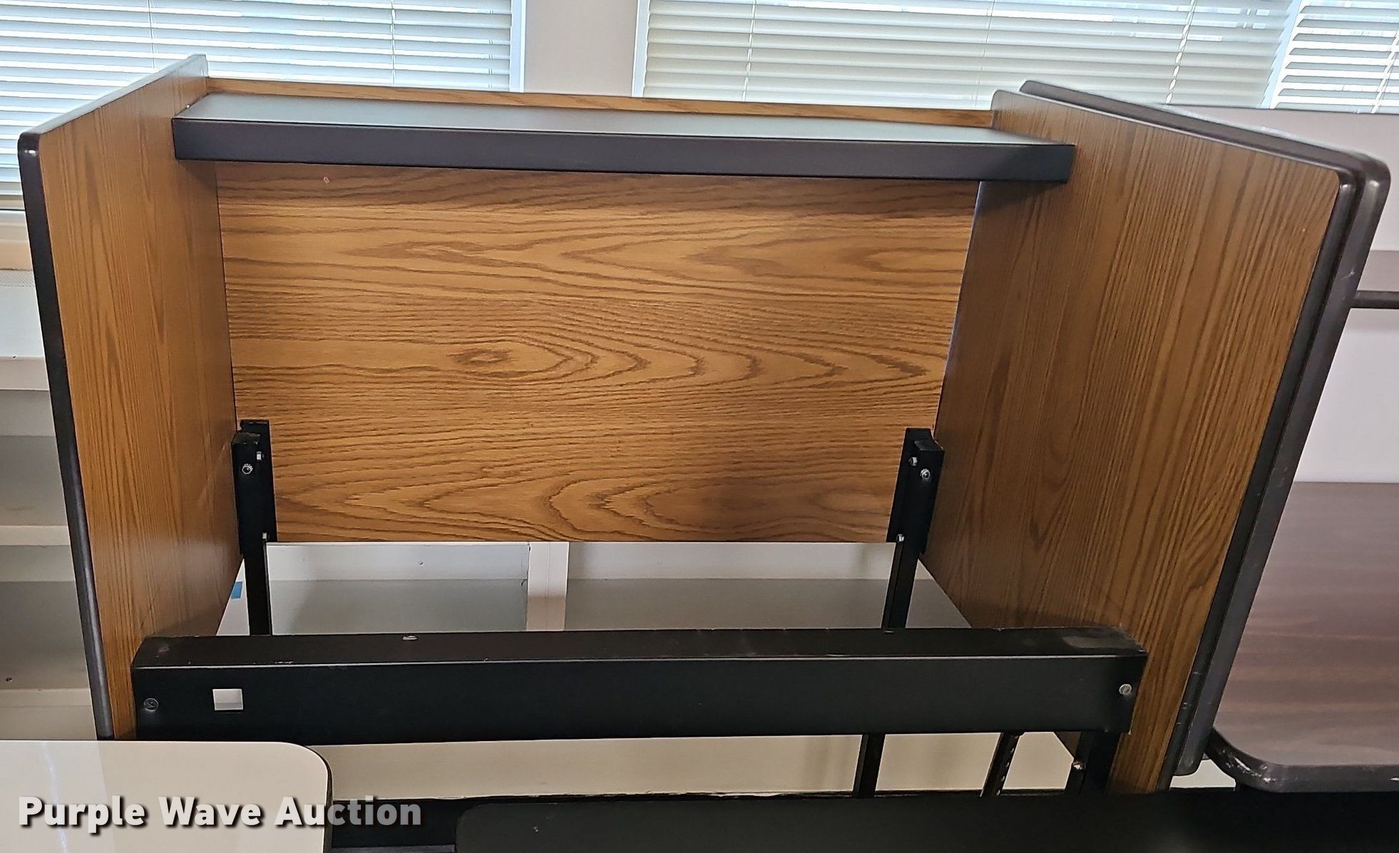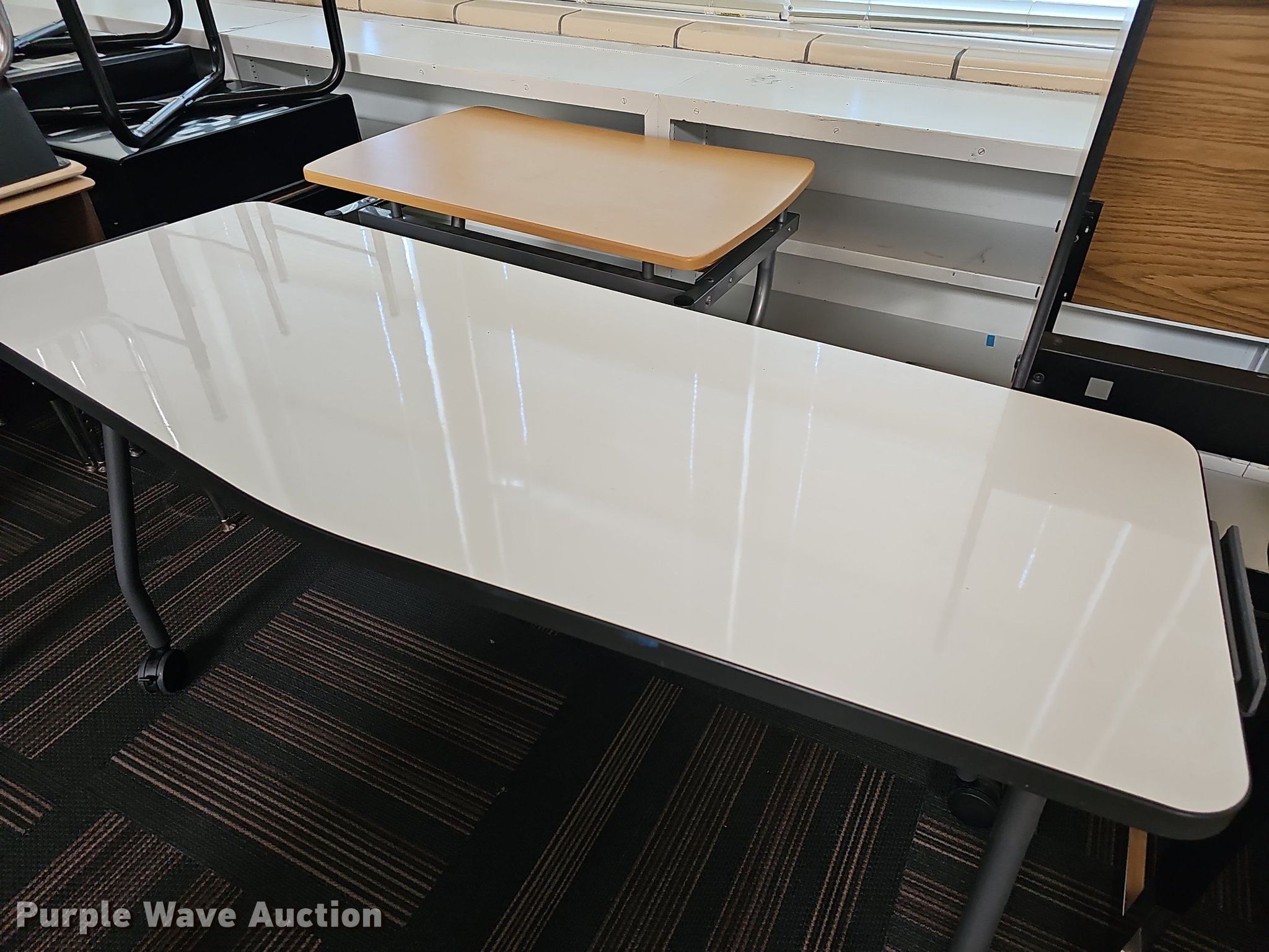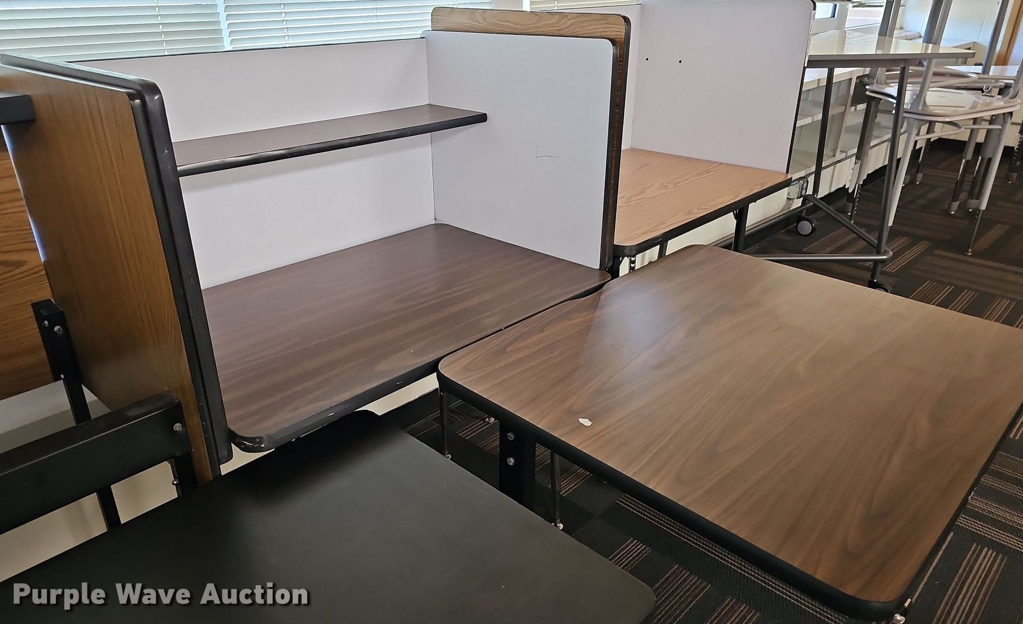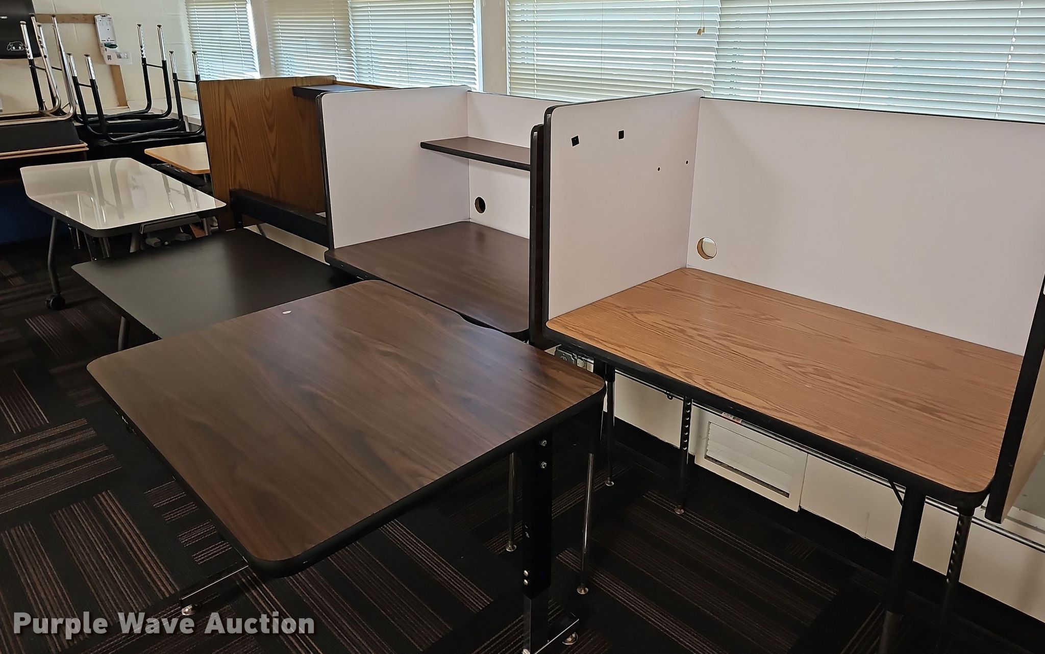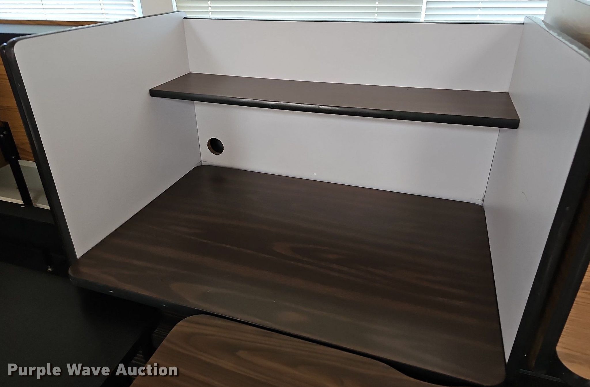 Purple Wave is selling a used Furniture in Kansas. This item is a (7) study carols and tables with the following: (7) study carols and tables. Lawrence, KS 66044