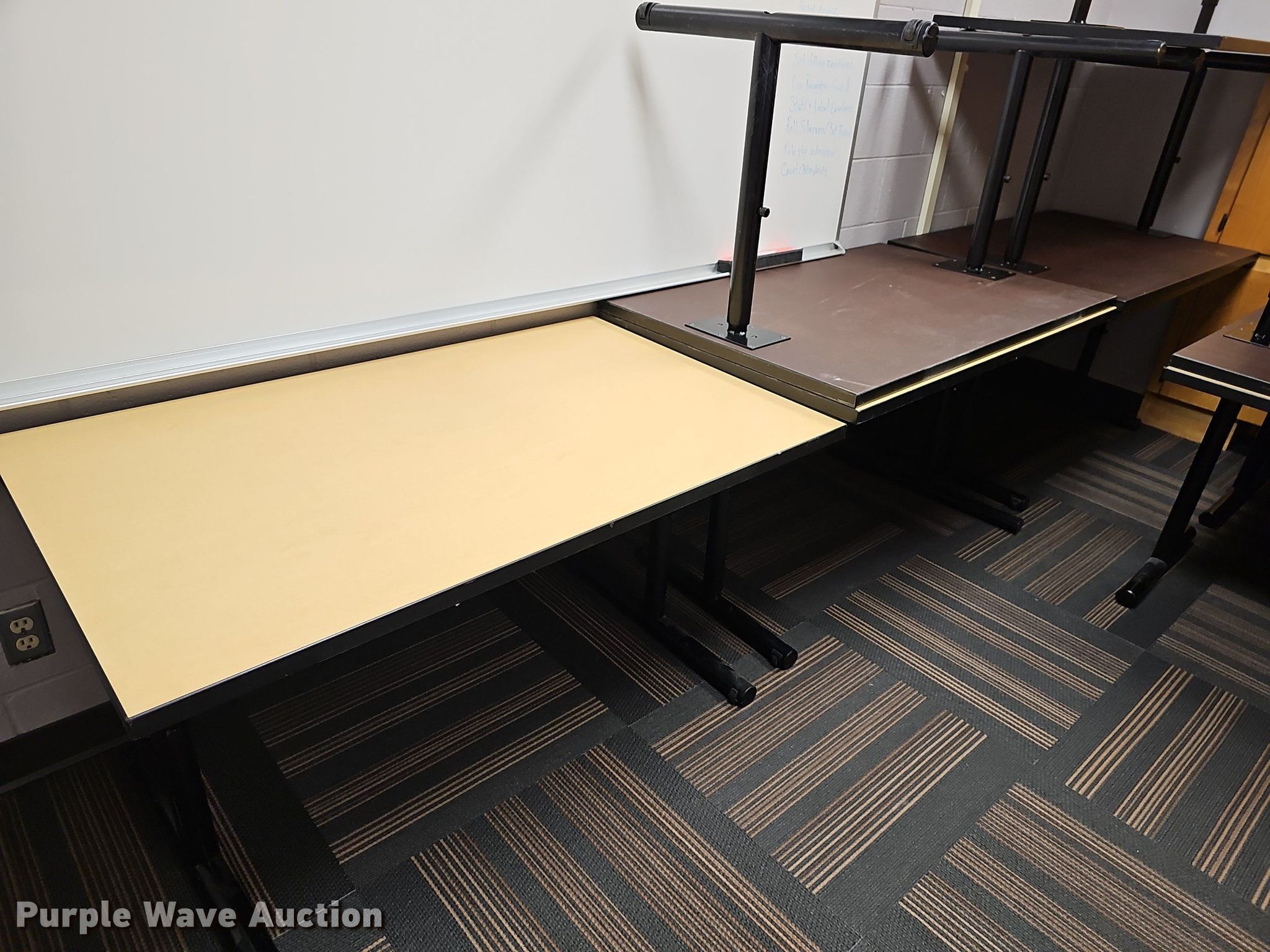 Purple Wave is selling a used Furniture in Kansas. This item is a (12) tables with the following: 4' x 30"
