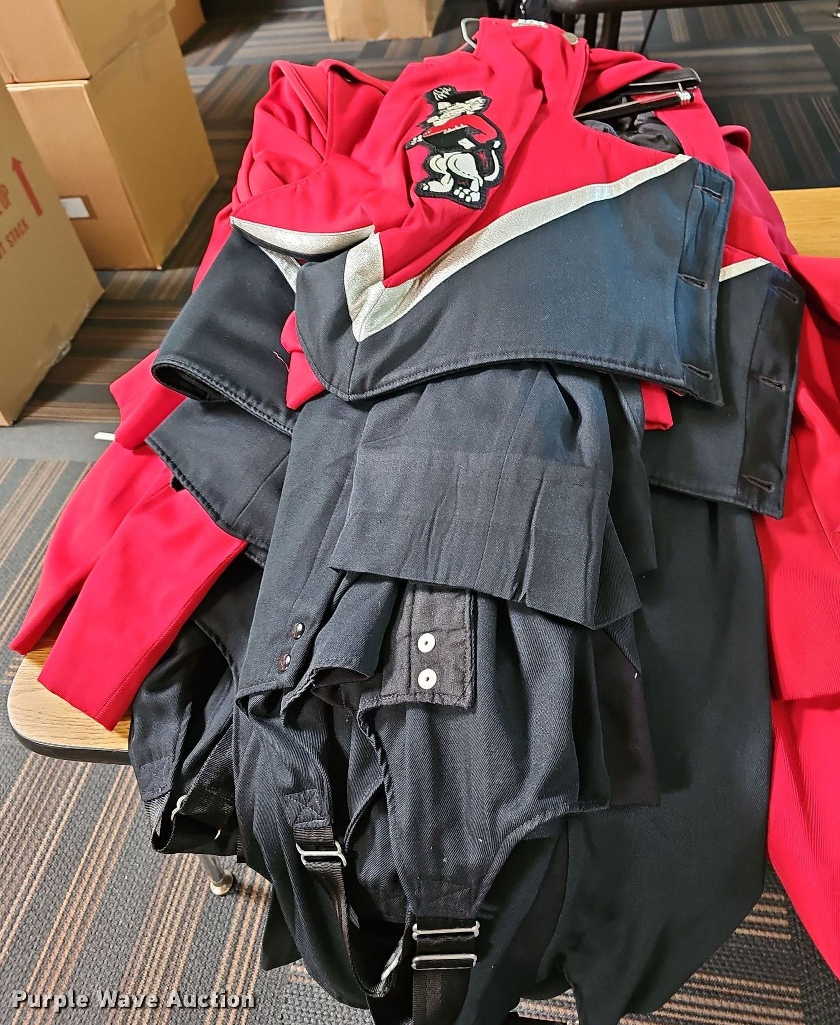 Purple Wave is selling a used Music Equip. in Kansas. This item is a Band uniforms with the following: Assorted sizes, Jackets, Vests, Jump suits