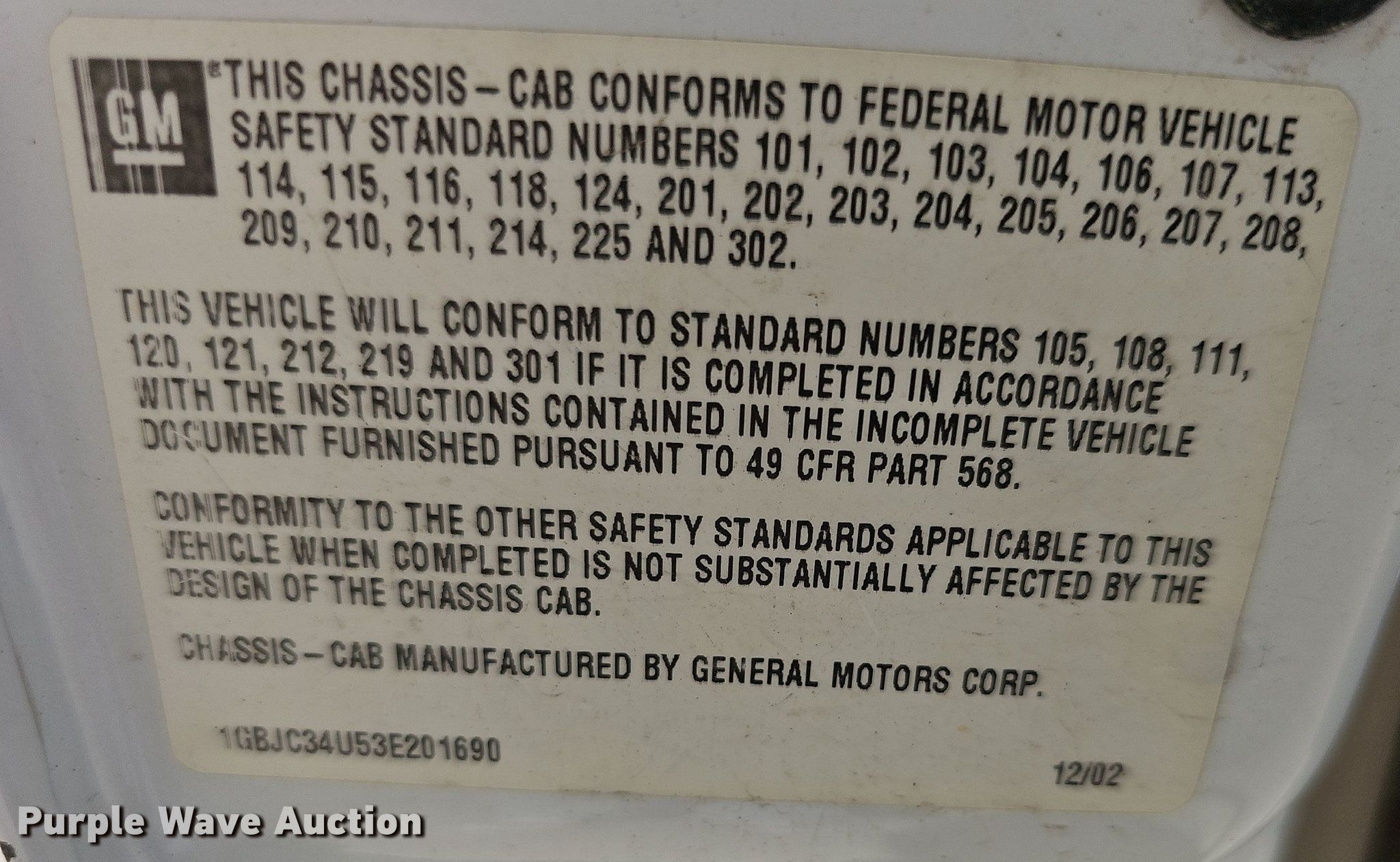 - VIN: 1GBJC34U53E201690