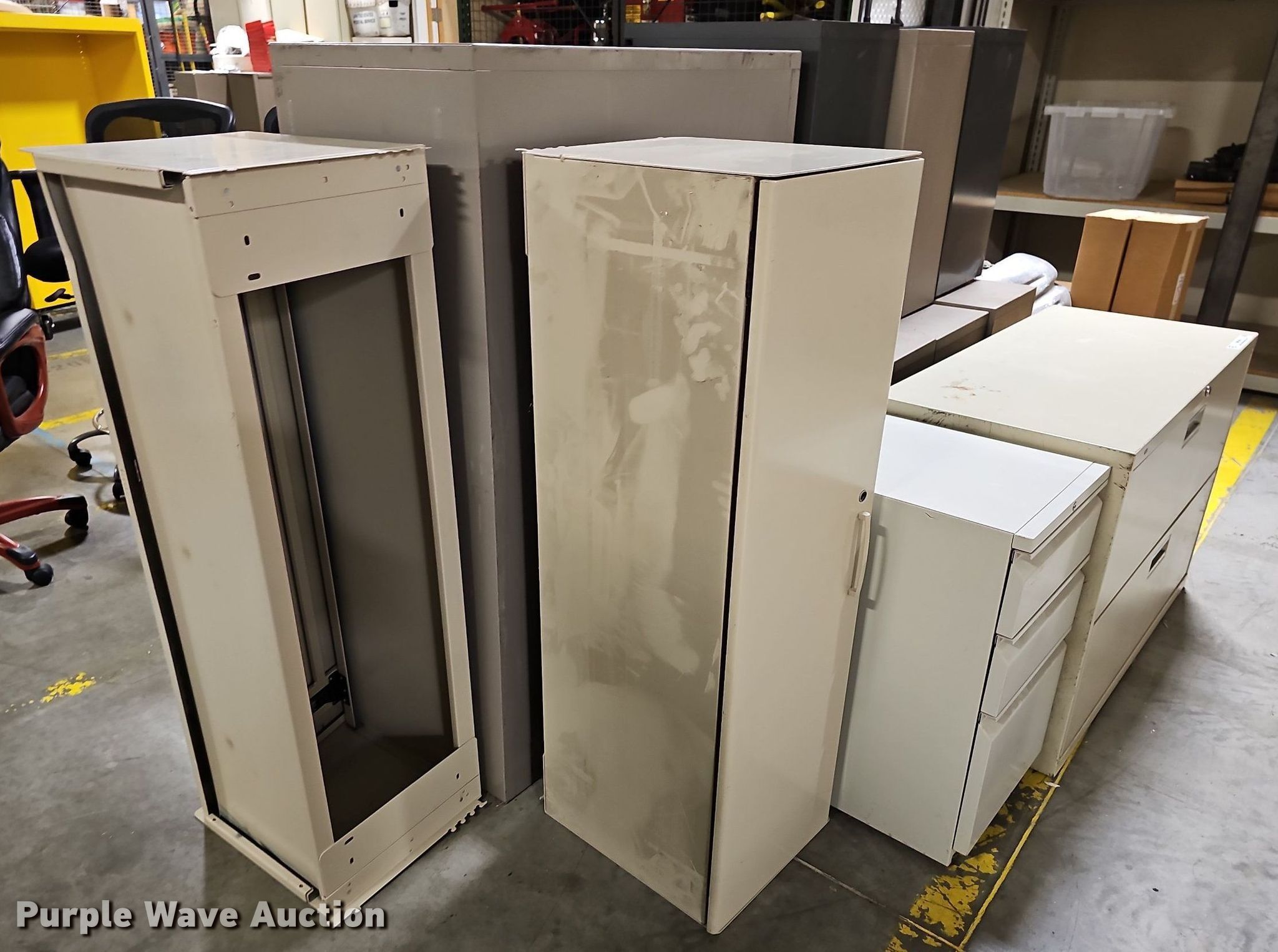 Purple Wave is selling a used Office Supplies and Equip. in Kansas. This item is a (15) cabinets with the following: (2) storage cabinets, (13) file cabinets