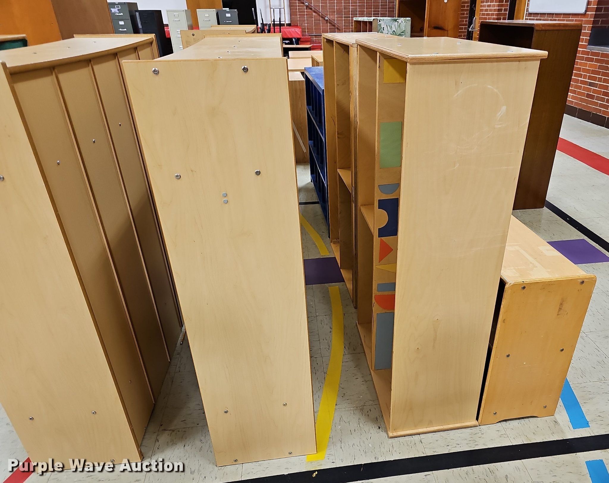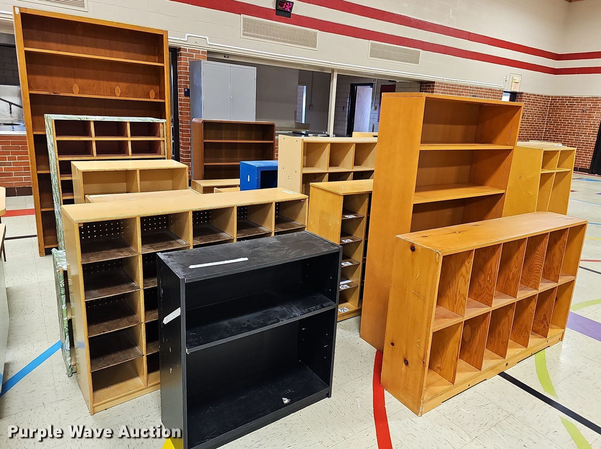 Purple Wave is selling a used Furniture in Kansas. This item is a Furniture with the following: Approx. (21) cubbies, Bookshelves