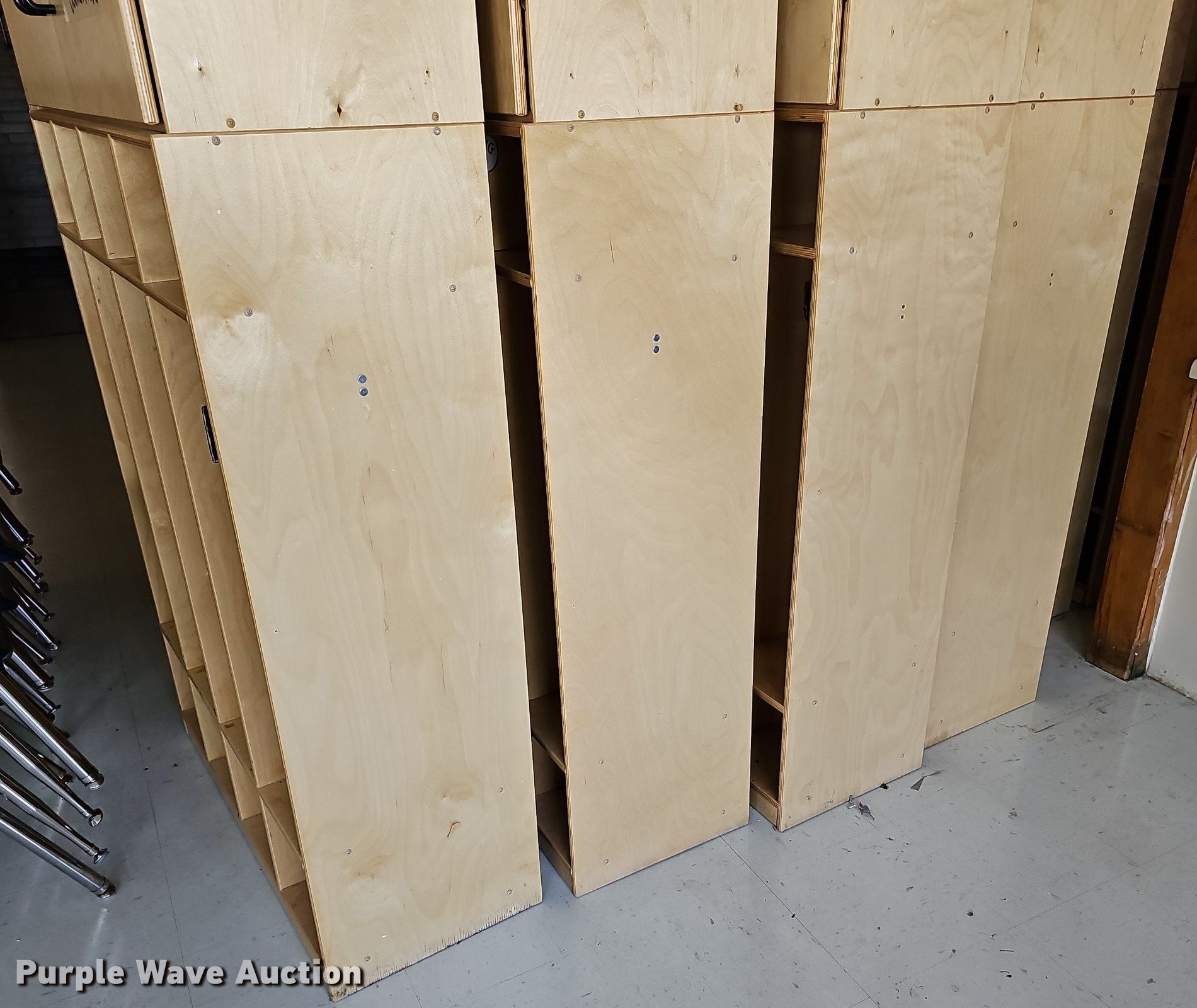 Purple Wave is selling a used Furniture in Kansas. This item is a (24) wood cubbies with the following: 3' x 15" x 75"