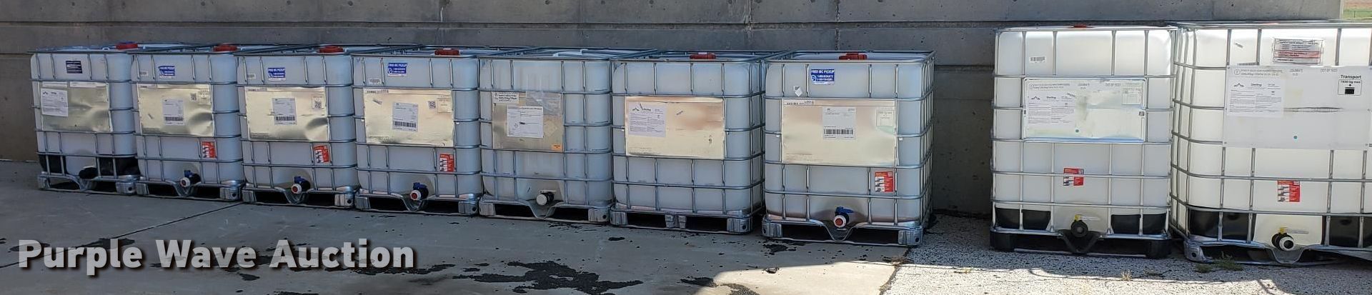 Purple Wave is selling a used Tanks in Kansas. This item is a (15) poly totes with the following: (13) Capacity: 250 gallons, (2) Capacity: 300 gallons, Totes have not been cleaned, possible chemical residue