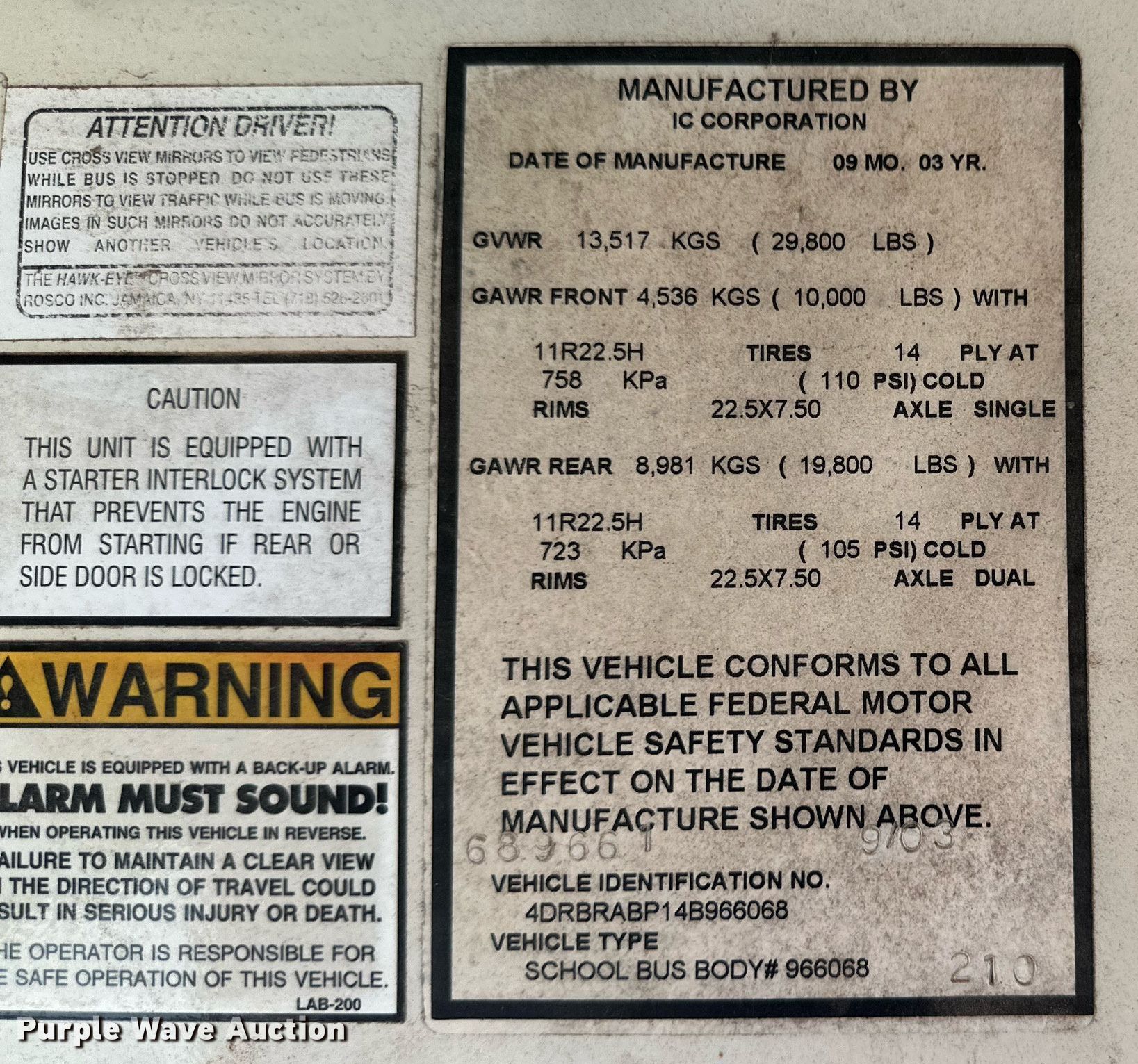 Take a look at this used 2004 International school bus being sold on September 26th, 2023 in the SOLD! September 26 Government Auction made by International. Take a look at all of the item information below or take a look at similar auctions for Transit Vehicles.