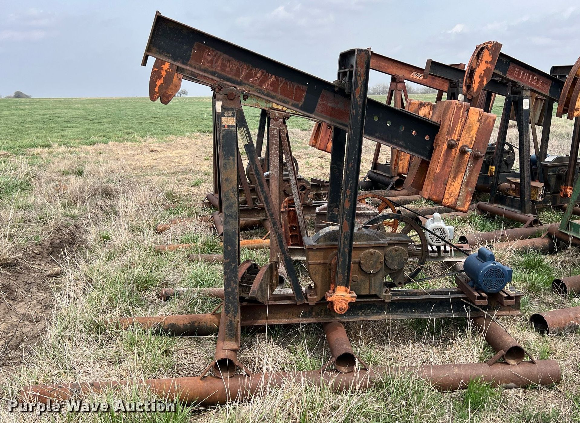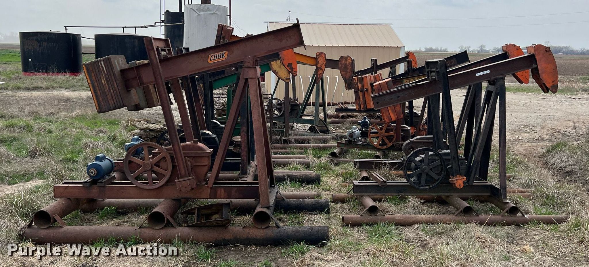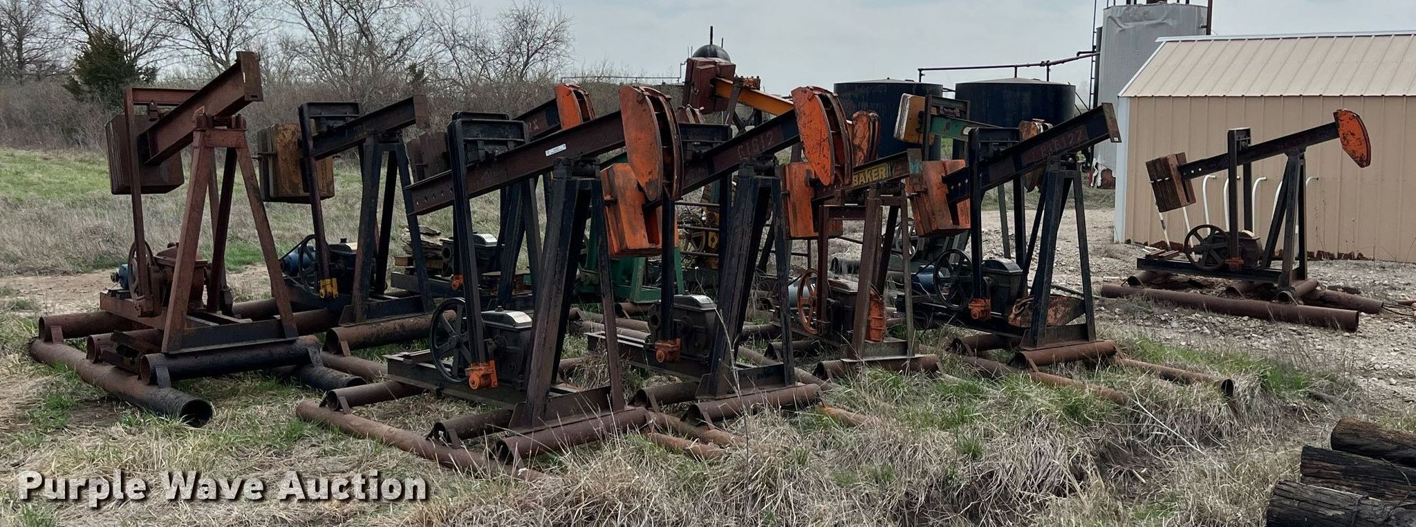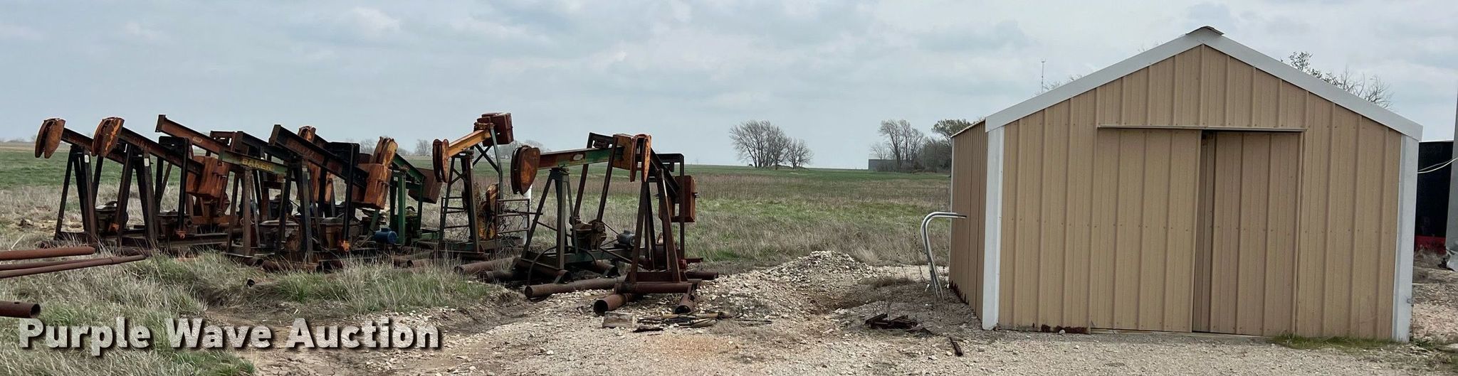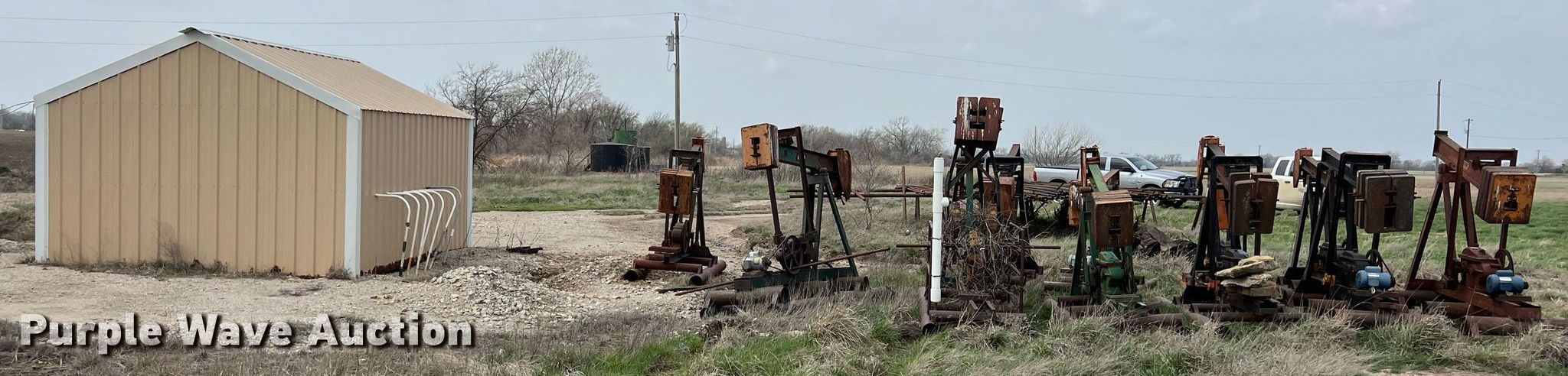 Purple Wave is selling a used Other Industrial or Business in Kansas. This item is a Oilfield equipment with the following: Control #: 2023FP3-02 - Mike Olson, (11) pump jacks, (3) Cook, (2) with electric motors, Baker, Electric motor, Jensen, No engine or motor, (6) Churchill, (2) with electric motors, (7) railroad ties, (2) posts, Pump house, 18' x 12', Pump, Electric motor, 1" plumbing, Hoses, Unknown operating condition